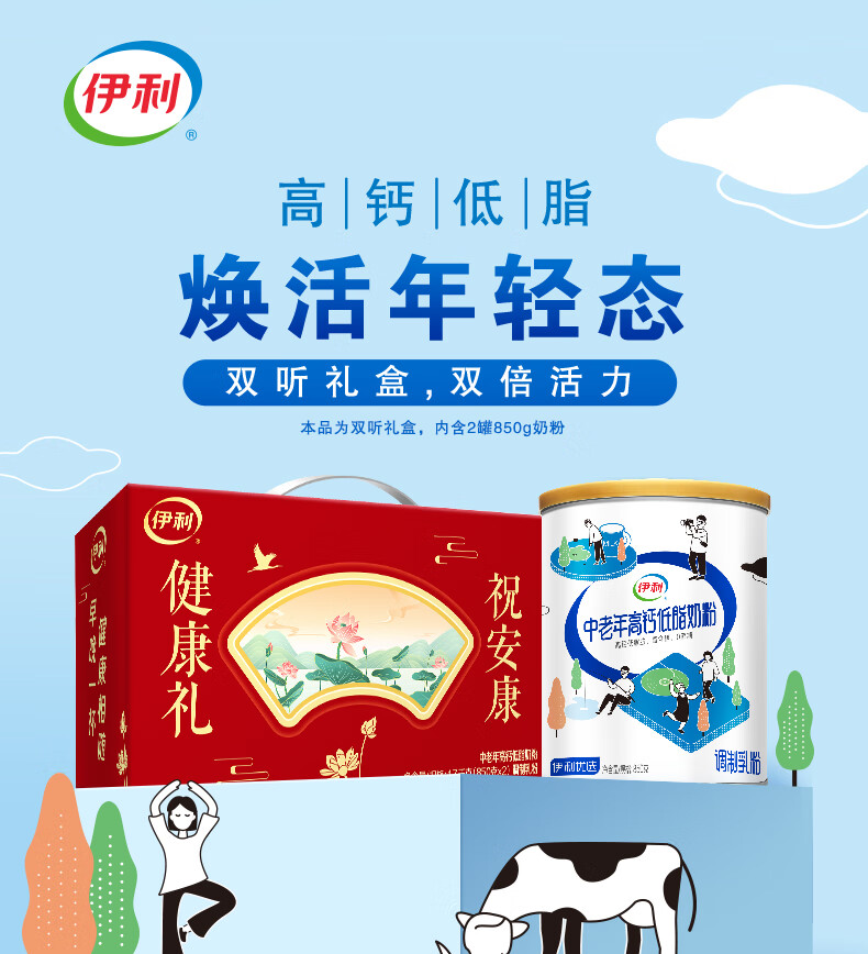 伊利中老年高钙低脂奶粉 富含硒 0蔗糖添加 减少脂肪88.5% 年货节礼盒 【高钙富硒】送礼优选-1700g礼盒