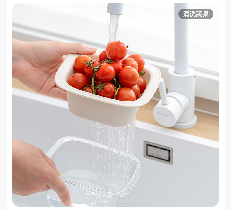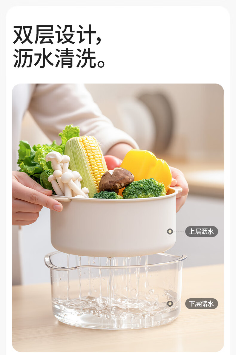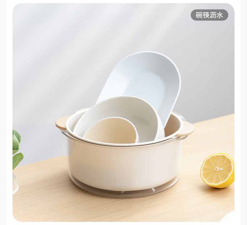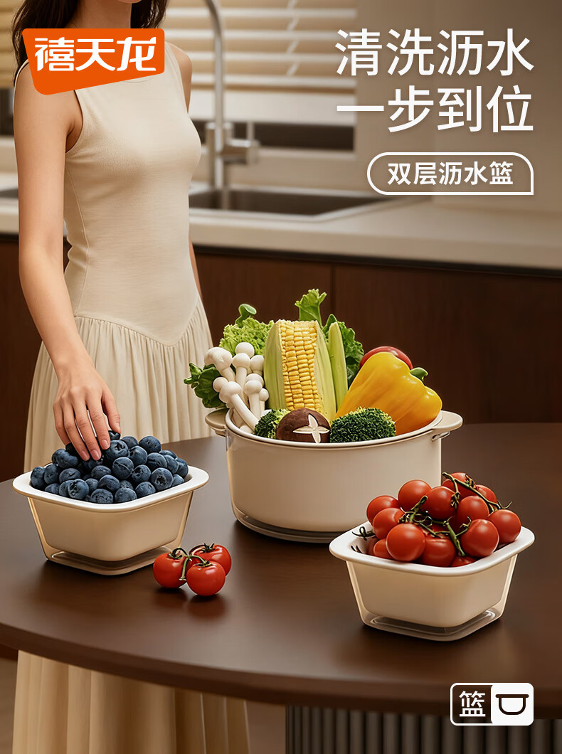 禧天龙双层洗菜盆沥水篮厨房家用塑料水果盘滤水淘菜洗菜篮子 圆形双层 (加大款) 1个