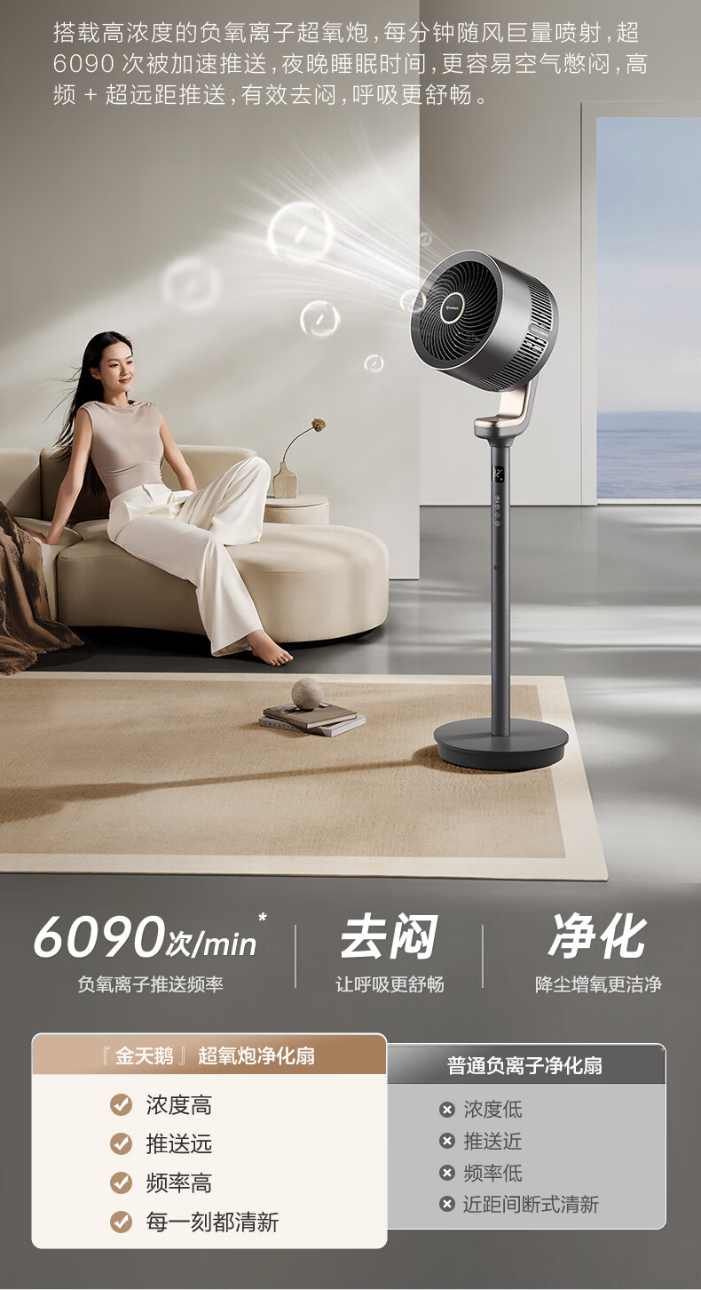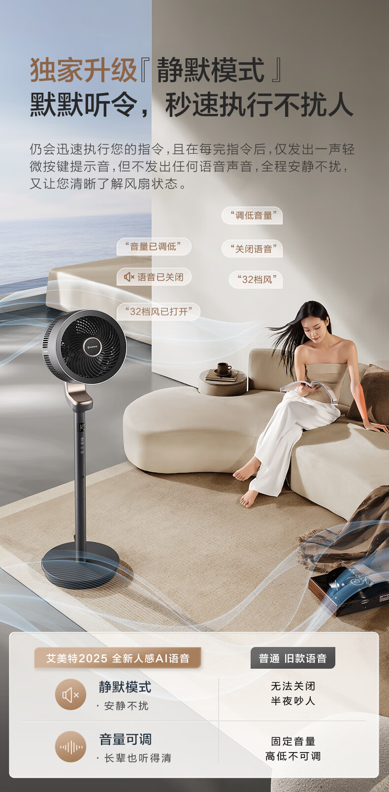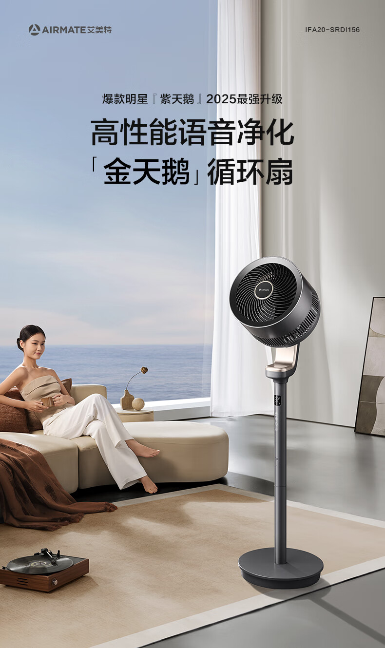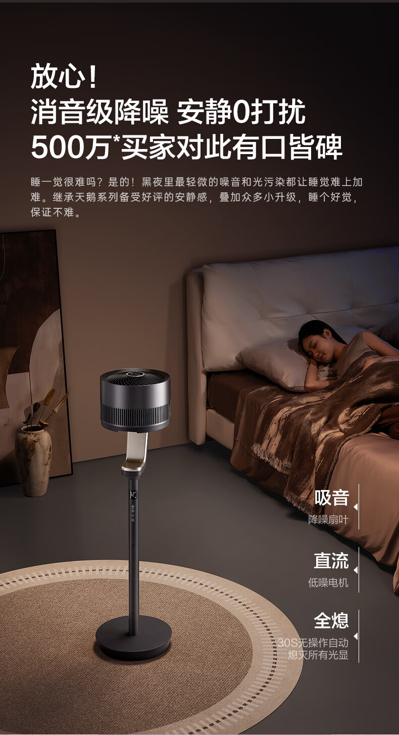 艾美特(AIRMATE)空气循环扇智能语音电风扇新款天鹅落地扇家用轻音节能负离子32档直流变频预约定时风扇一级能效 黑天鹅 | 升级语音【轻音节能+32档直流】负离子