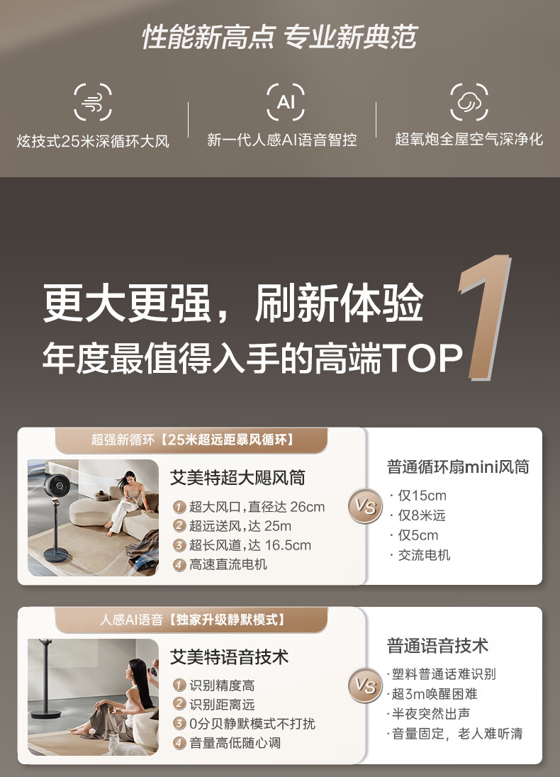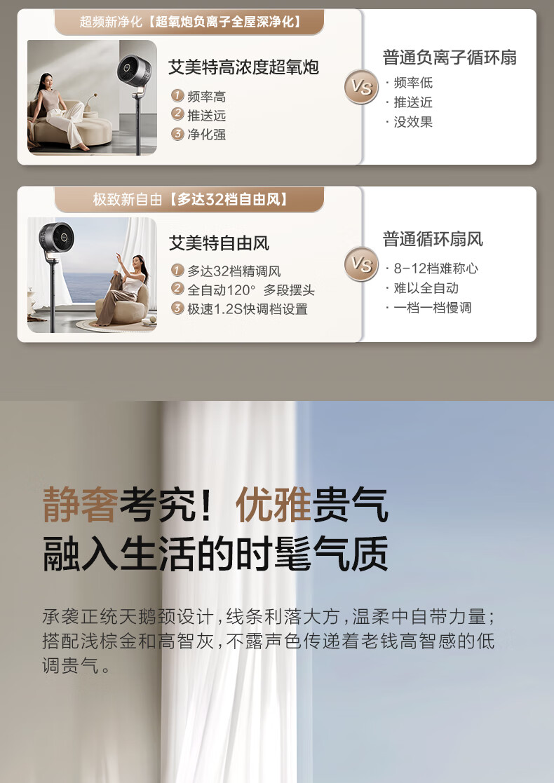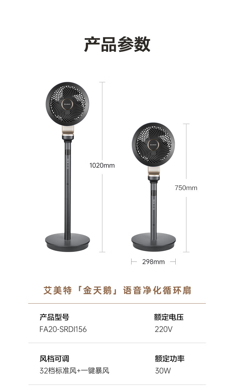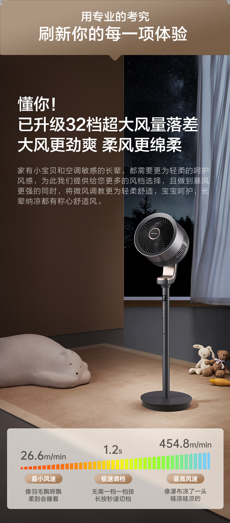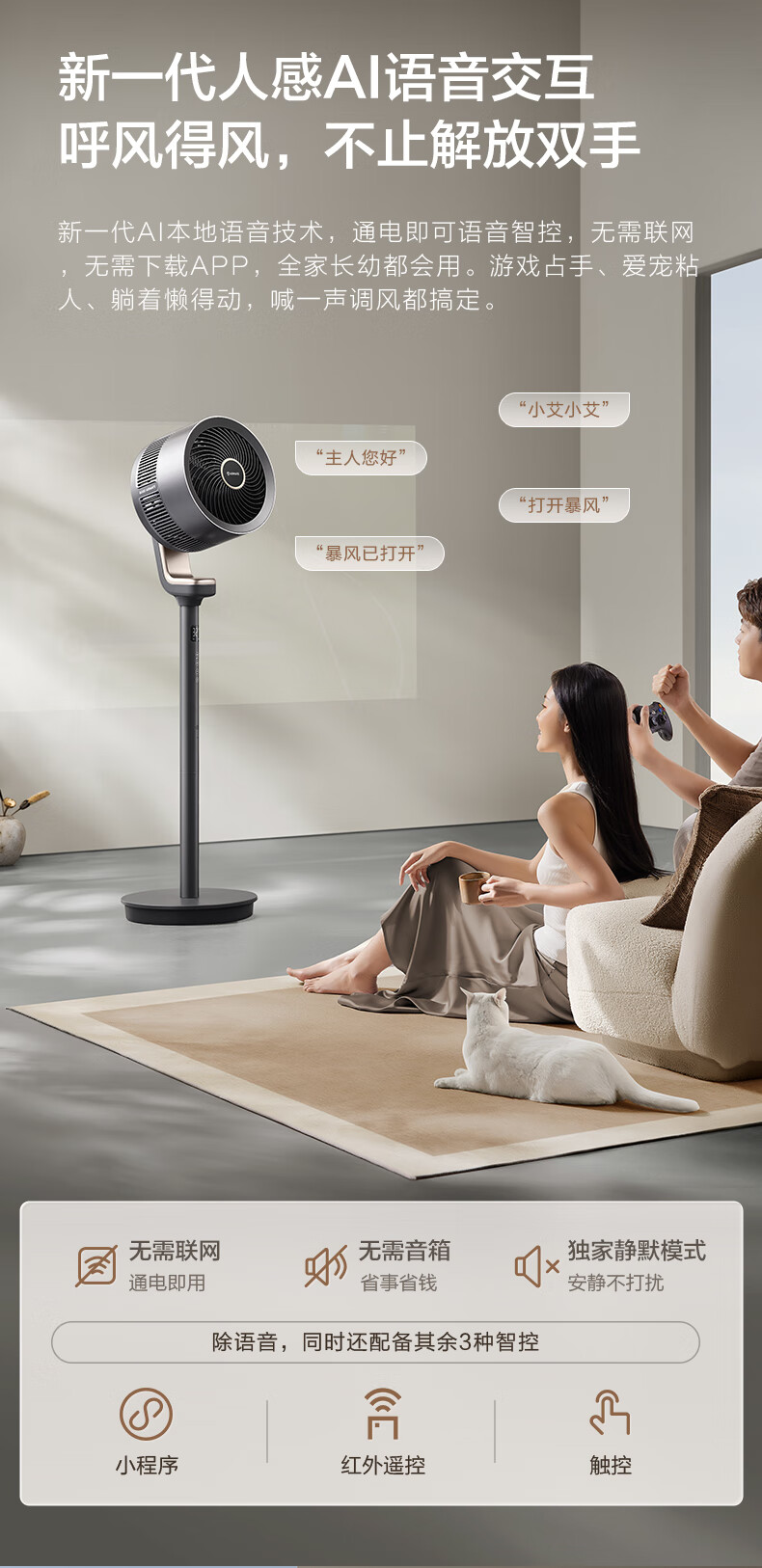 艾美特(AIRMATE)空气循环扇智能语音电风扇新款天鹅落地扇家用轻音节能负离子32档直流变频预约定时风扇一级能效 黑天鹅 | 升级语音【轻音节能+32档直流】负离子