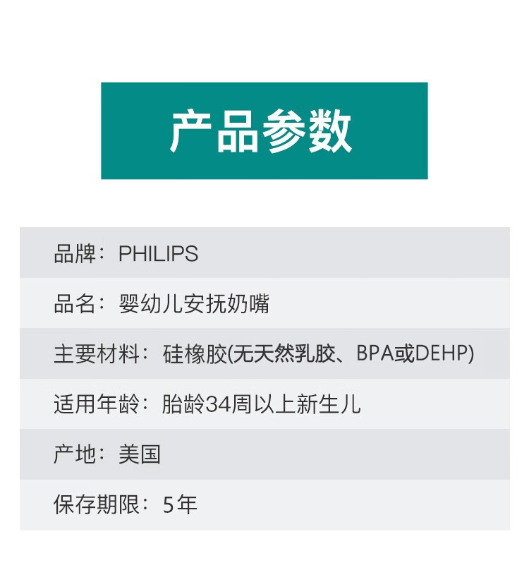 飞利浦(PHILIPS)明星同款天然硅胶安抚奶嘴 0-6个月 防龅牙 口欲期 儿童必备 3号天然缺口 盒装 0-6个月 1只装