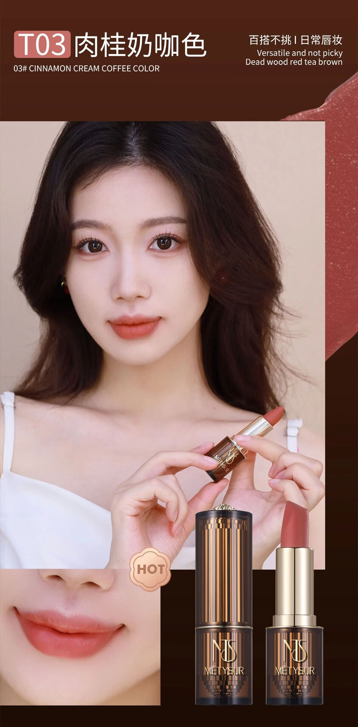 美媞秀(Metysur)雾面哑光口红唇釉持久不掉色不沾杯保湿滋润 T03#肉桂奶咖色