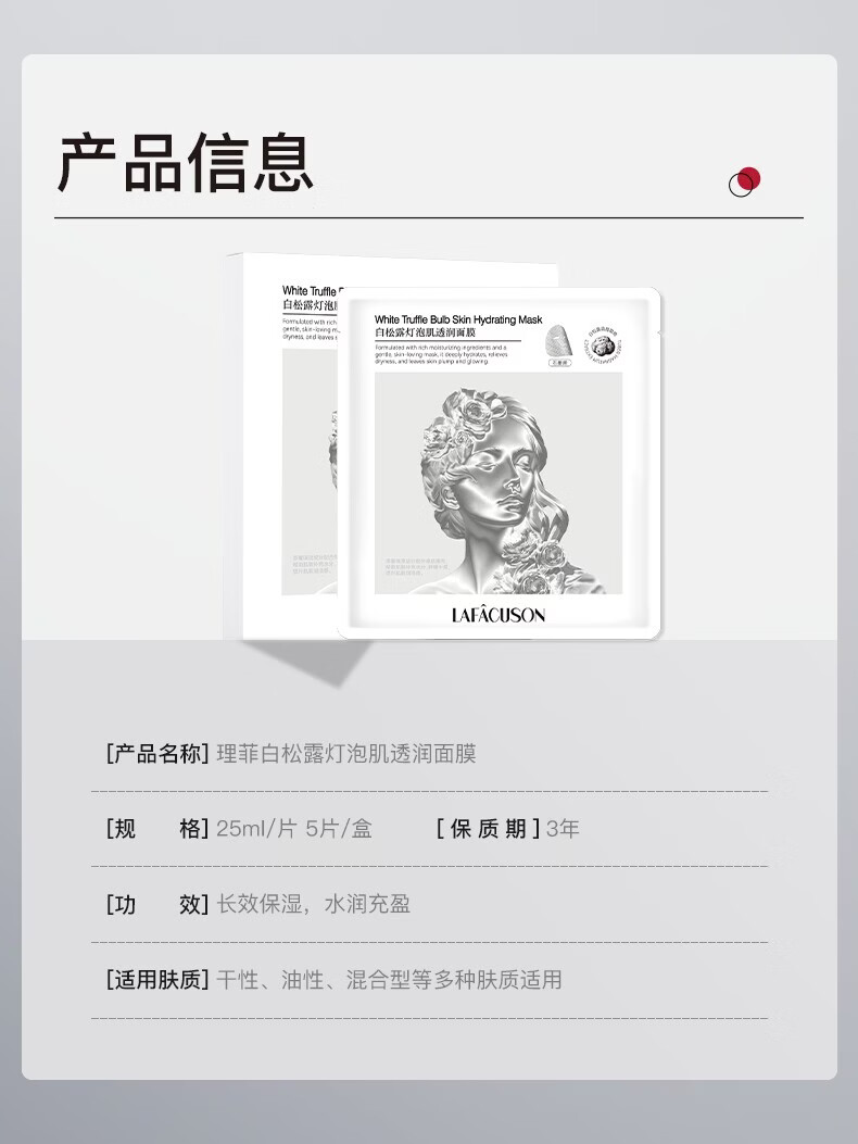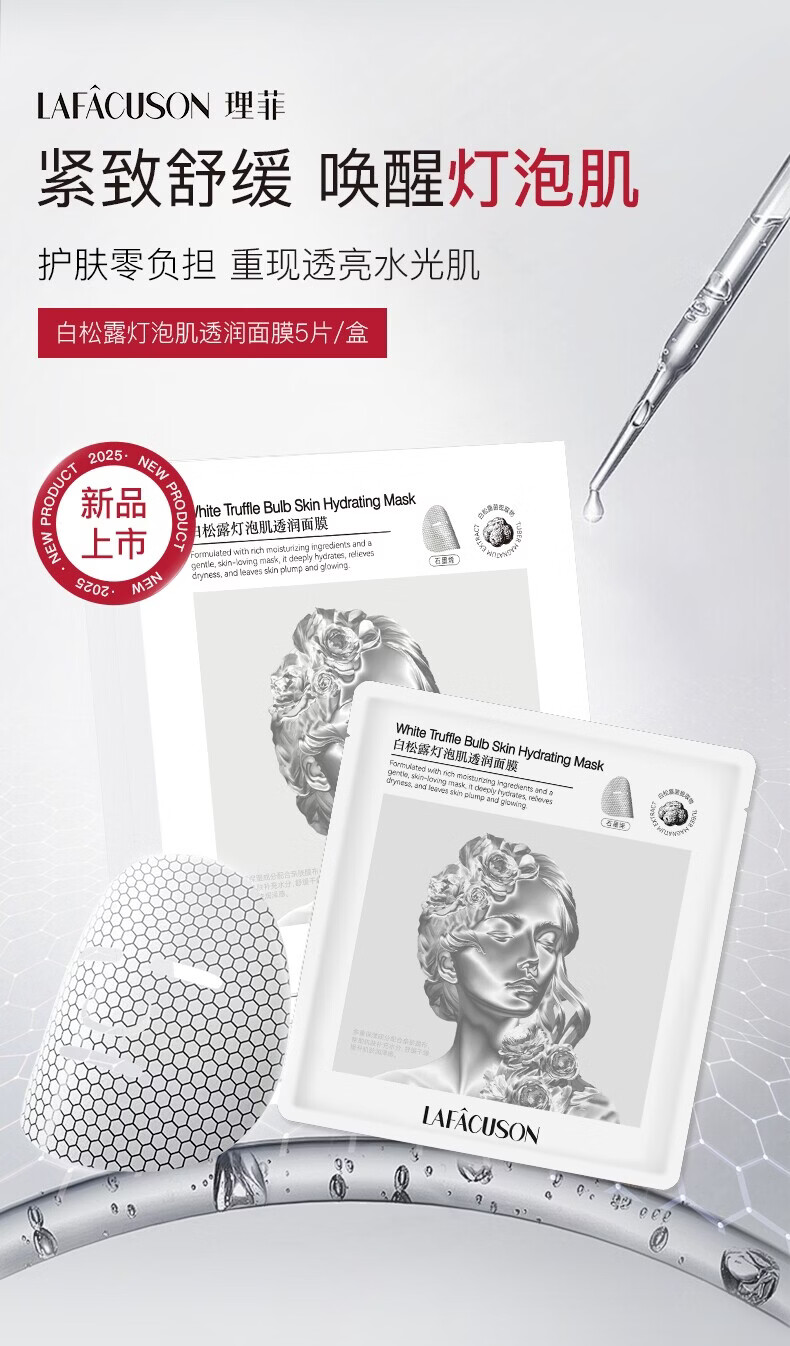 理菲【明星同款】理菲白松露灯泡肌透润面膜多重焕亮长效紧致舒缓面膜 2盒装 5片/盒