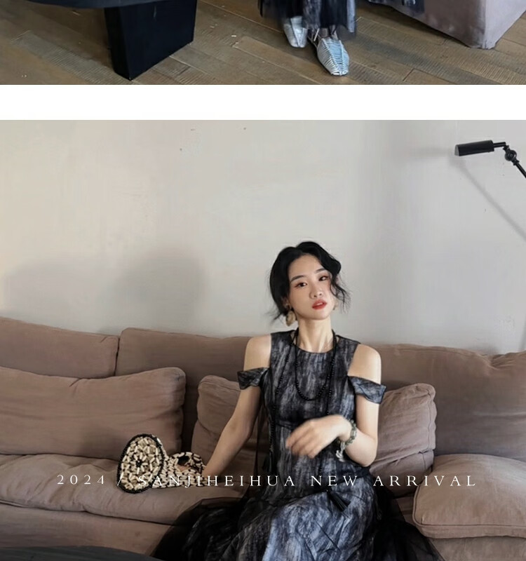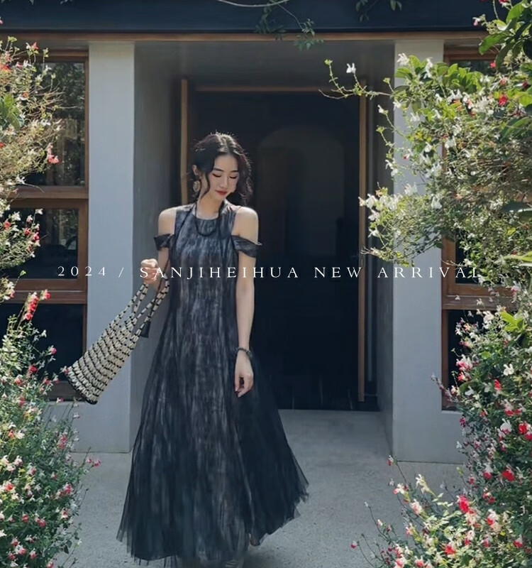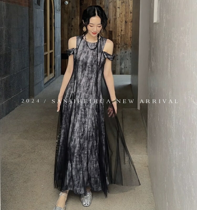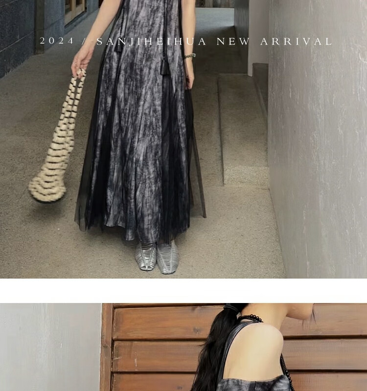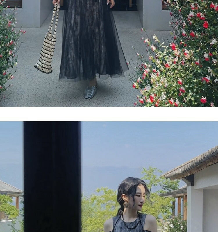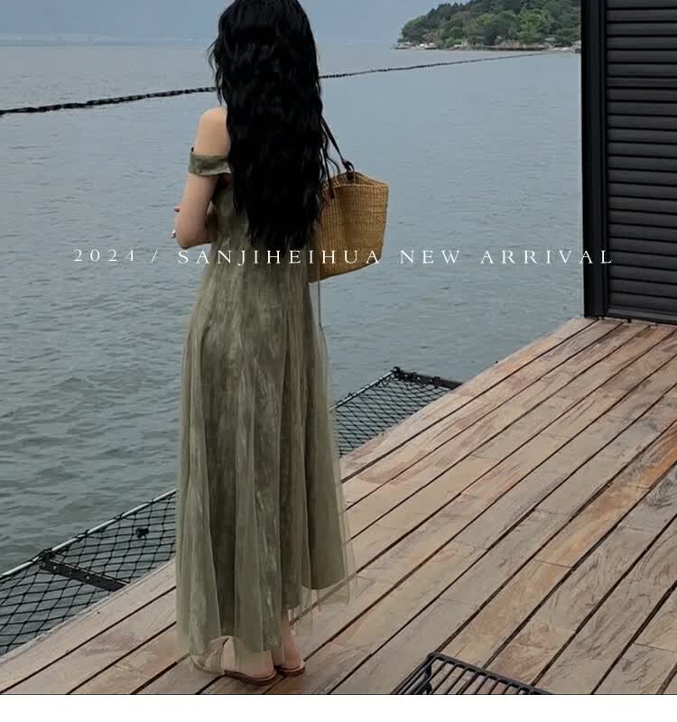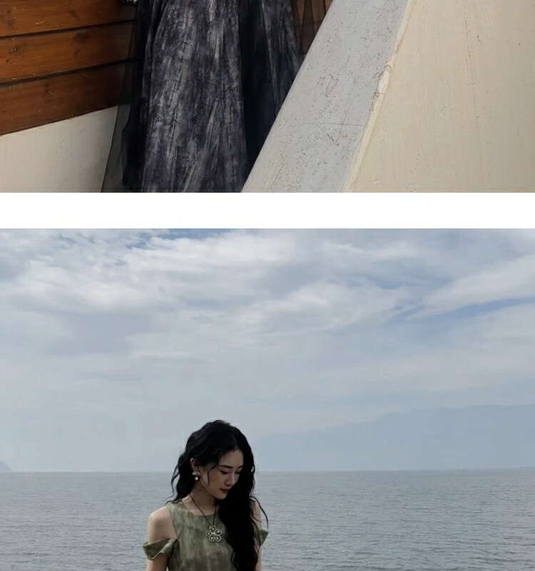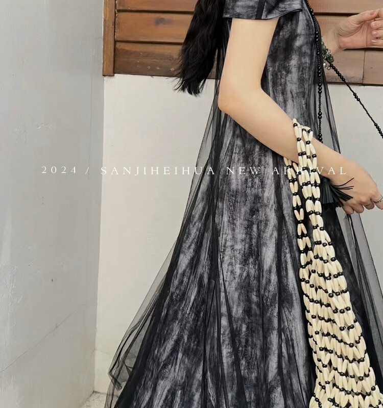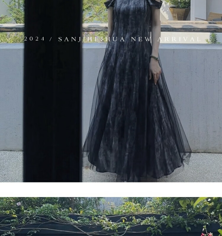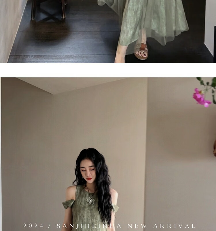 三吉黑花鹦鹉梨严选【烟雨客】夏季新款女设计款简约拼纱裙气质高级感小 豆绿 现货 M