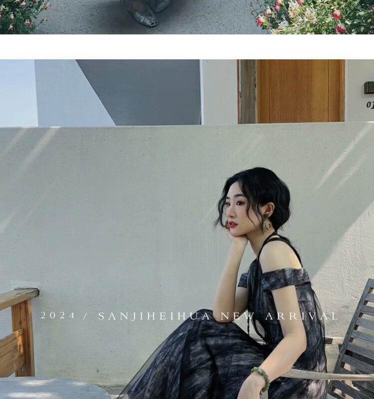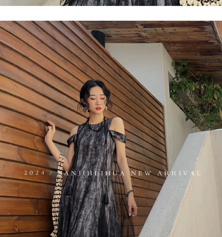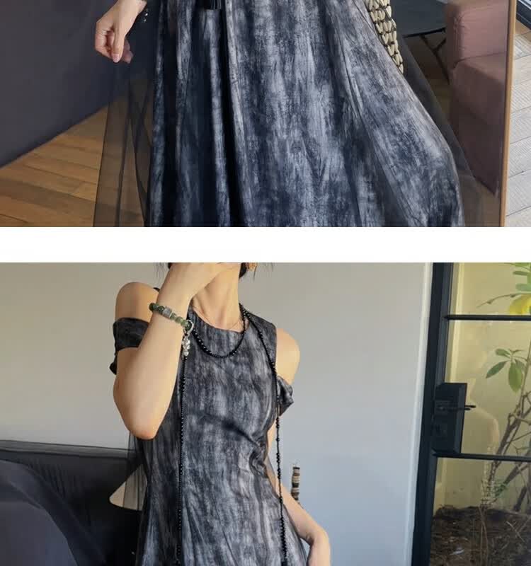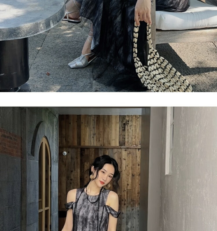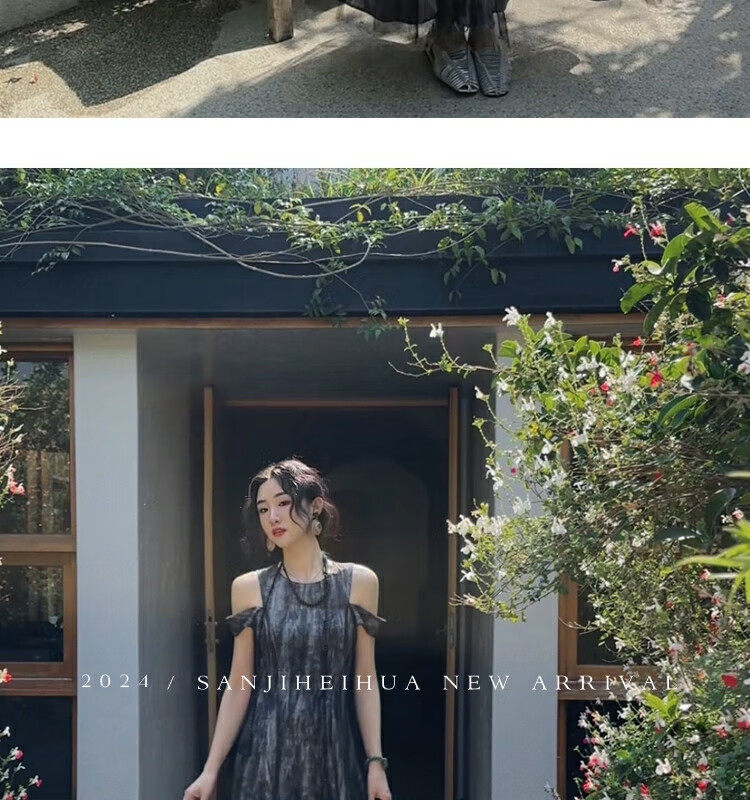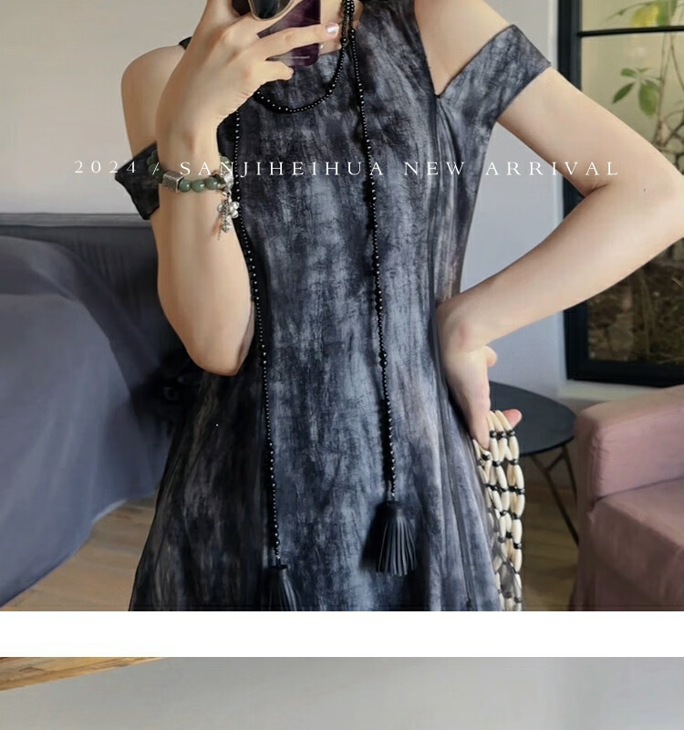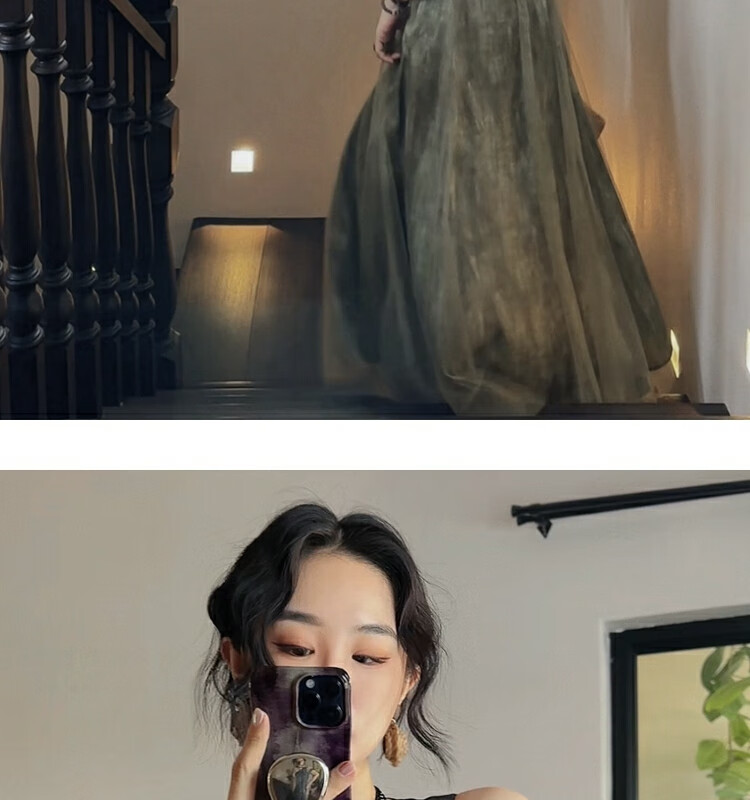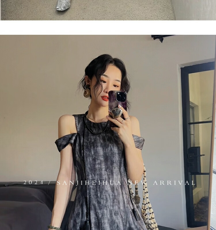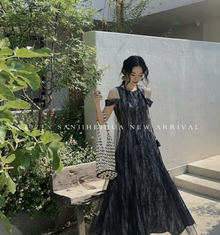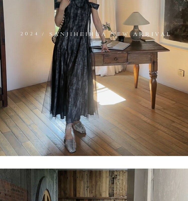 三吉黑花鹦鹉梨严选【烟雨客】夏季新款女设计款简约拼纱裙气质高级感小 豆绿 现货 M