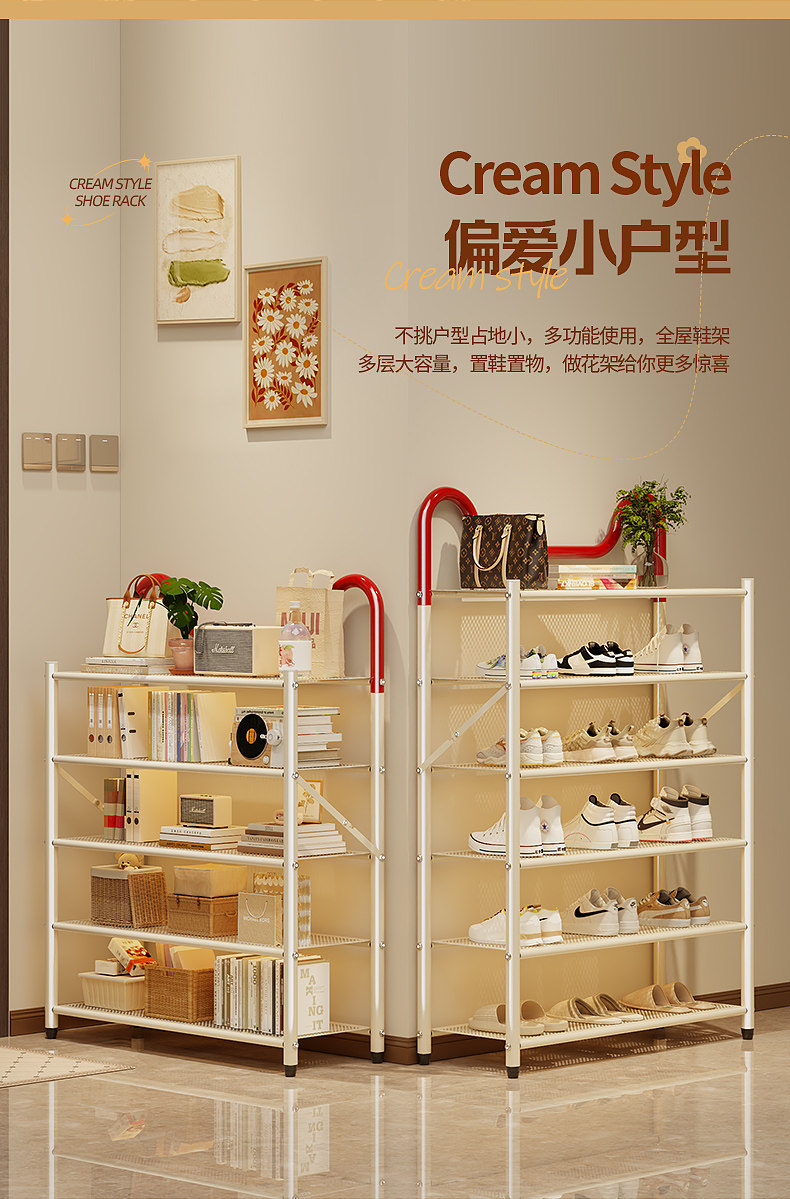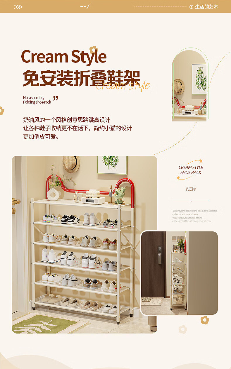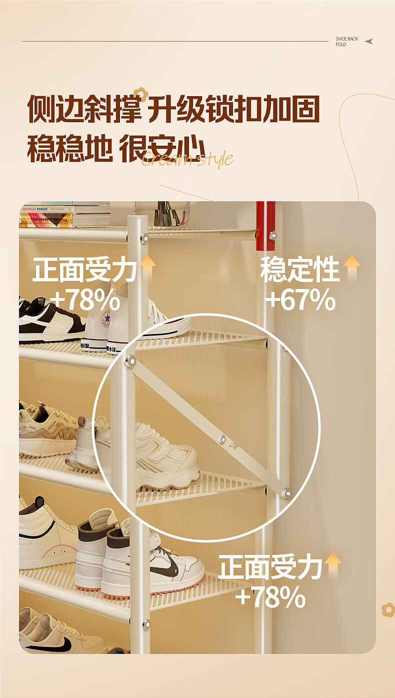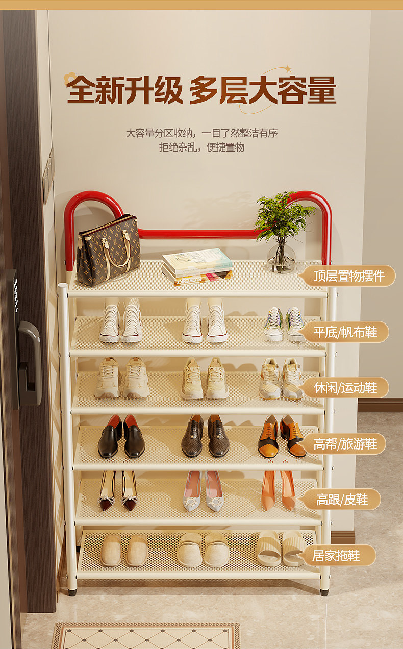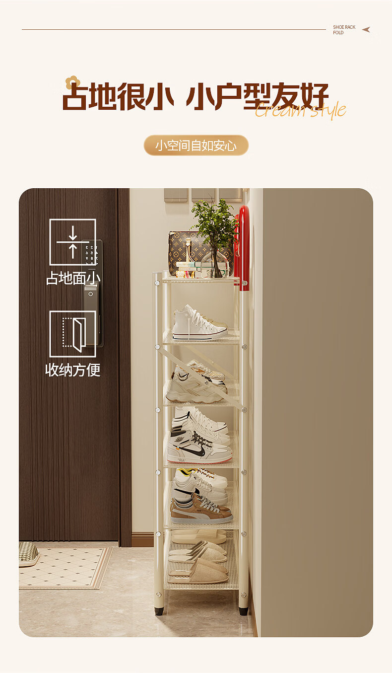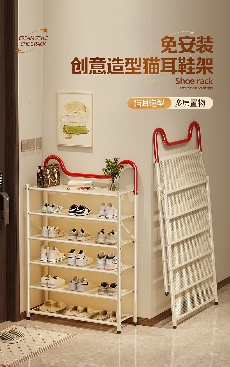 木樽入户门鞋架多层家用门口小窄省空间简易鞋柜宿舍出租房鞋子收纳架 三层50cm白 免安装可折叠