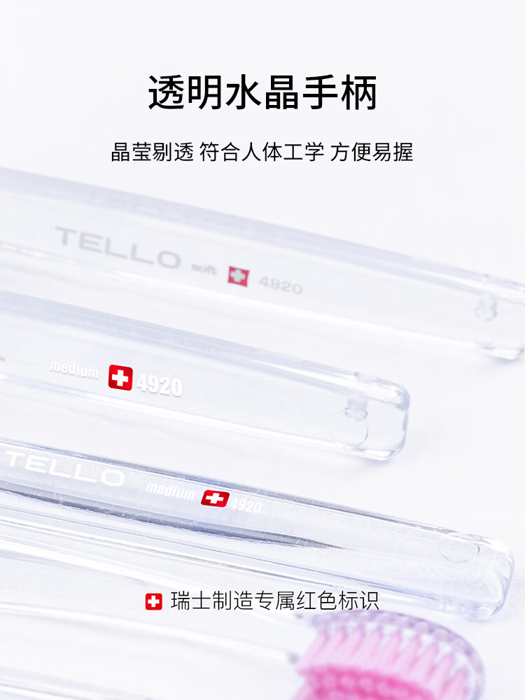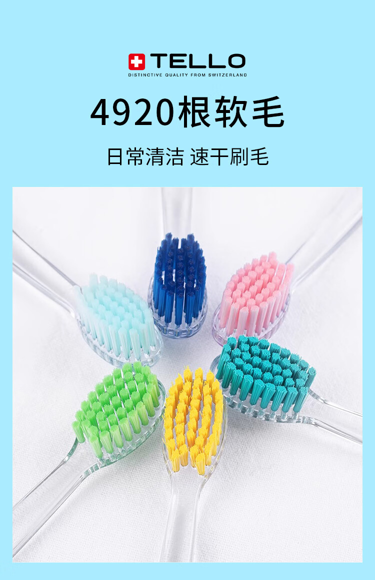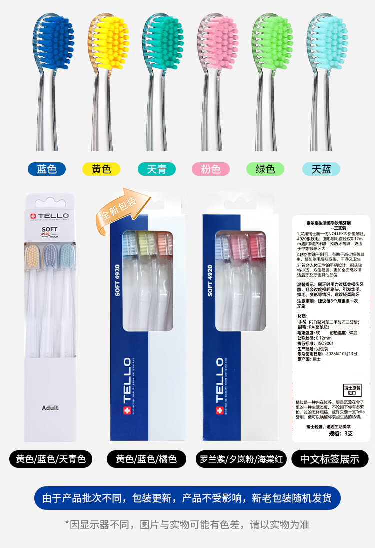 TELLO瑞士进口泰尔乐4920软毛牙刷护龈细毛牙刷深层清洁男女成人牙刷 【黄+蓝+橘色】 3支 -家庭装