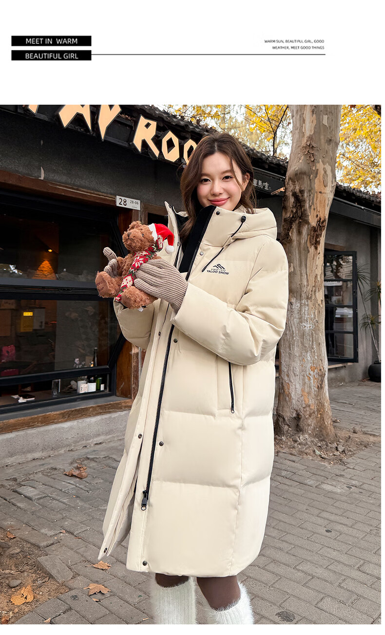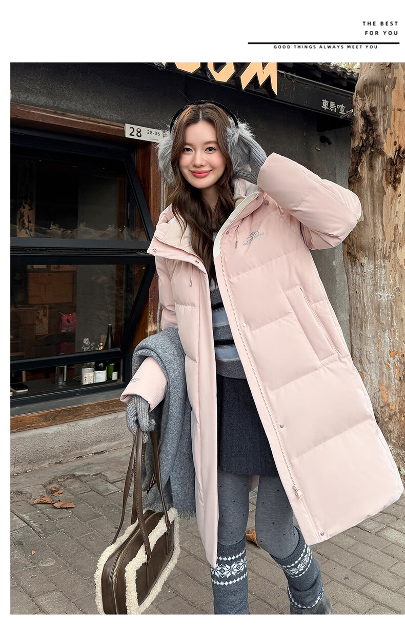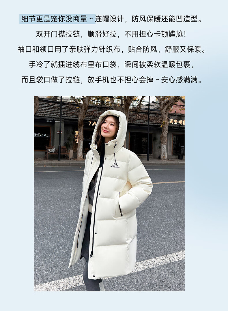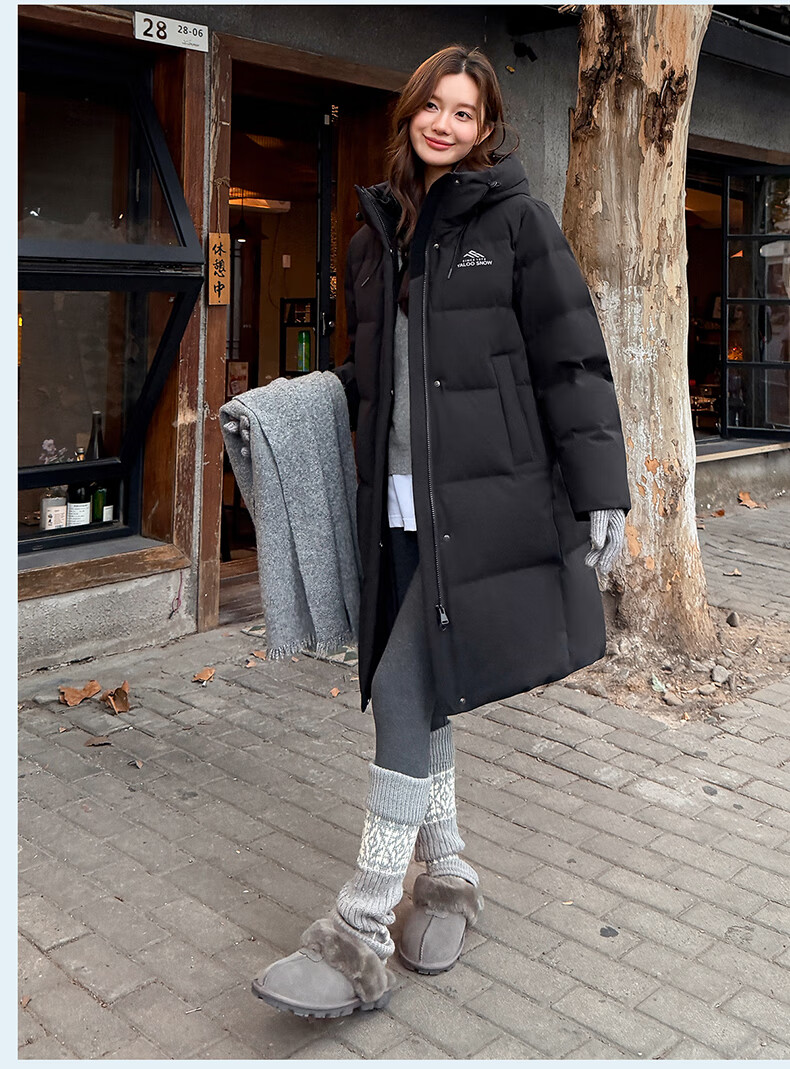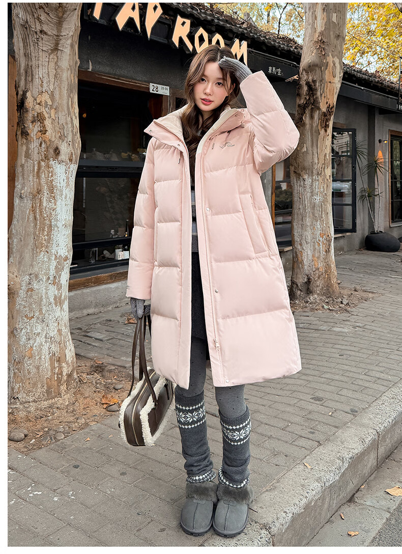雅鹿中长款羽绒服女款2025新款冬季时尚休闲连帽保暖爆款鸭绒外套