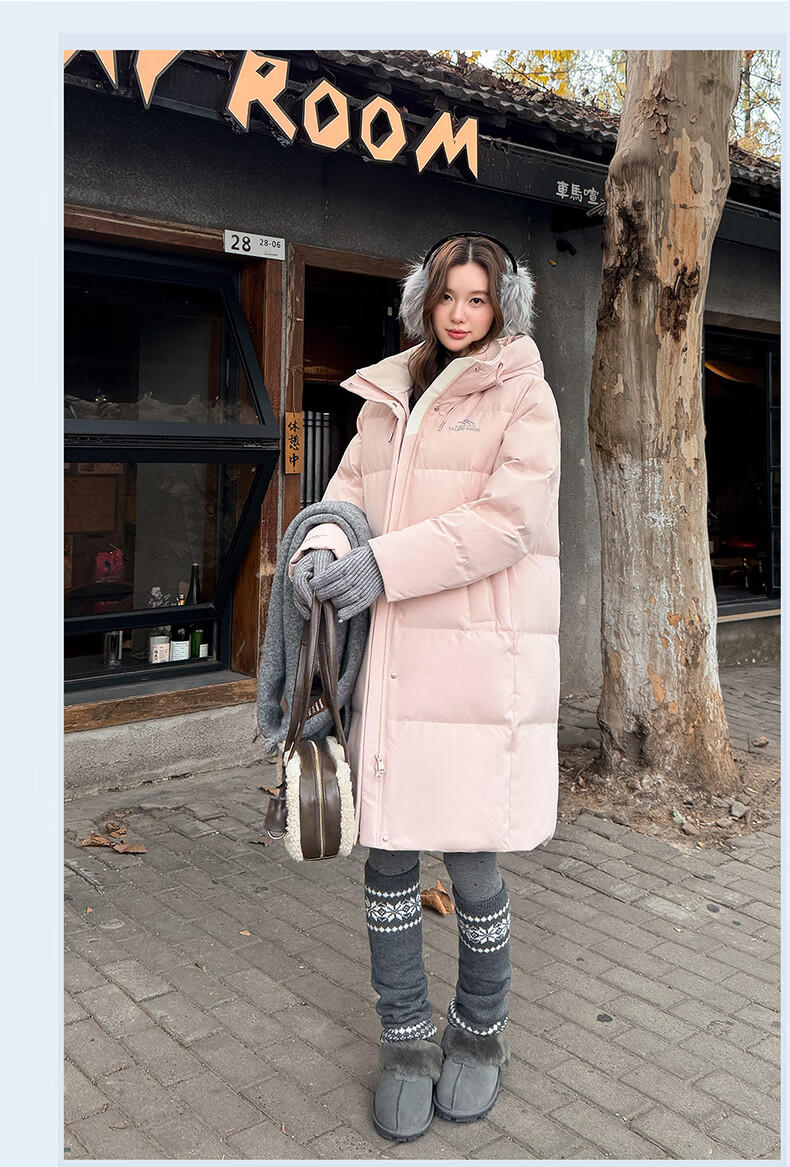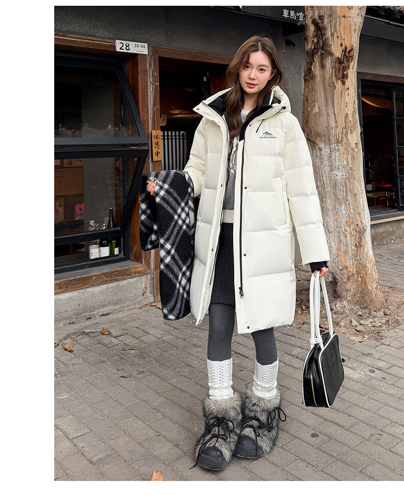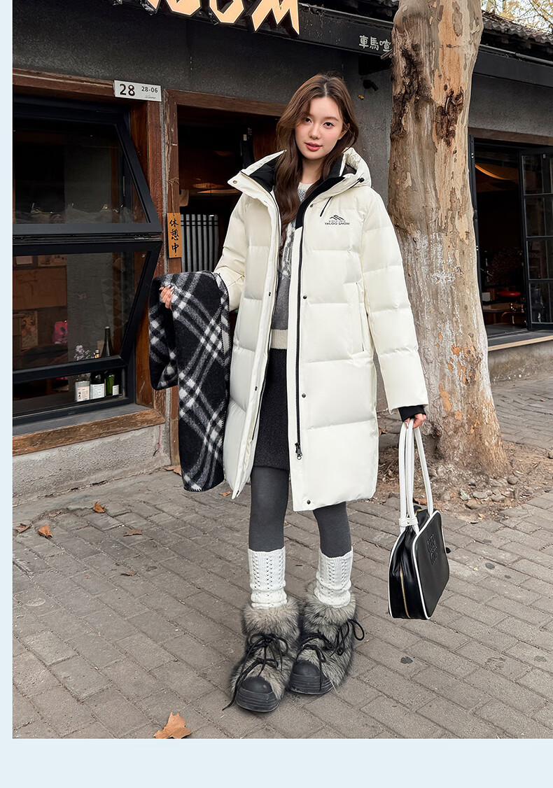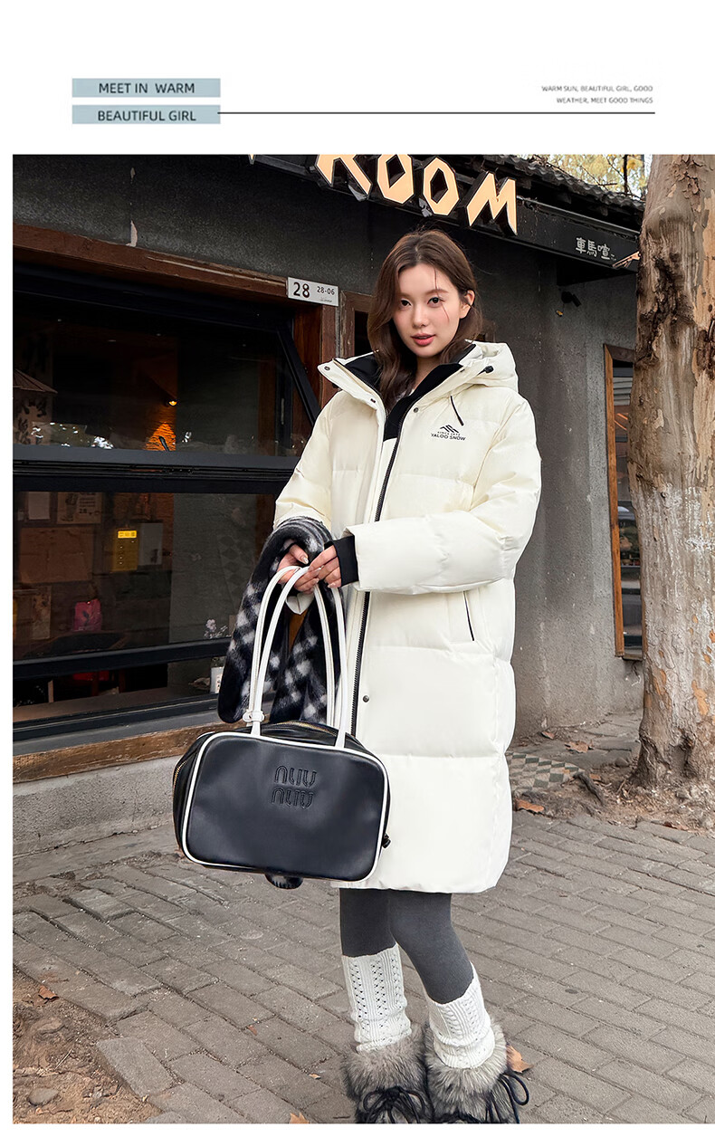 雅鹿中长款羽绒服女款2025新款冬季时尚休闲连帽保暖爆款鸭绒外套