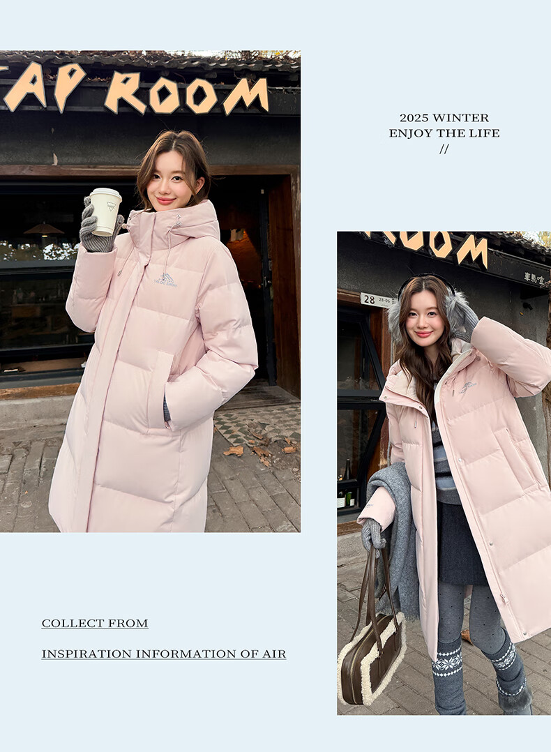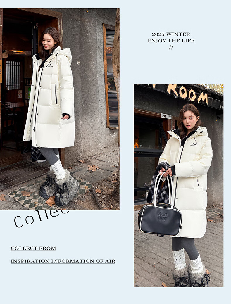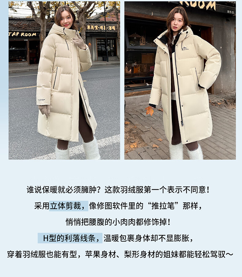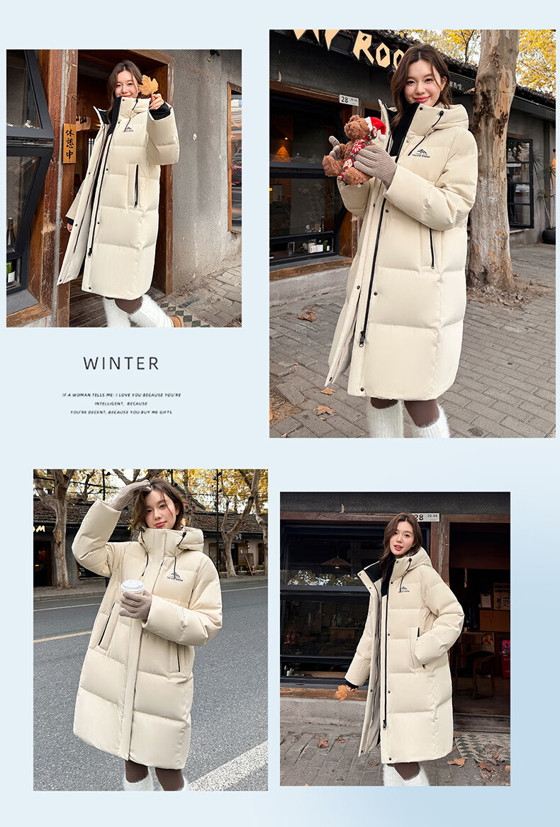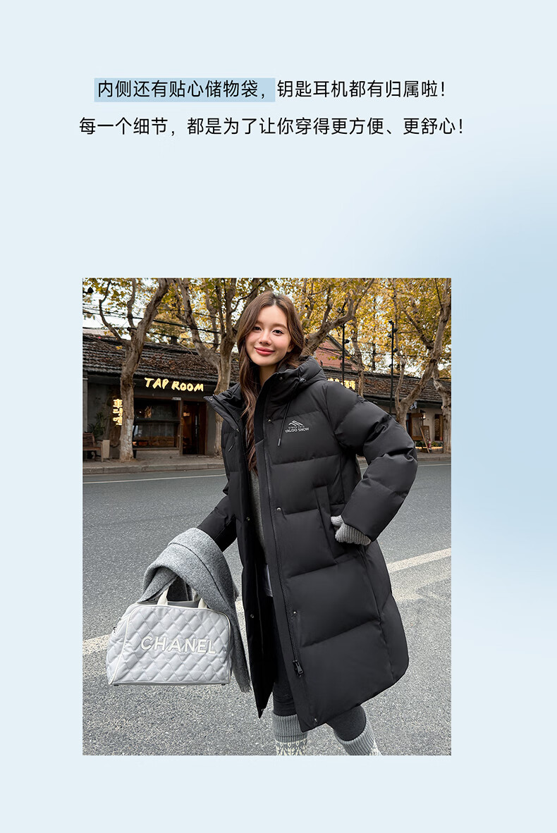 雅鹿中长款羽绒服女款2025新款冬季时尚休闲连帽保暖爆款鸭绒外套
