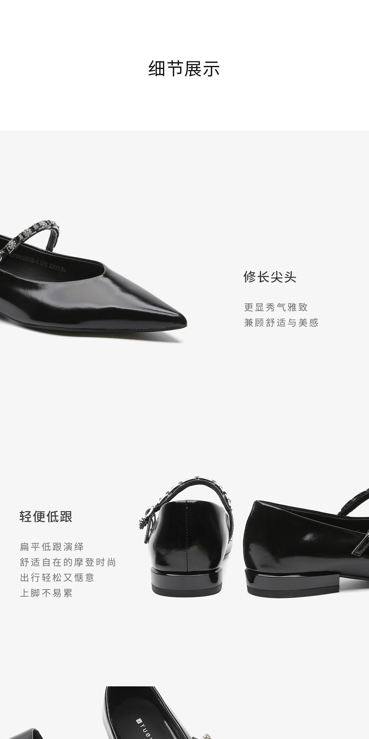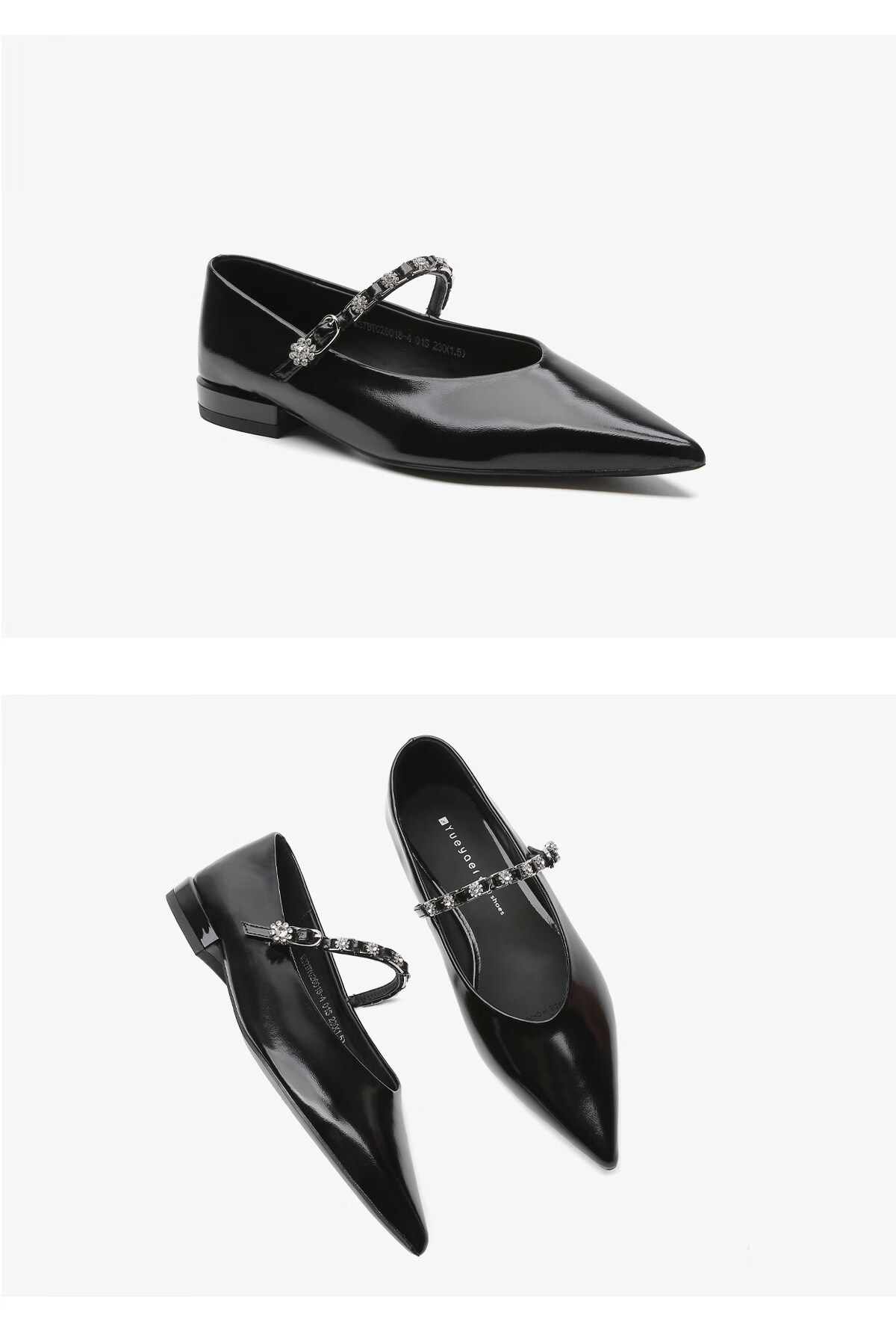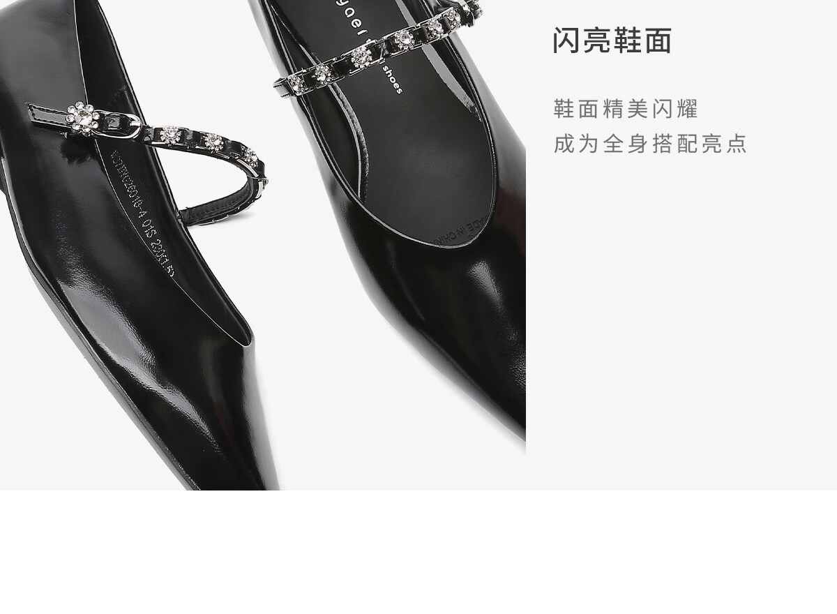月芽儿法式玛丽珍鞋女2025年冬季季新款一字带尖头气质浅口百搭单鞋子 黑色01S 34