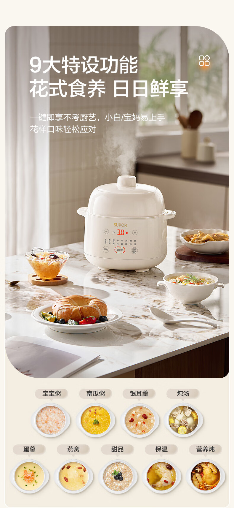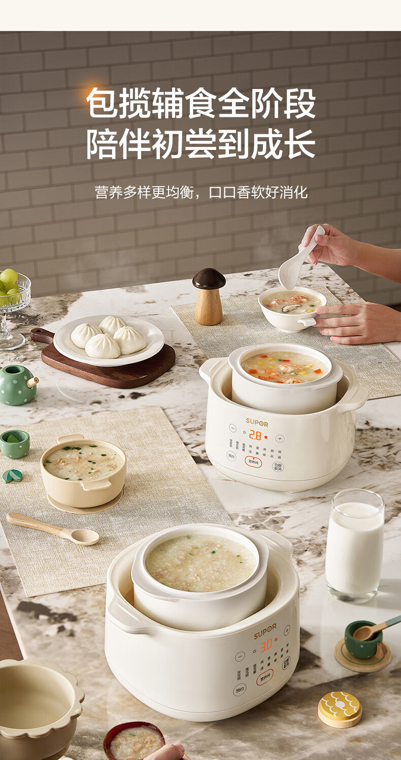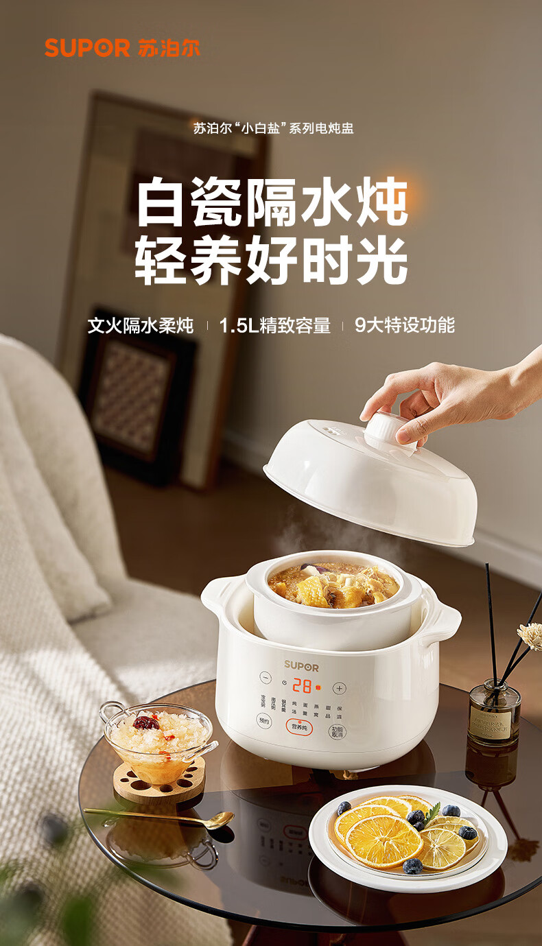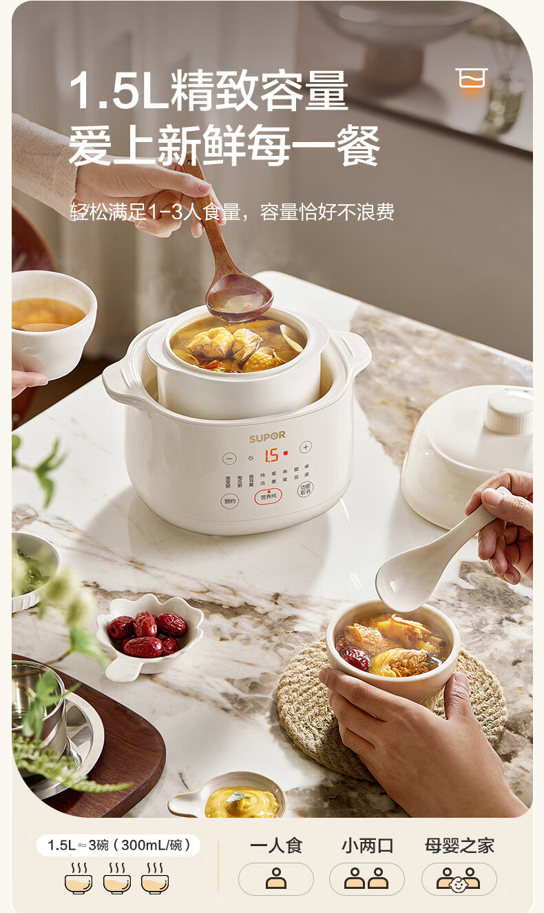 苏泊尔(SUPOR) 电炖锅 电炖盅 燕窝炖 宝宝辅食 婴儿煮粥锅1.5L精巧容量 隔水揉炖 bb煲迷你煮粥煲汤锅DZ15YC897