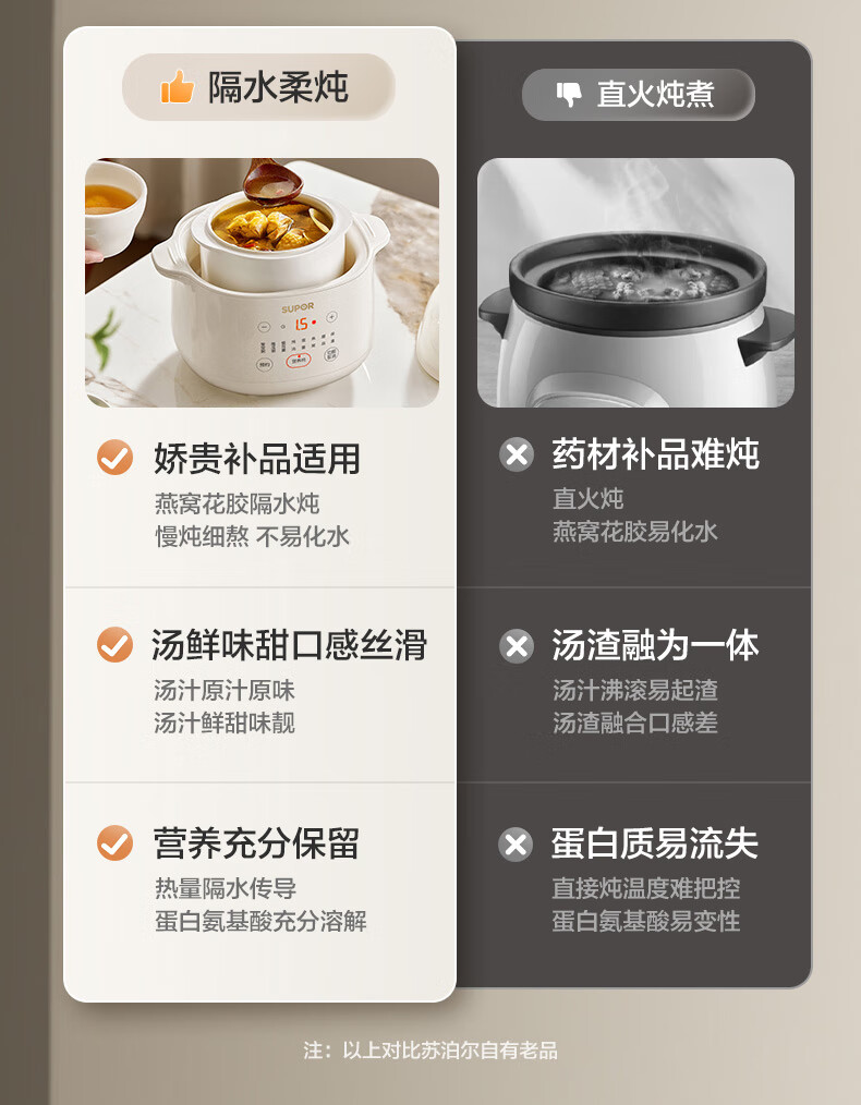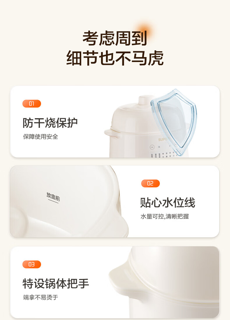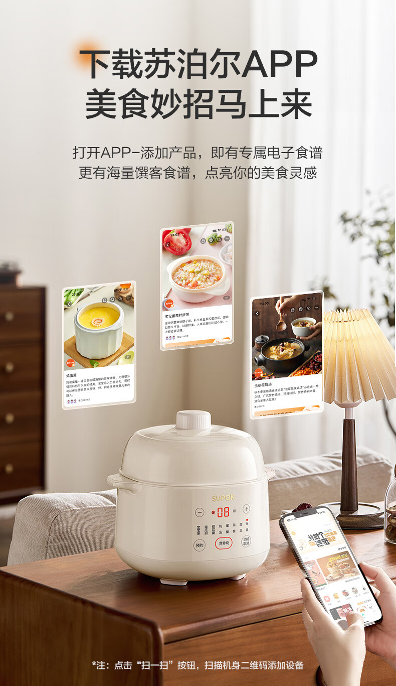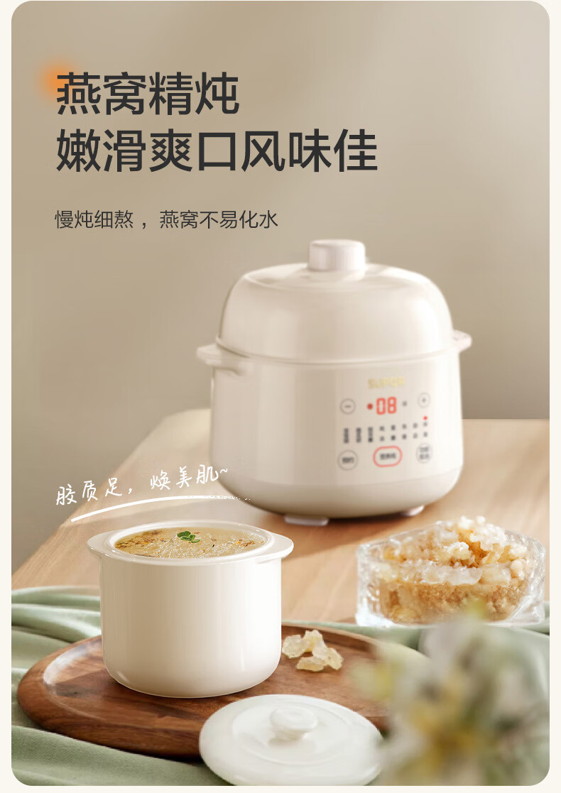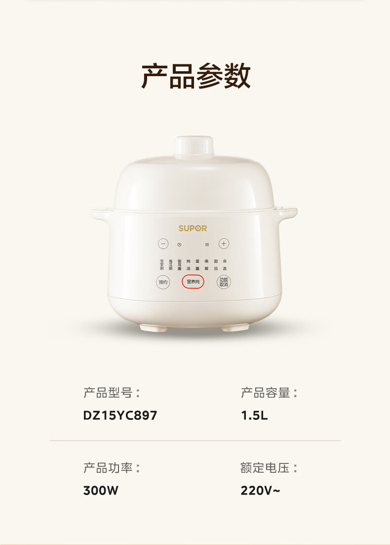 苏泊尔(SUPOR) 电炖锅 电炖盅 燕窝炖 宝宝辅食 婴儿煮粥锅1.5L精巧容量 隔水揉炖 bb煲迷你煮粥煲汤锅DZ15YC897