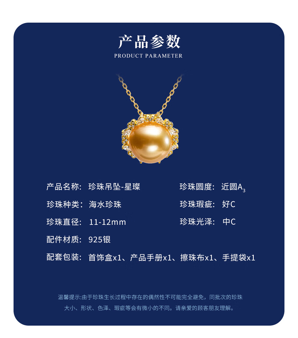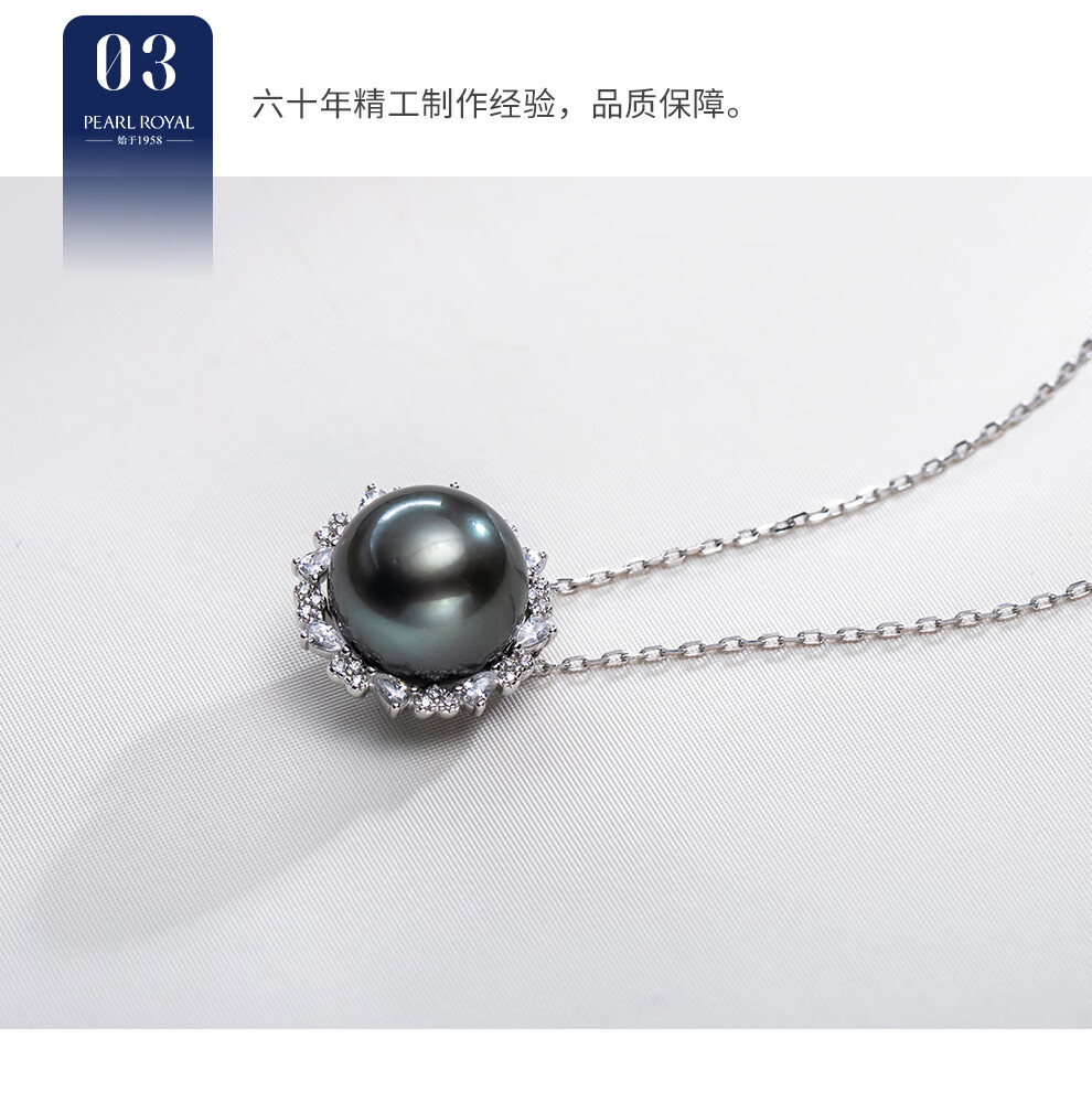 南珠宫星璨大溪地珍珠吊坠925银南洋金珠项链近圆高亮新年礼物送妈妈 黑珍珠吊坠 11.0-12.0mm