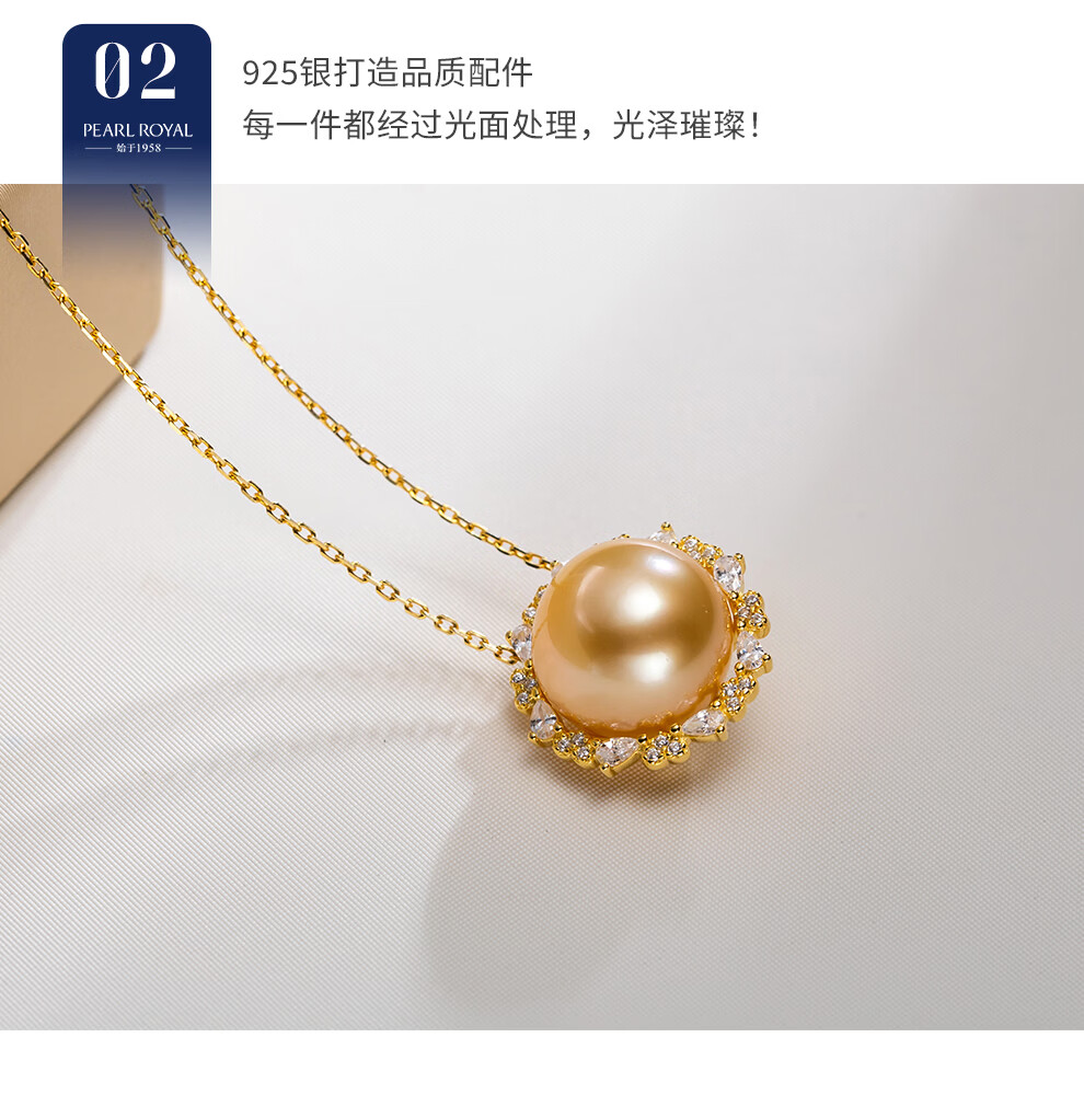南珠宫恋光925银海水珍珠耳环南洋金珠耳钉强光近圆轻奢生日礼物送女友 10.0-11.0mm 925银海水珍珠耳环