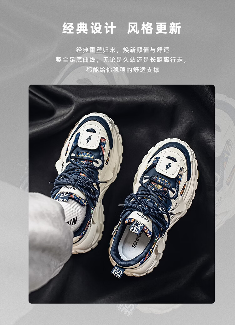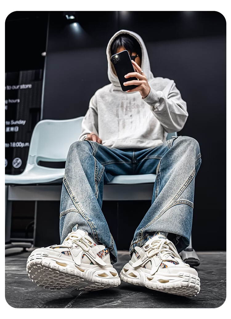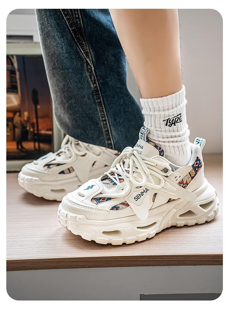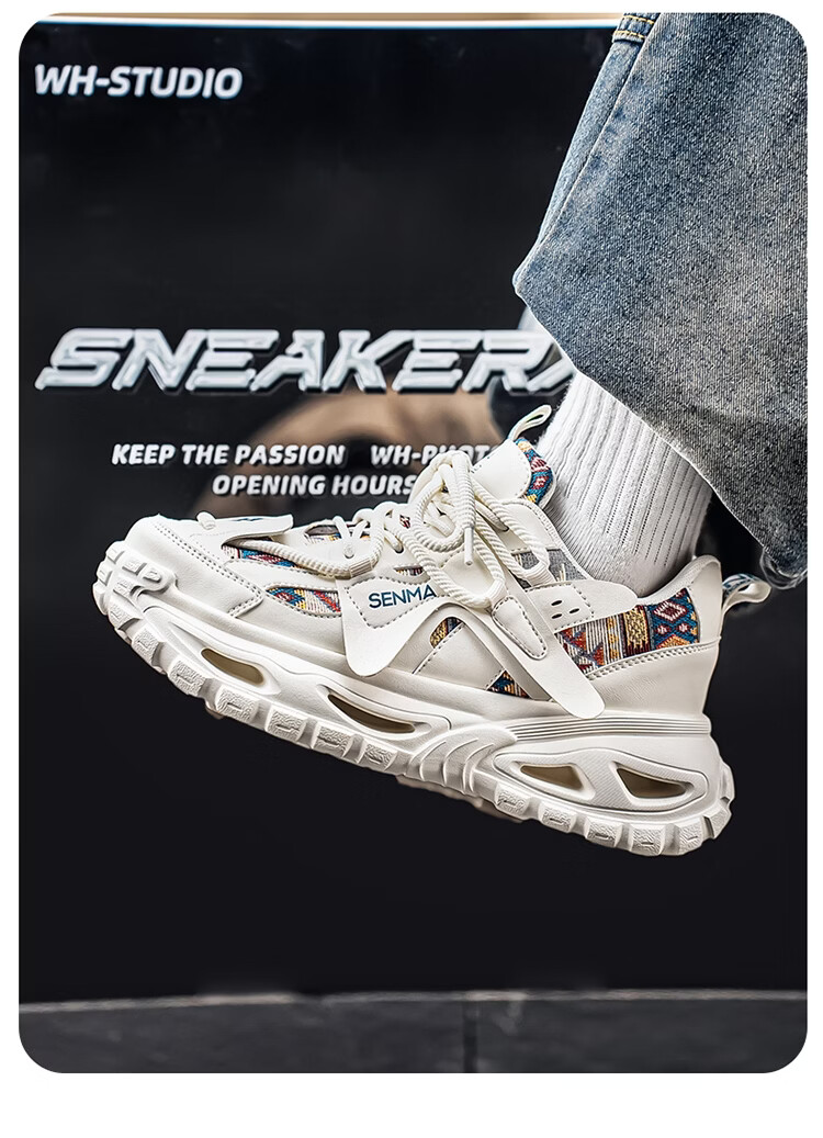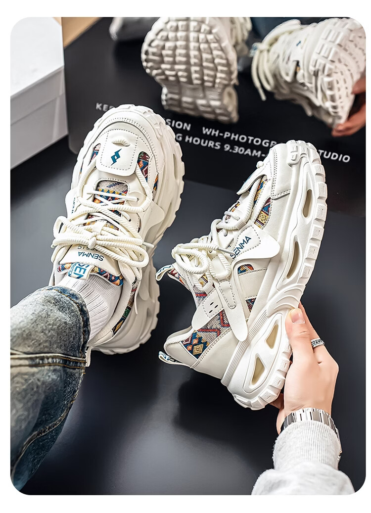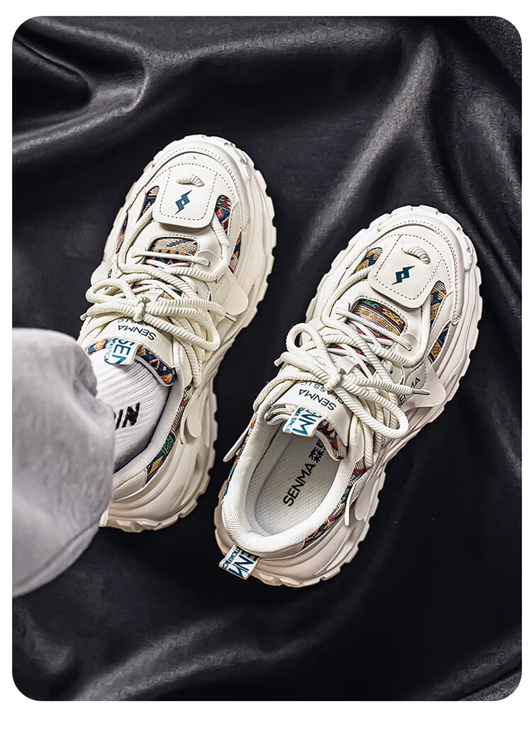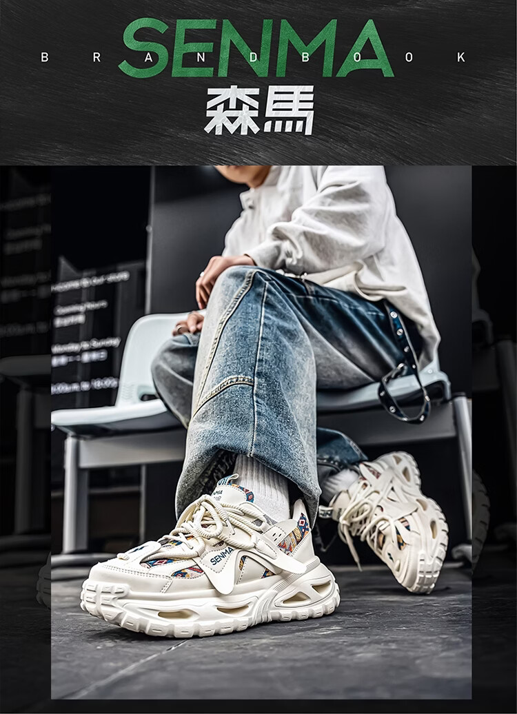 森馬男鞋春季2026新款潮牌百搭厚底增高老爹鞋男士透气防滑休闲运动鞋 白米【基础款】 42 标准码数/现货秒发