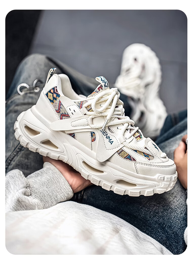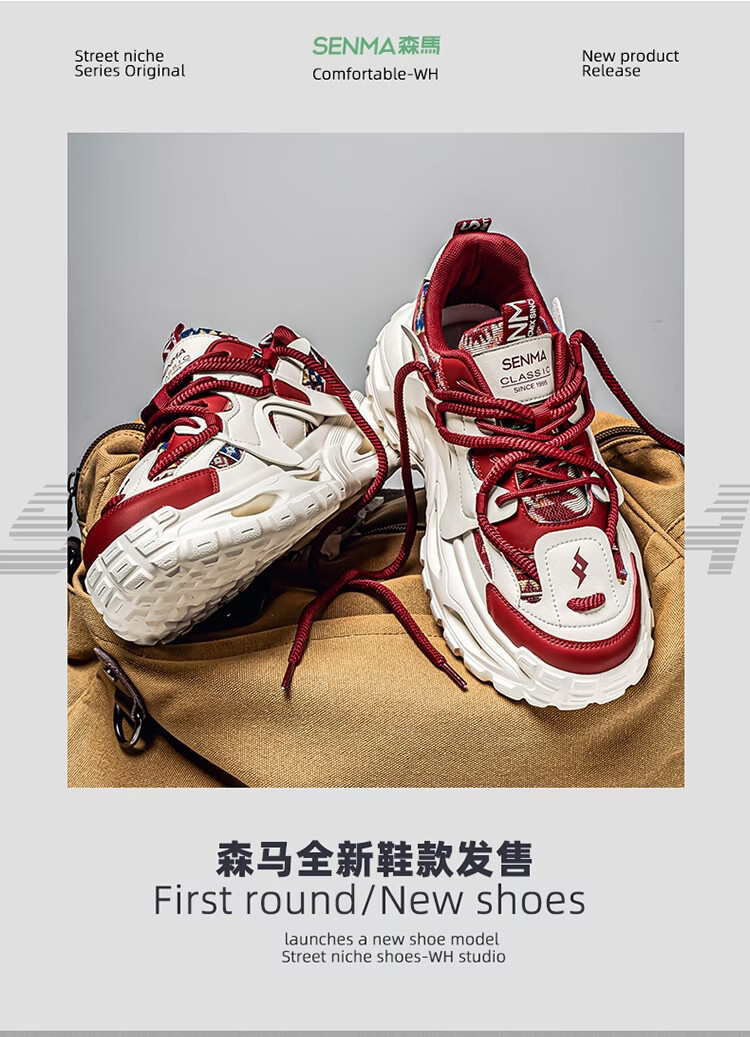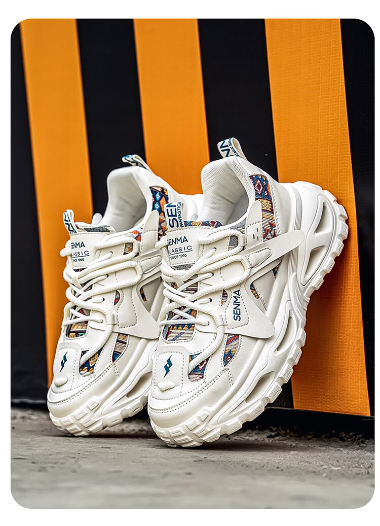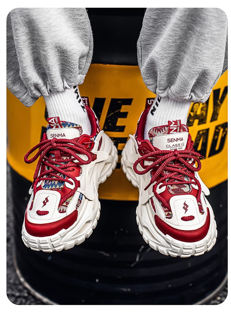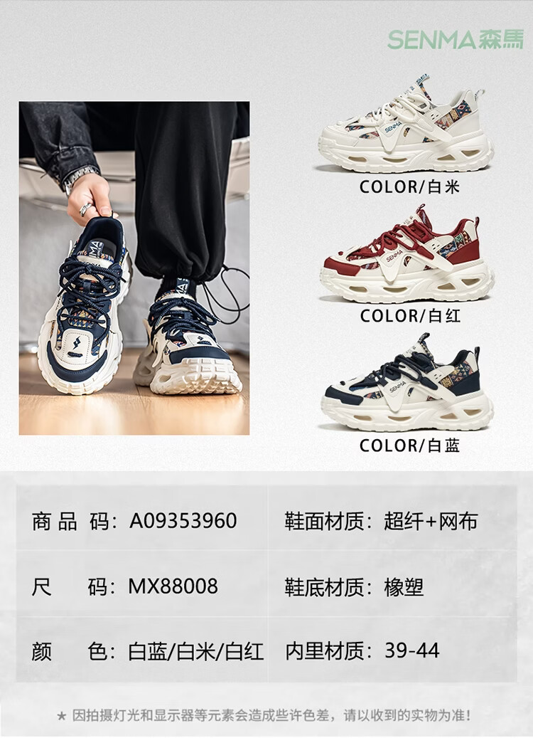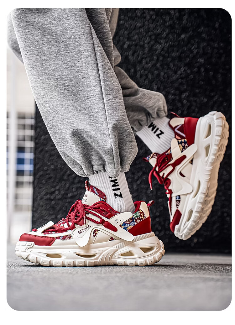 森馬男鞋春季2026新款潮牌百搭厚底增高老爹鞋男士透气防滑休闲运动鞋 白米【基础款】 42 标准码数/现货秒发