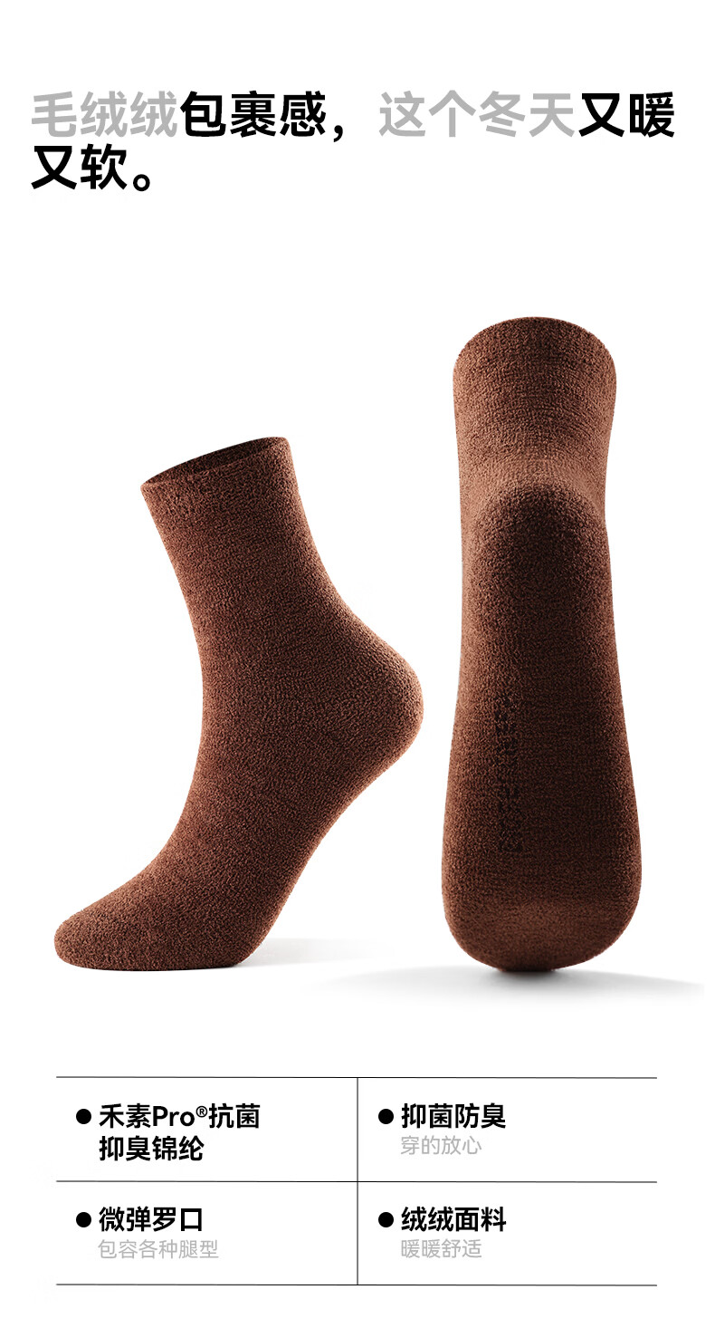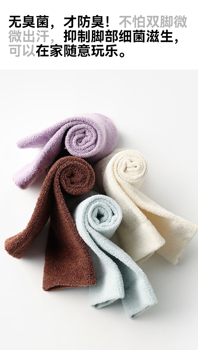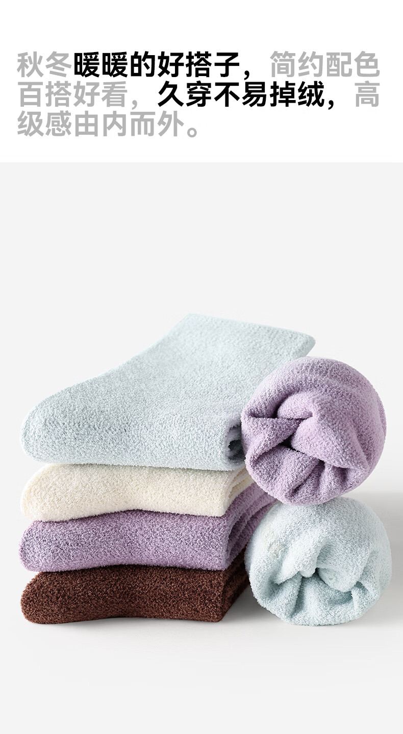 禾素时代冬季羽柔袜子加绒加厚高筒袜抗菌防臭抗寒家居地板袜长袜 羽柔绒绒防臭女袜 羽柔白+羽柔棕+羽柔紫+羽柔青 均码