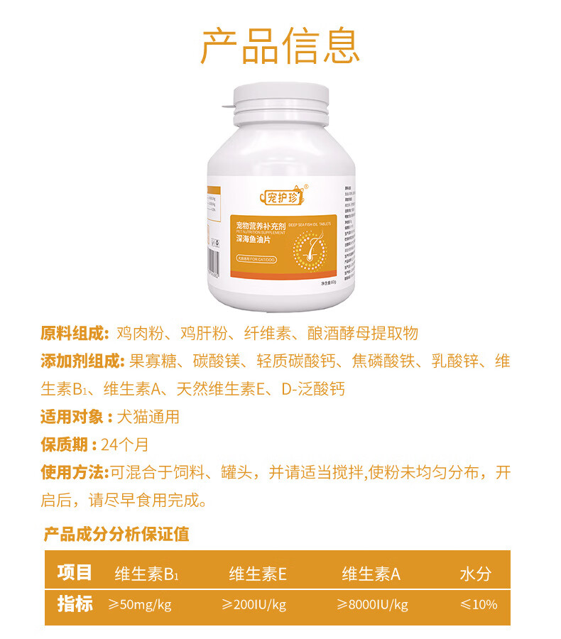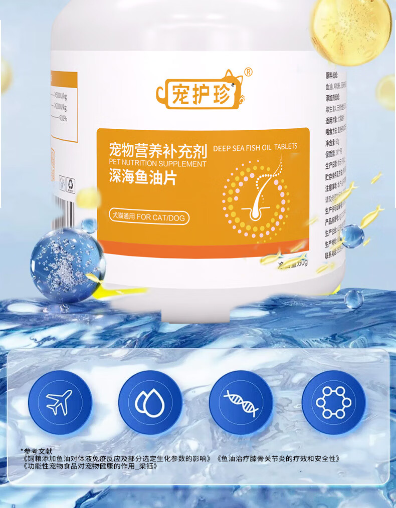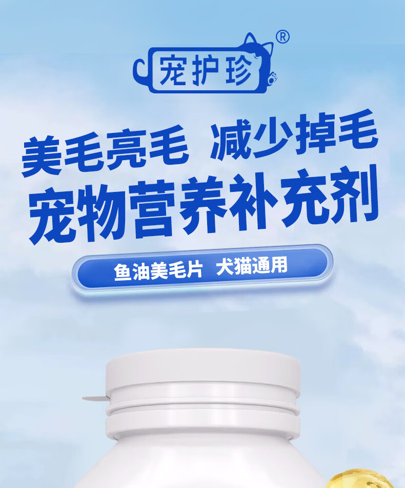 宠护珍猫咪狗狗通用深海鱼油片美毛靓毛防掉毛宠物犬猫补充营养 深海鱼油片(60g,200片/瓶) 20片试吃装(袋装,无瓶)