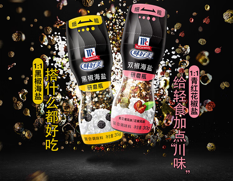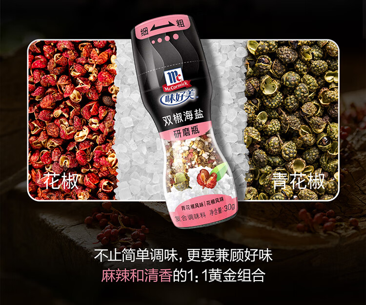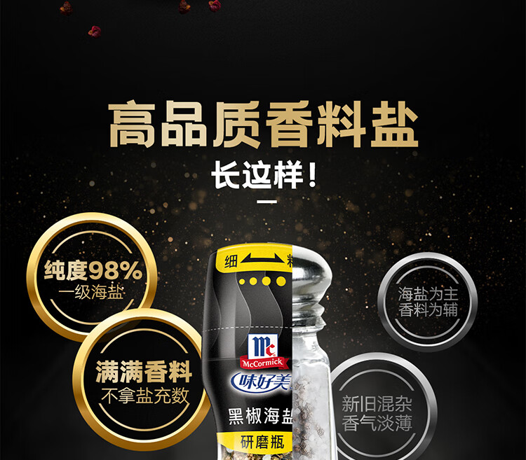 味好美(McCormicK)研磨瓶黑椒海盐 【98%精纯海盐/5年树龄胡椒】香辛料调料