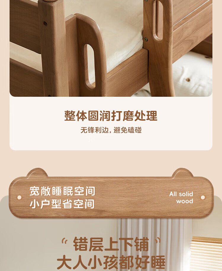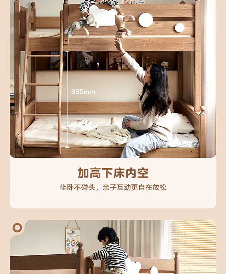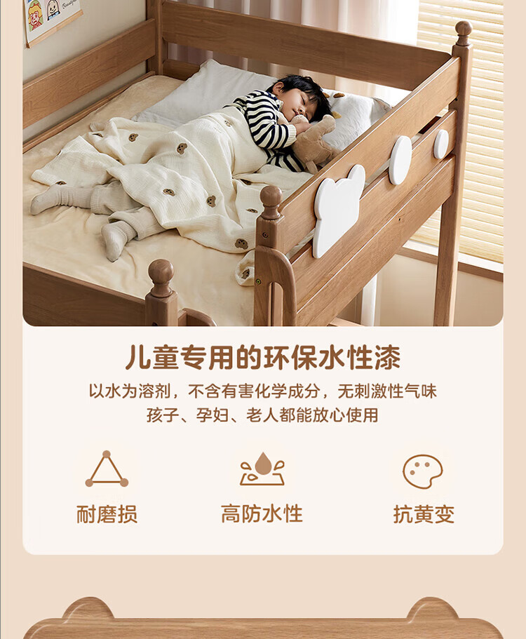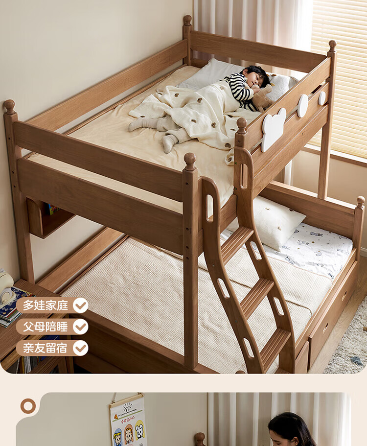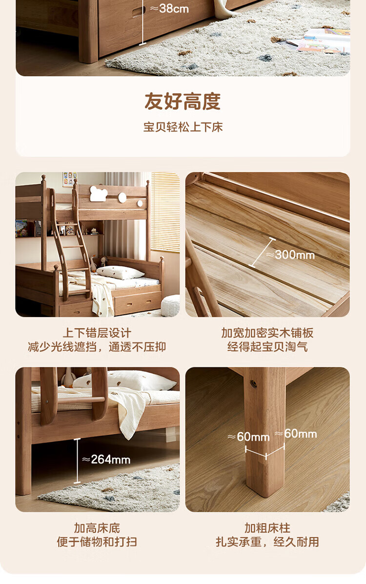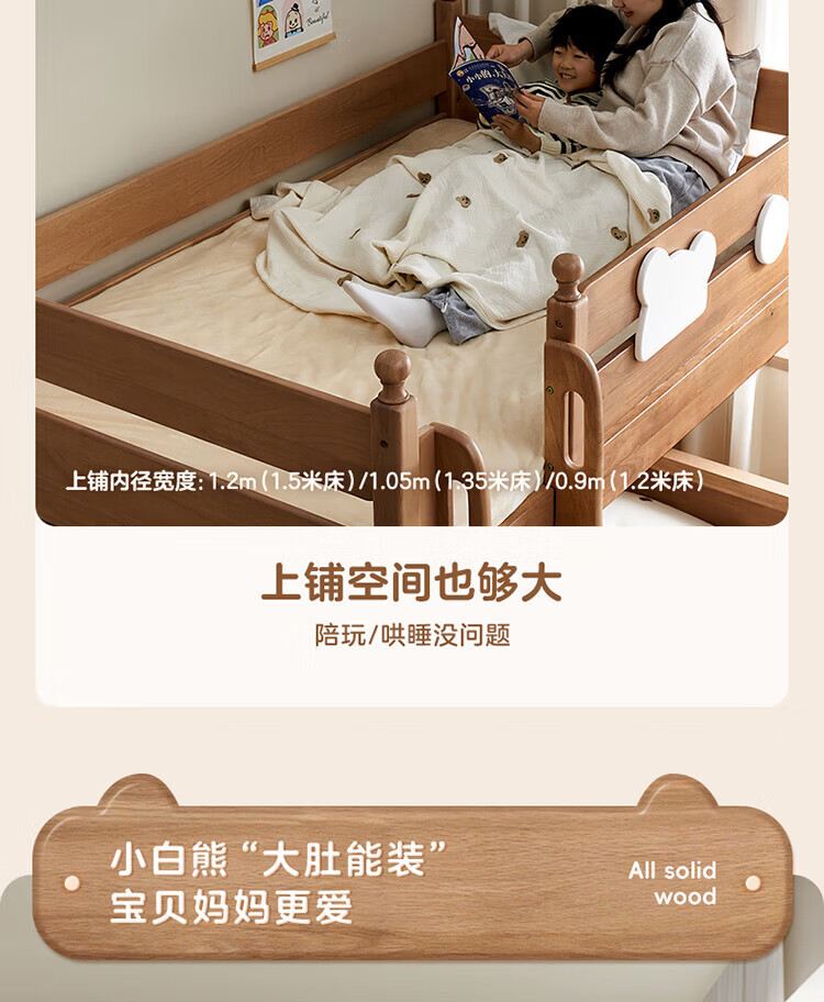 全友家居儿童上下铺全实木双层高低床带护栏男孩女孩小户型收纳储物床 橡胶木|上下床 1.2x1.9米