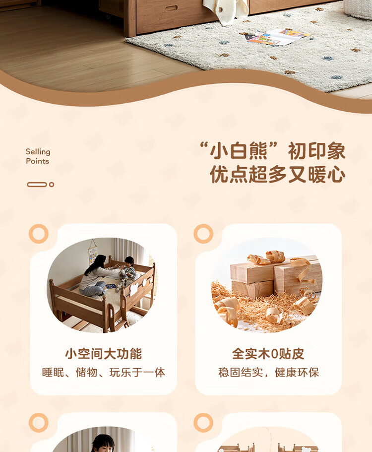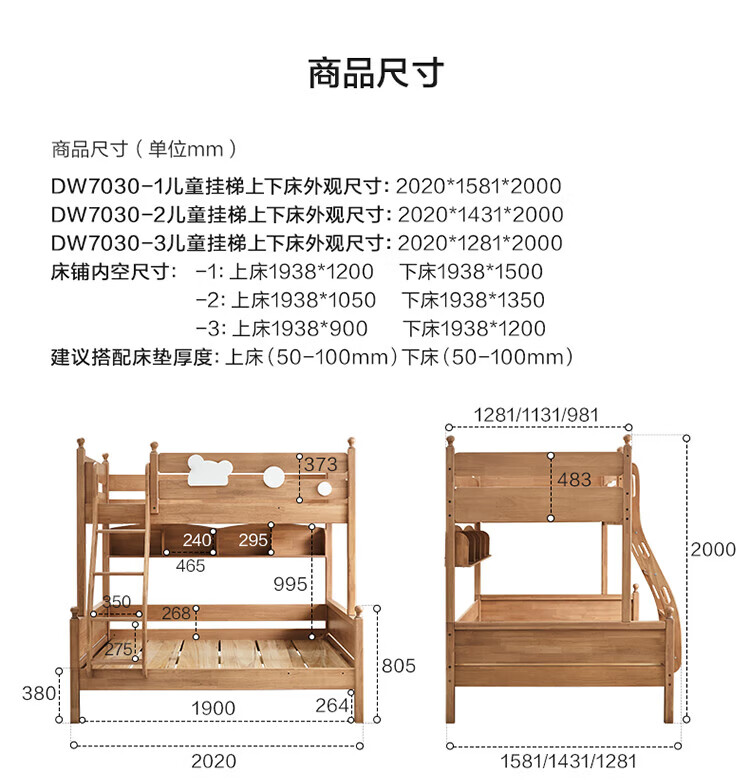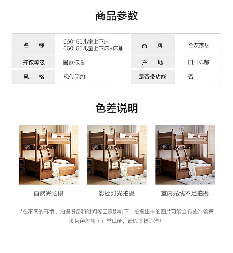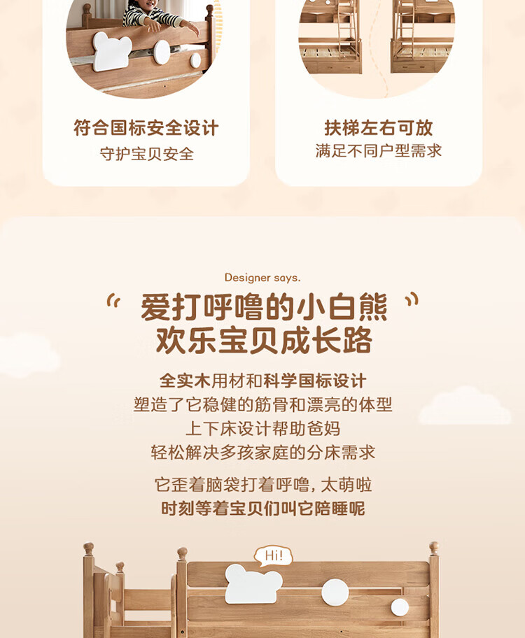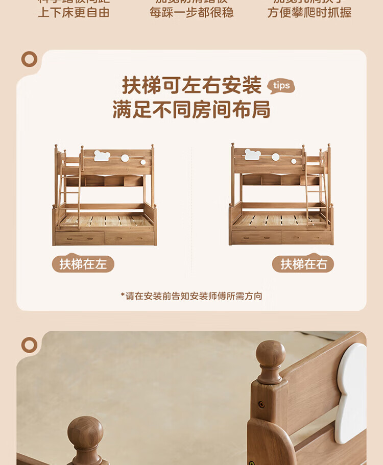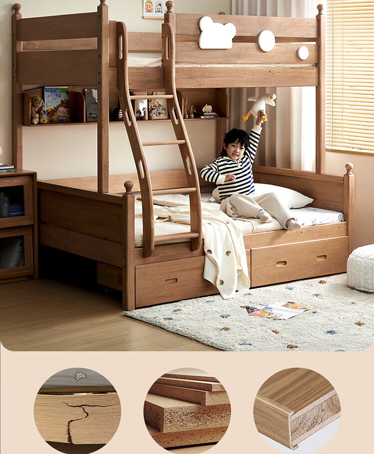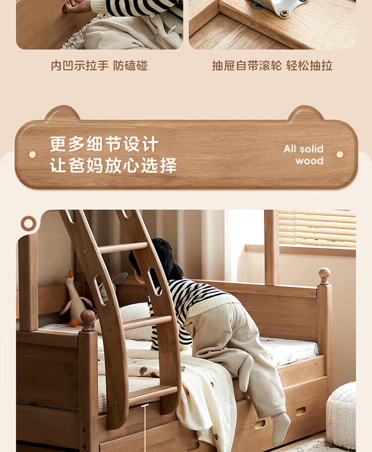 全友家居儿童上下铺全实木双层高低床带护栏男孩女孩小户型收纳储物床 橡胶木|上下床 1.2x1.9米