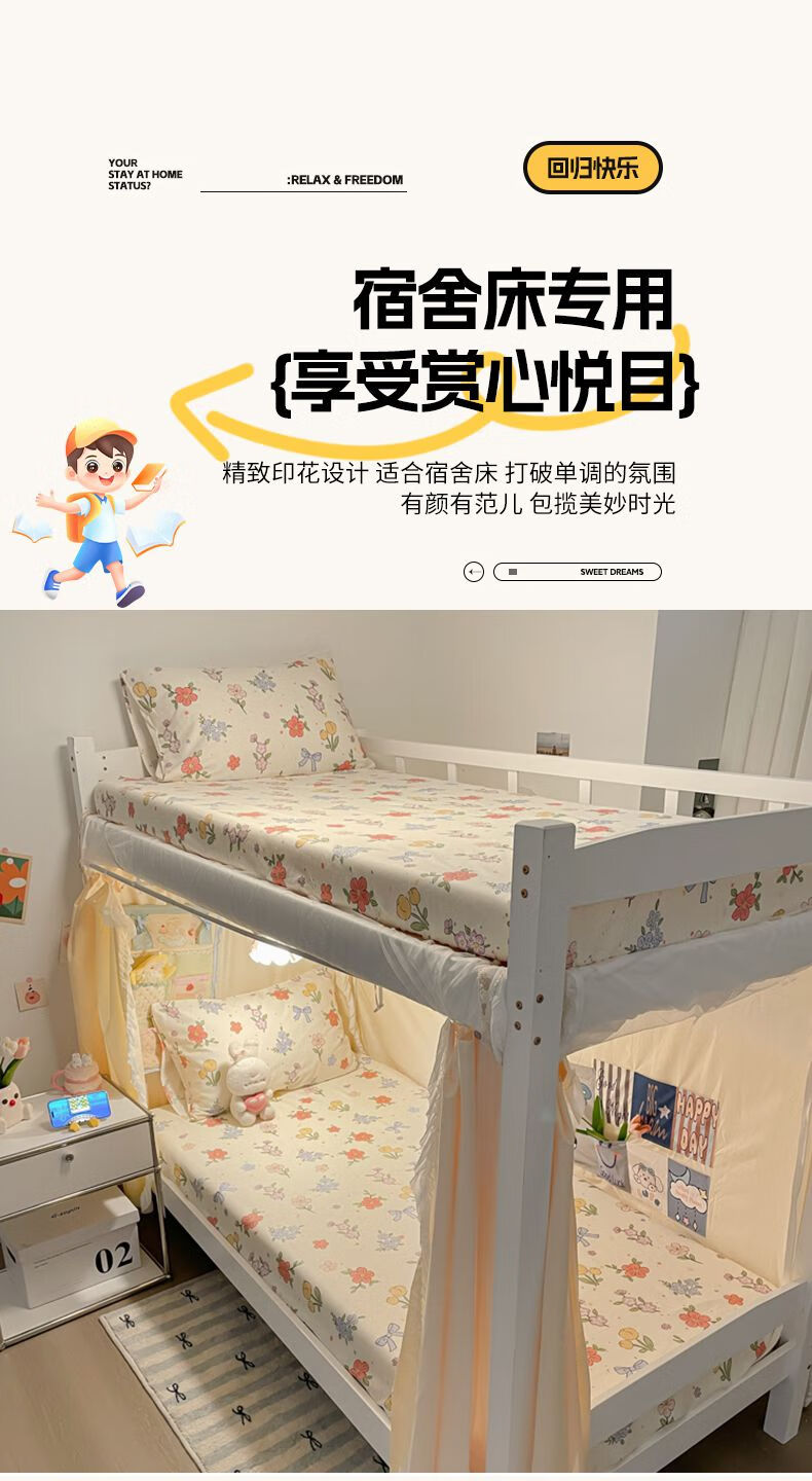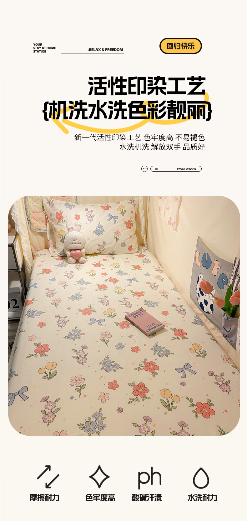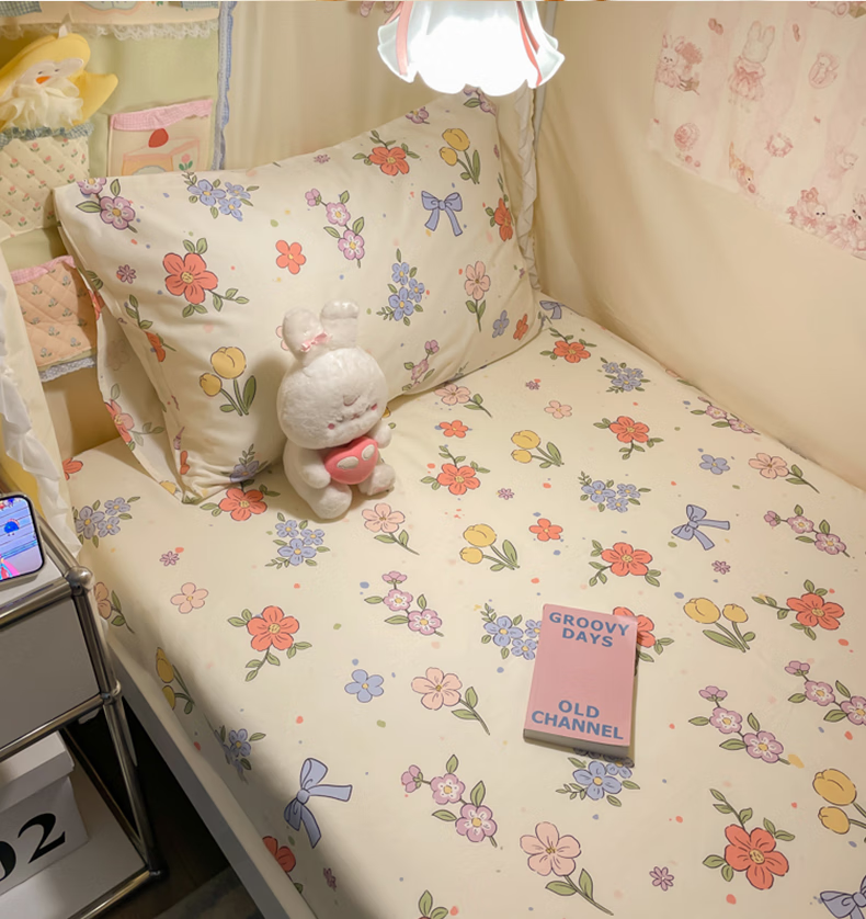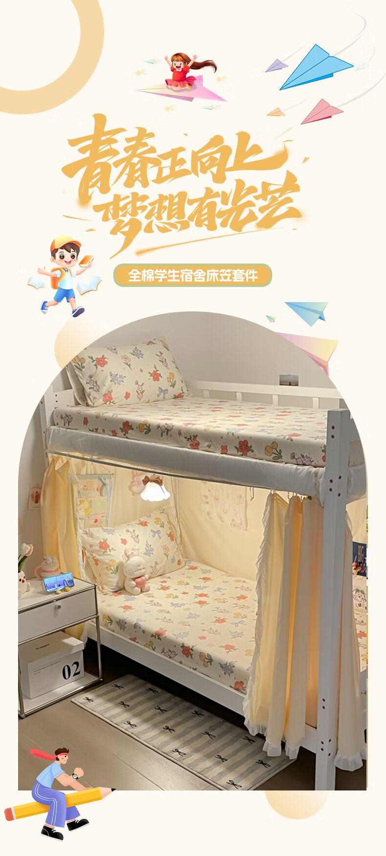 无印良品大学生宿舍床上三件套100%纯棉床笠款全棉被套寝室单人被褥全套 花园蝴蝶结【一站式购齐】 床笠款 三件套:0.9x1.9m+被套+枕套1只