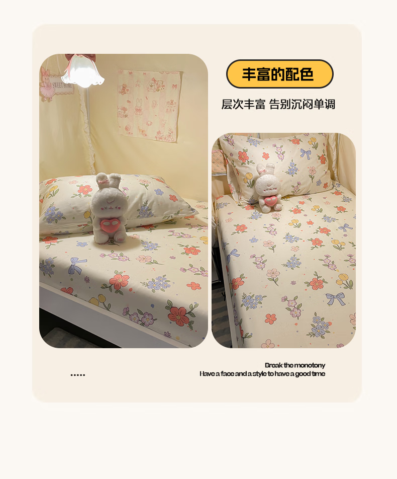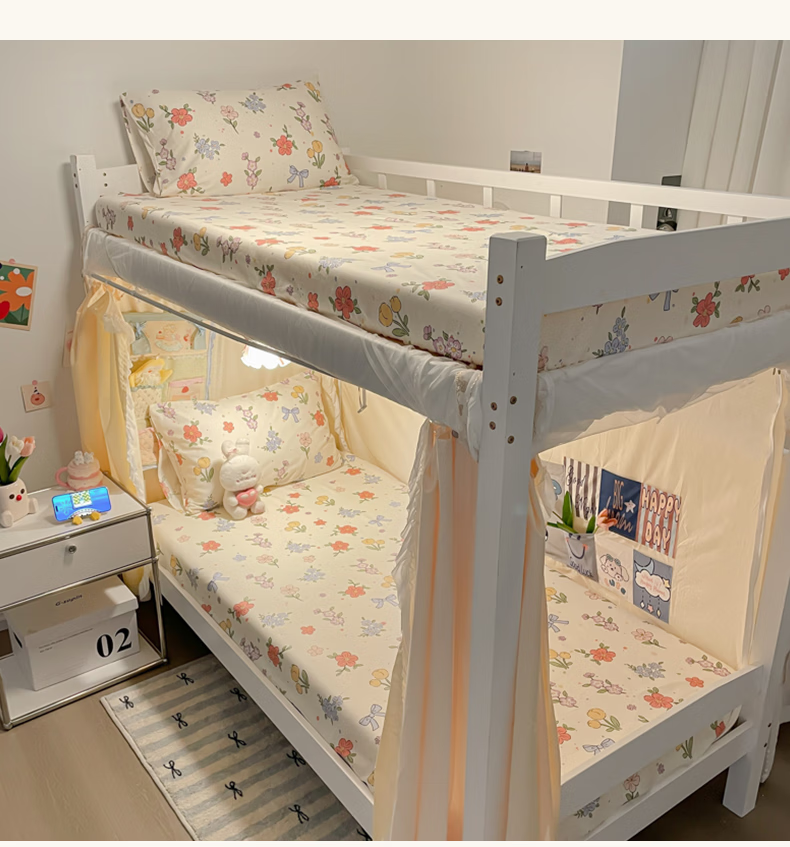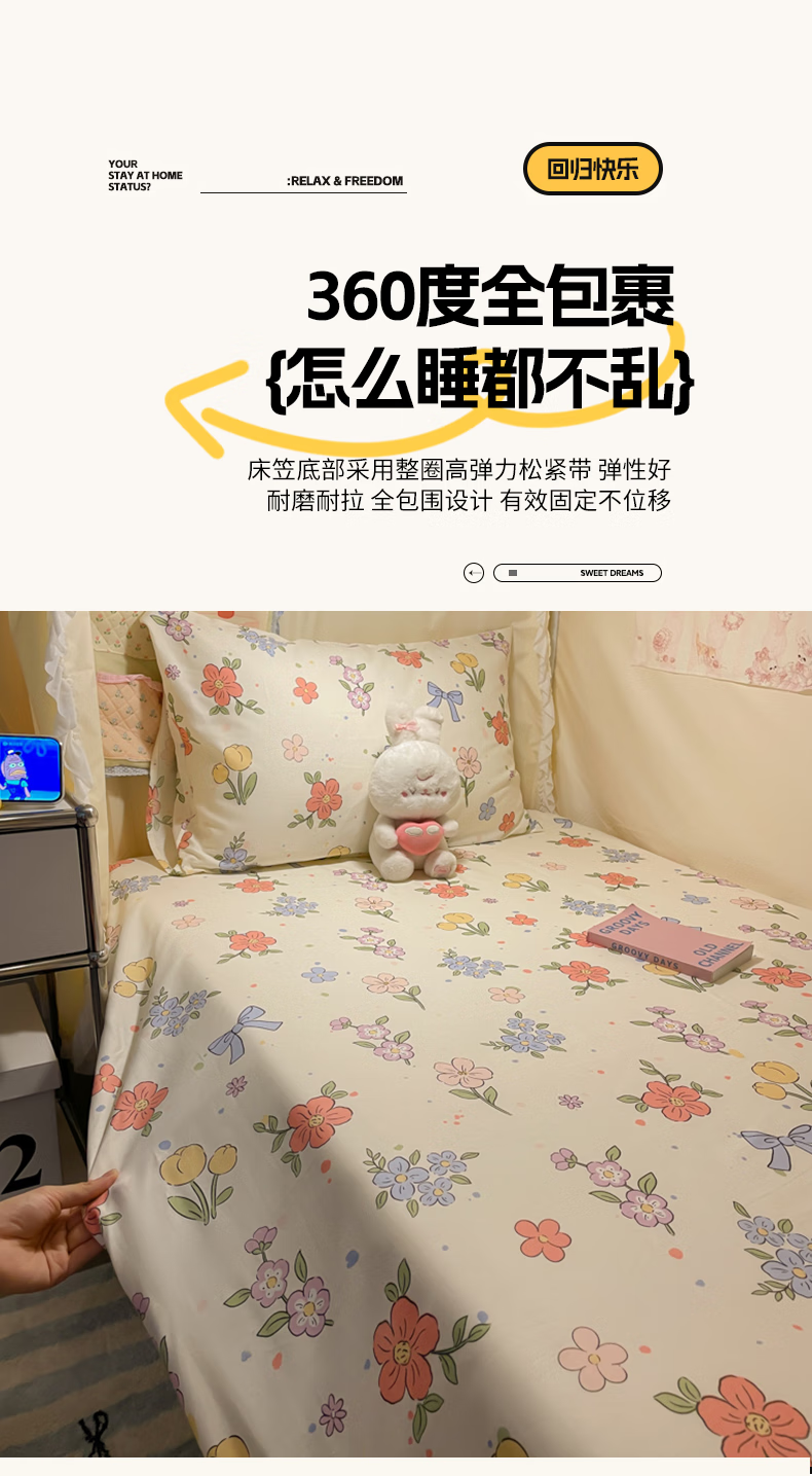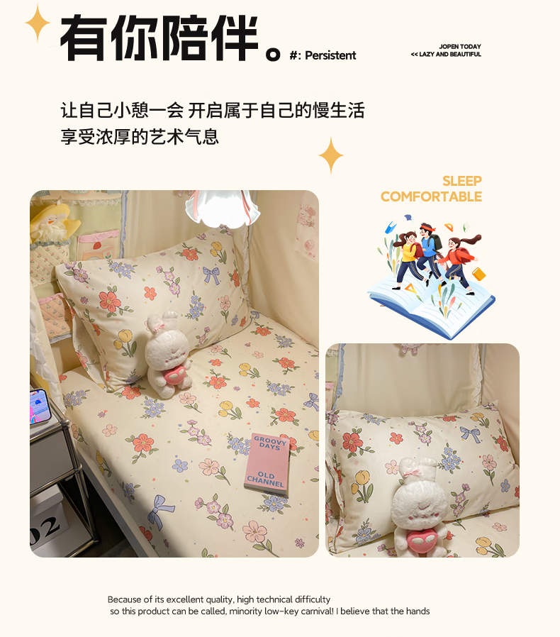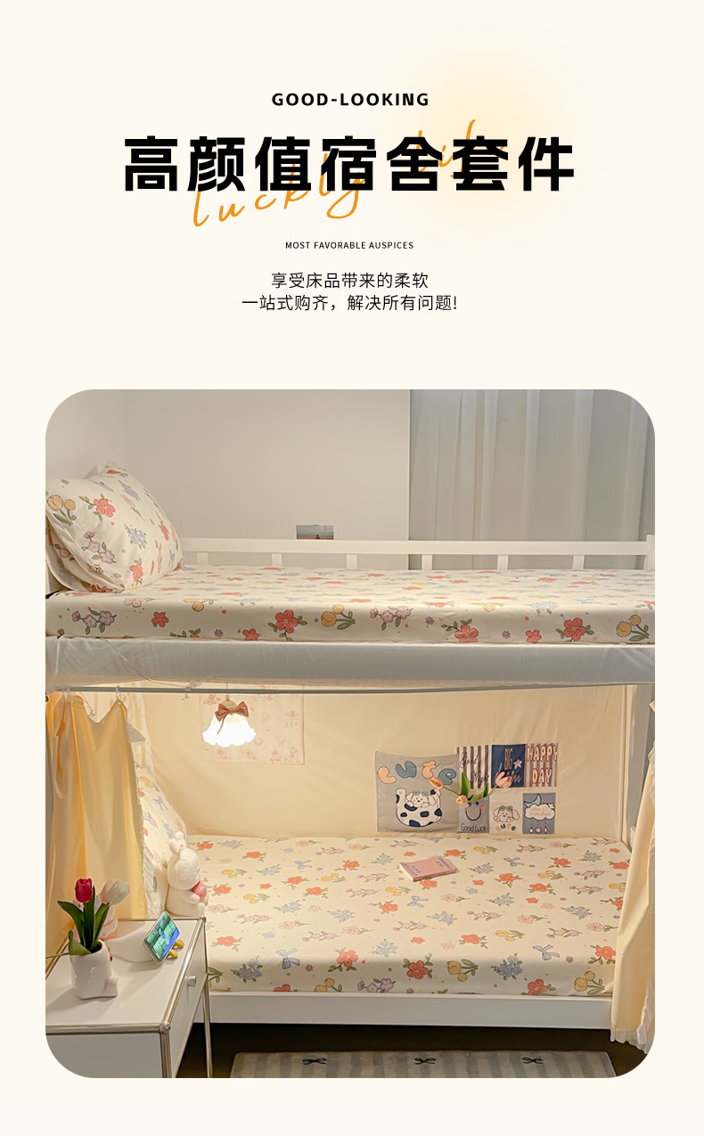 无印良品大学生宿舍床上三件套100%纯棉床笠款全棉被套寝室单人被褥全套 花园蝴蝶结【一站式购齐】 床笠款 三件套:0.9x1.9m+被套+枕套1只