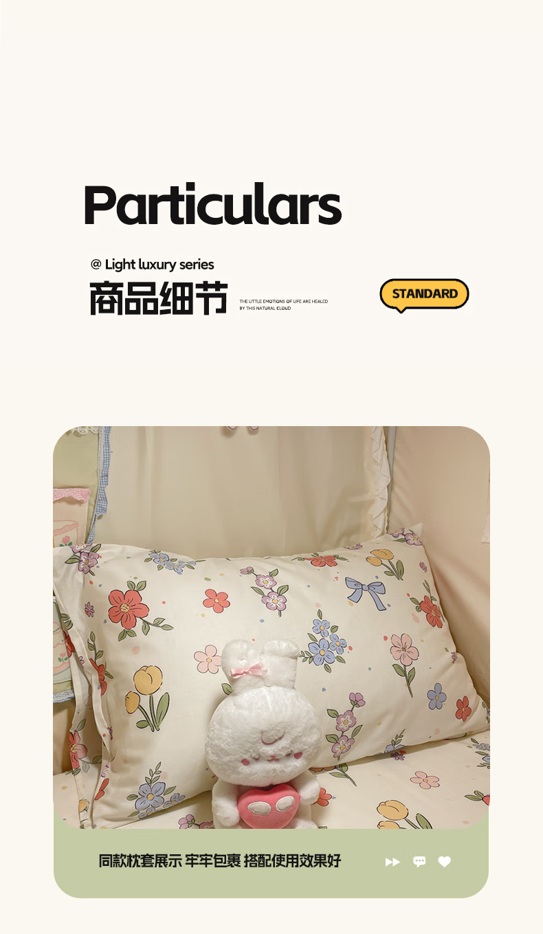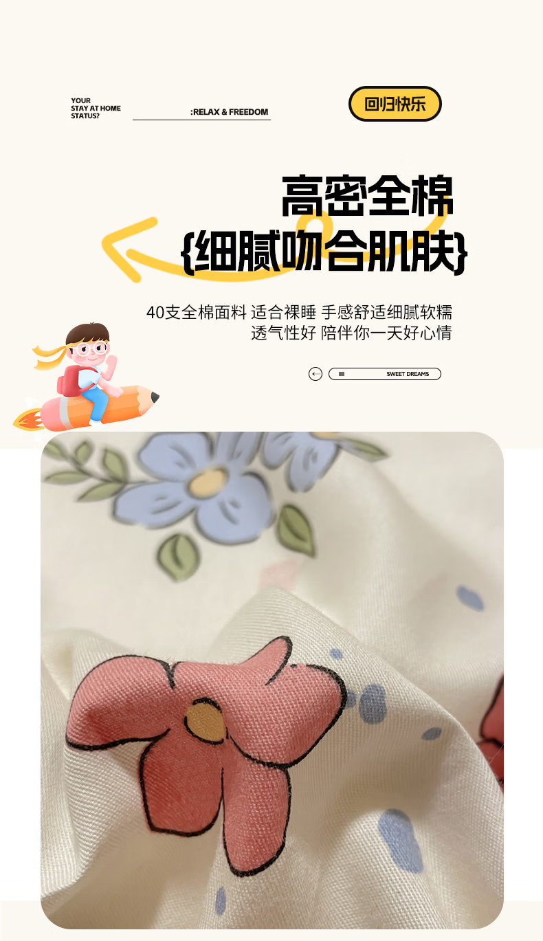 无印良品全棉床品四件套纯棉100%小清新花卉风单双人四季通用可裸睡三件套 苏屿【全棉面料 清新印花】 1.8m 床单款 被套200*230cm