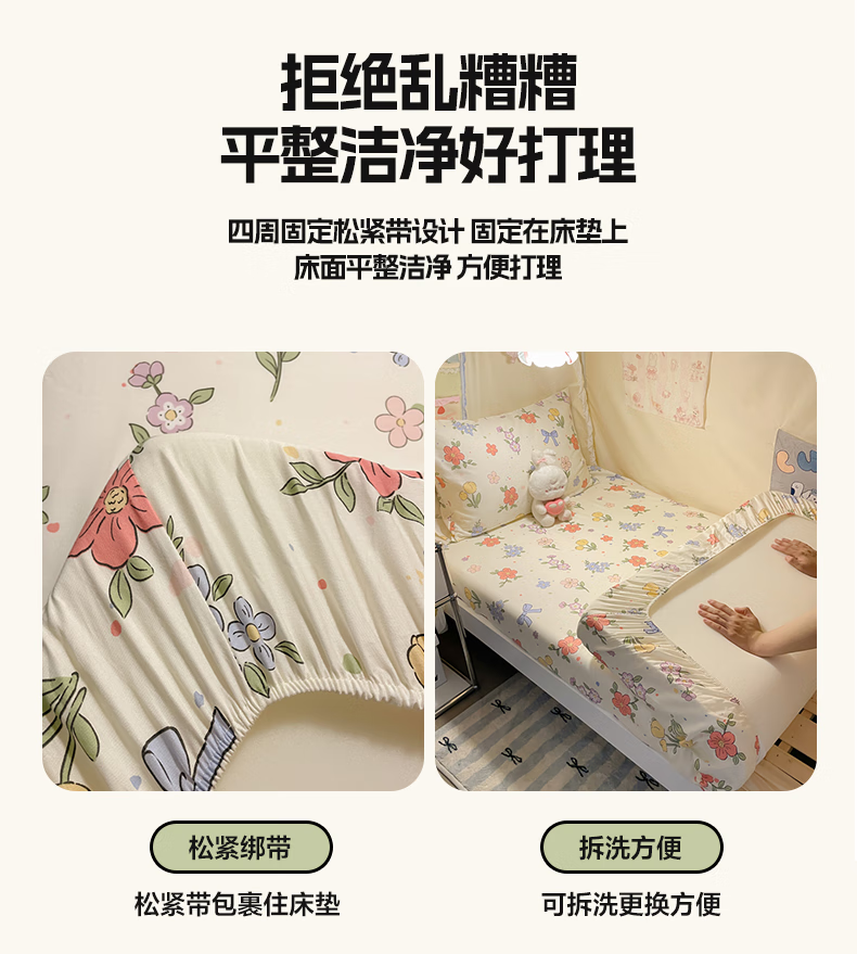 名创优品(MINISO)纯棉床笠1.8米x2米 全棉床笠罩床垫保护套被单枕套三件套 全棉-香槟 90cm*200cm 单床笠