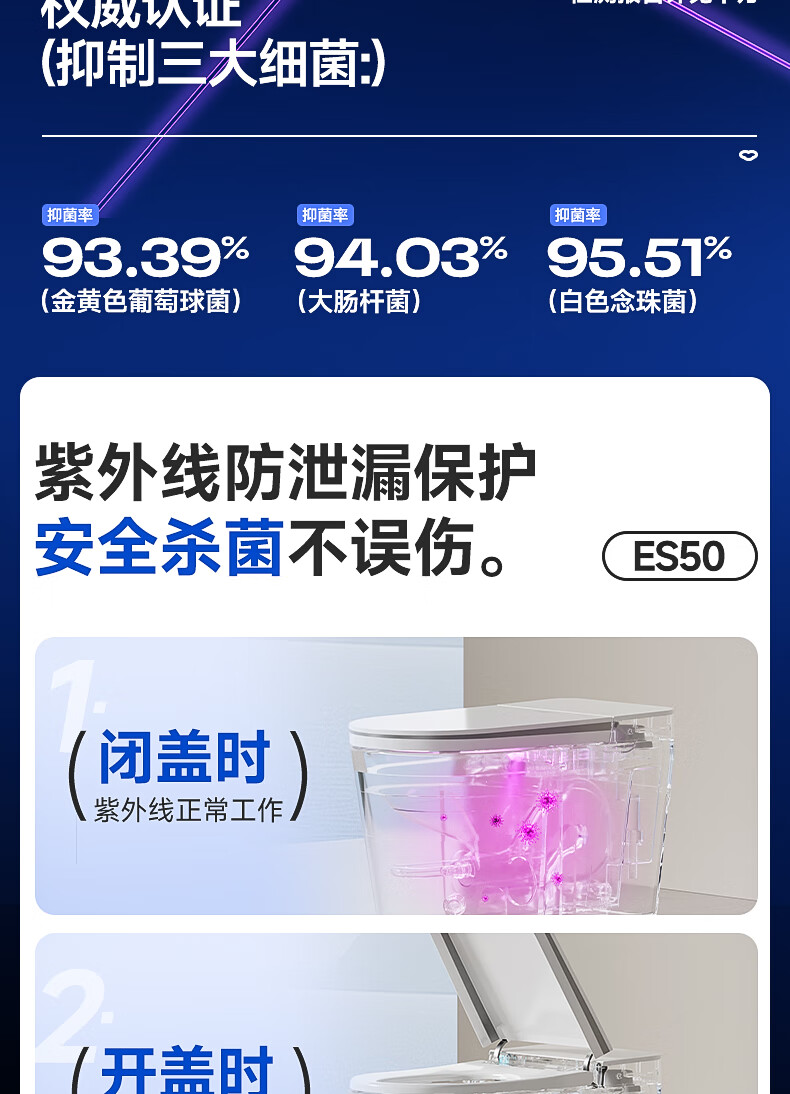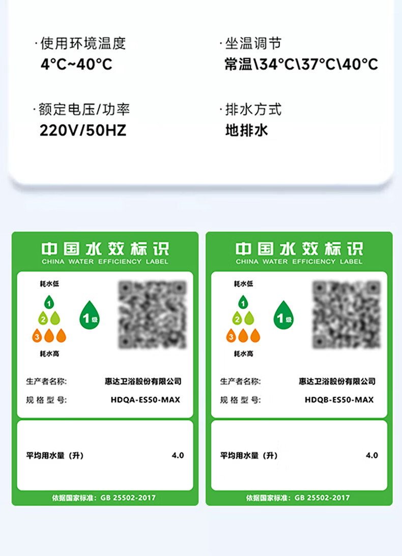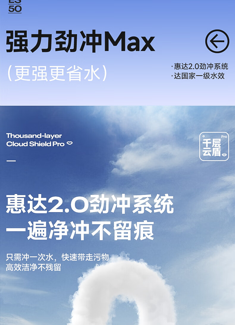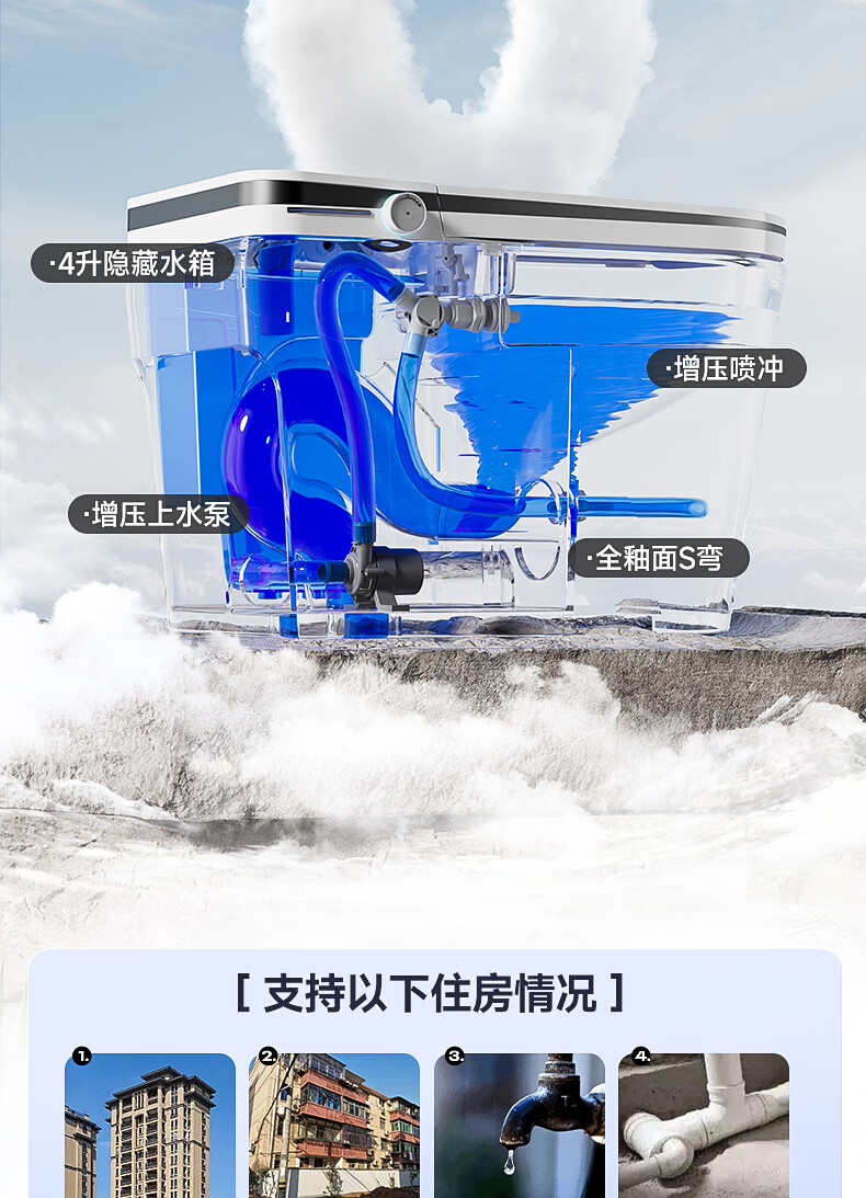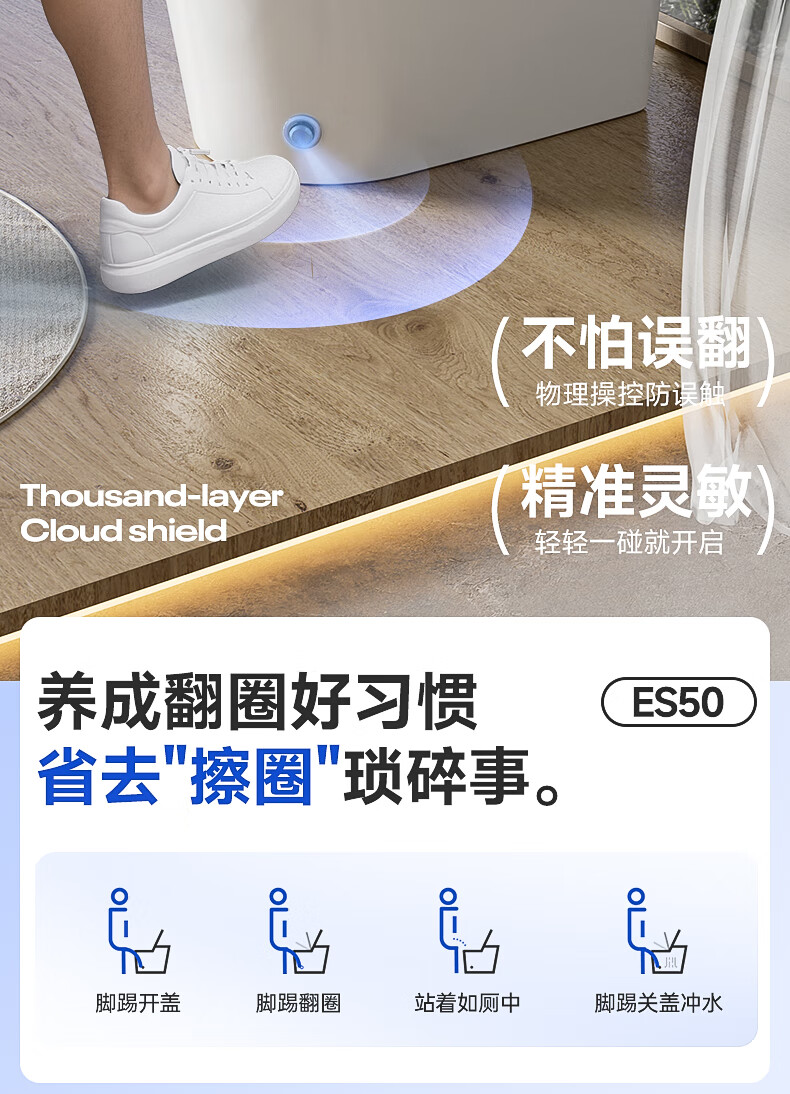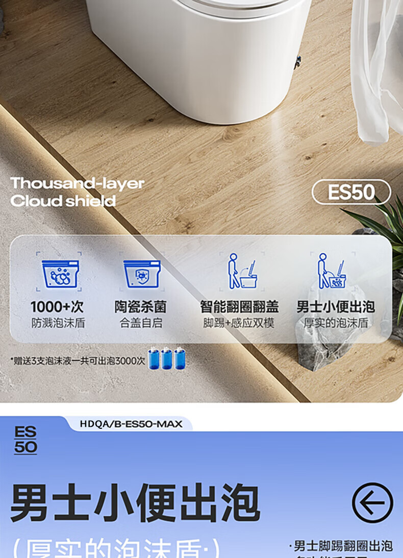 惠达(HUIDA)智能马桶无水压带水箱翻圈翻盖离座冲水ES50-MAX免费送装