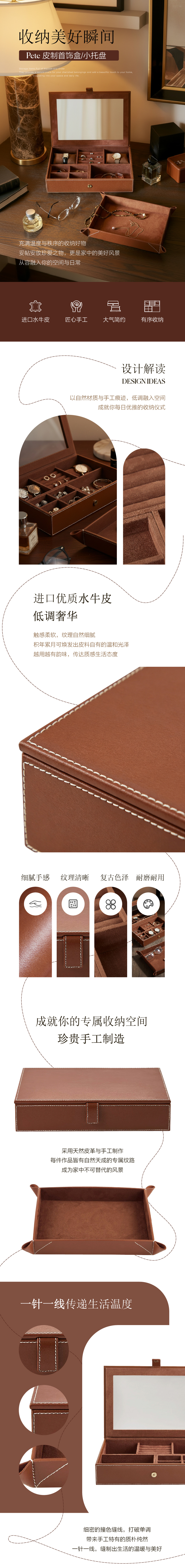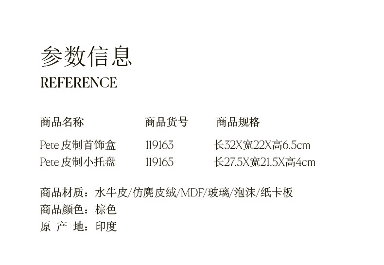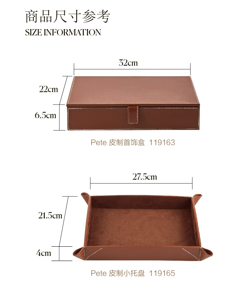 Harbor House美式家居皮制首饰盒匠心手工水牛皮收纳盒桌面收纳托盘 Pete 皮制小托盘 27.5*21.5*4cm -119165 棕色 1个