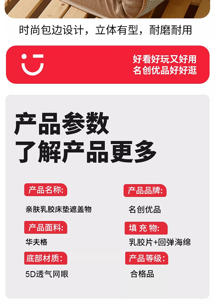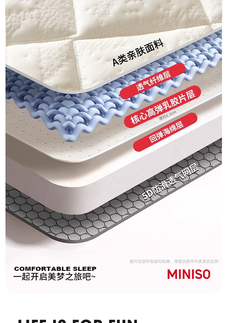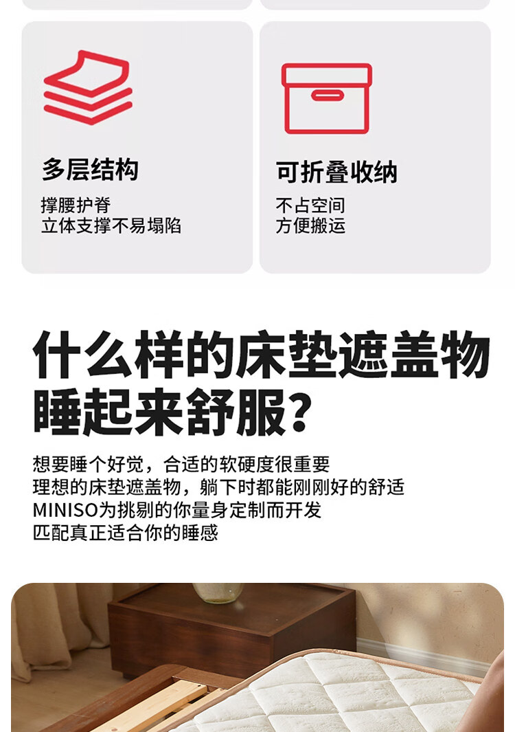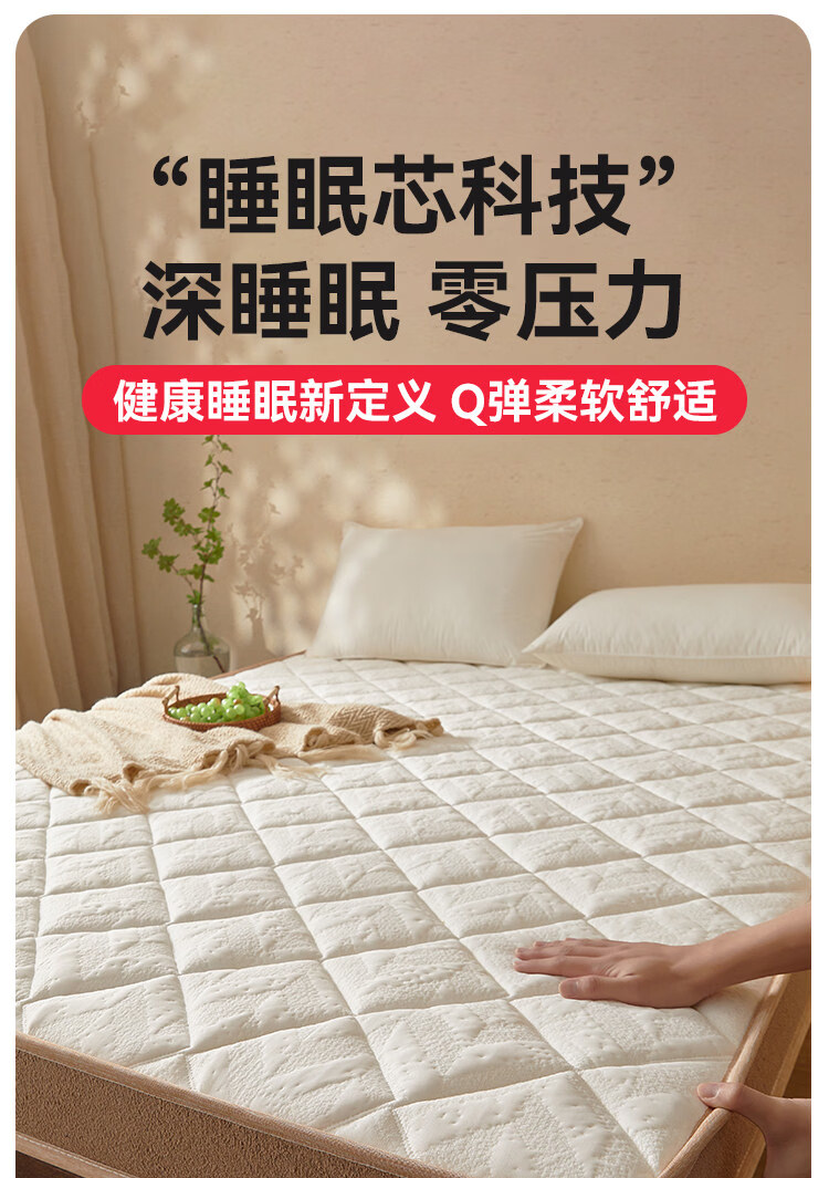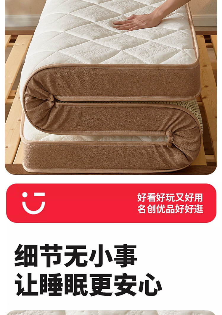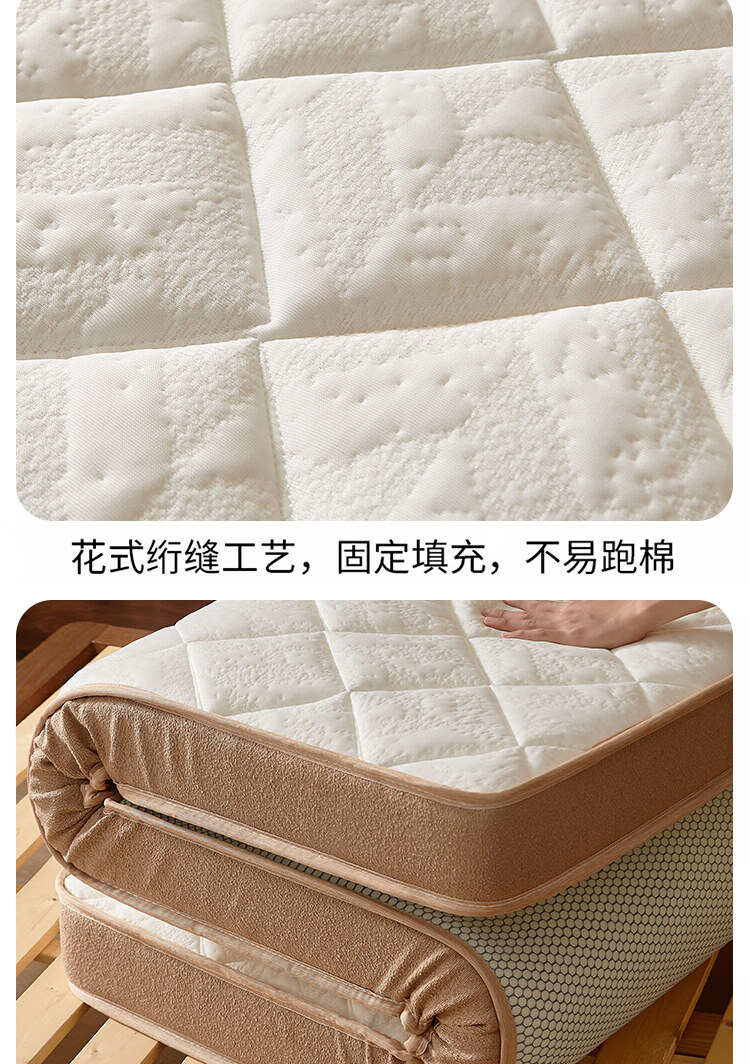 名创优品(MINISO)乳胶床垫遮盖物1.5x2米 家用软垫海绵垫宿舍单双人榻榻米垫床褥垫 【厚约9cm】-立体-咖 双人床:180*200cm