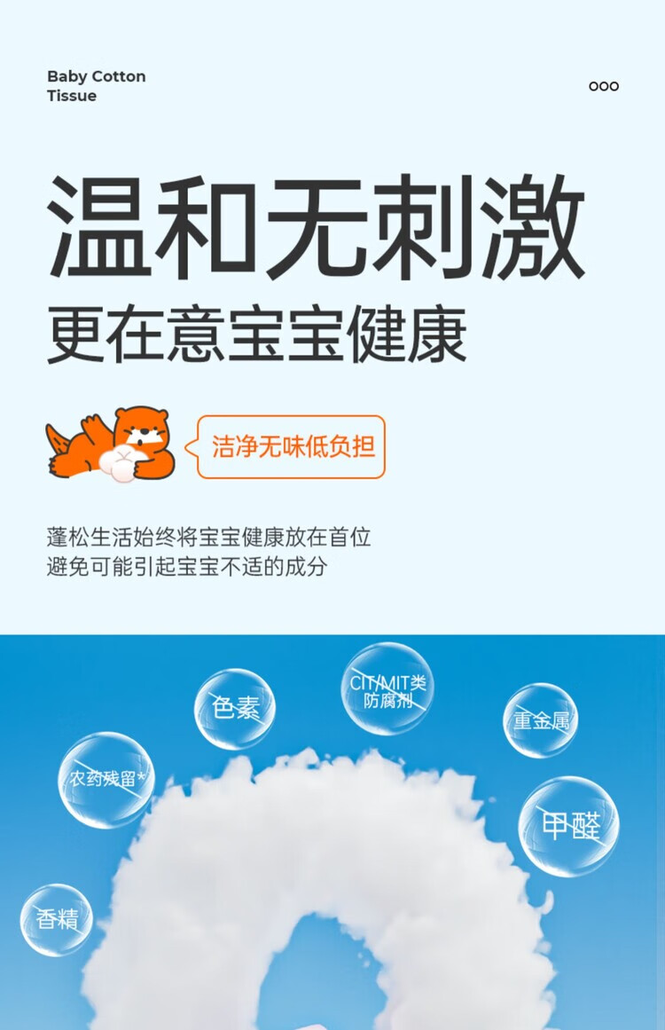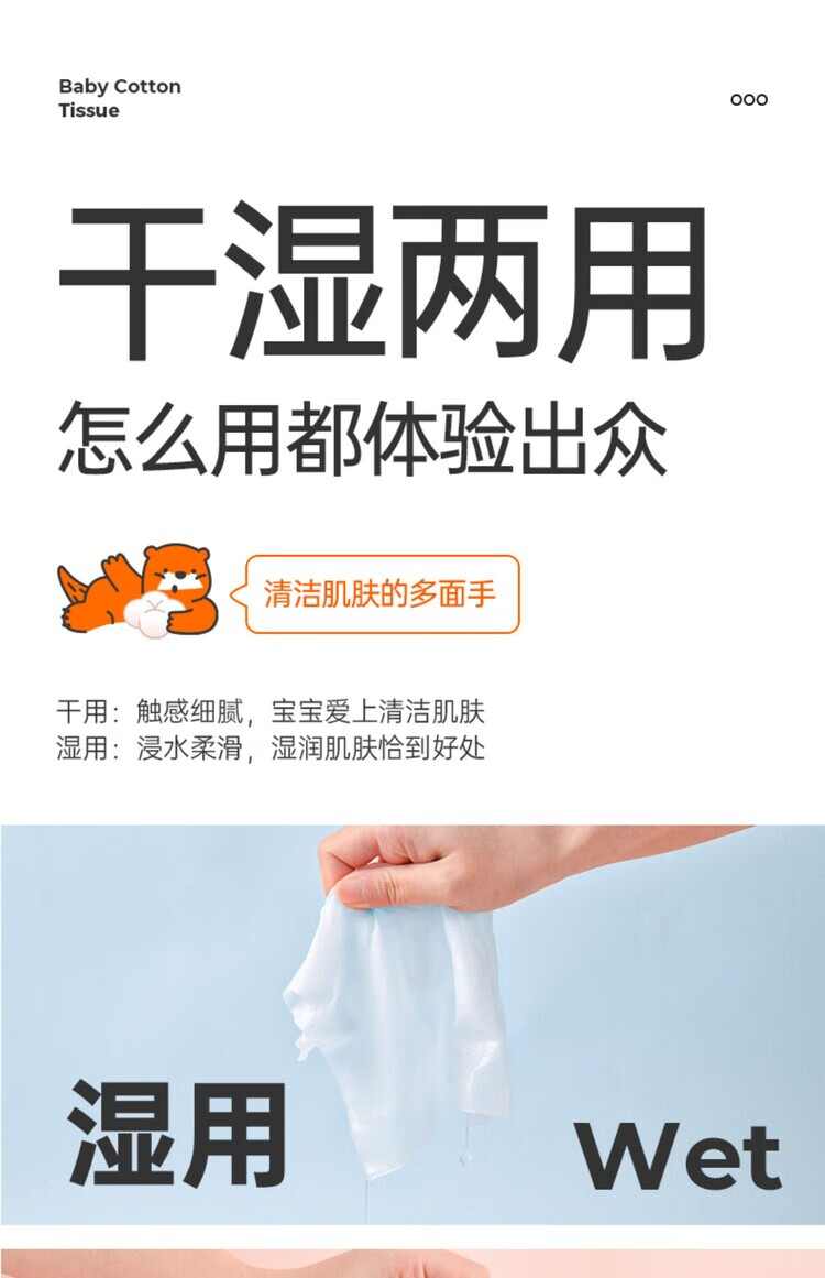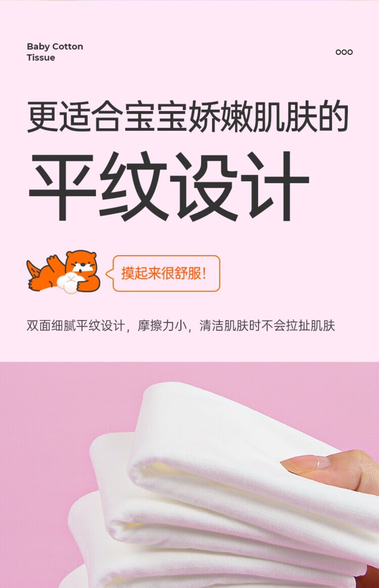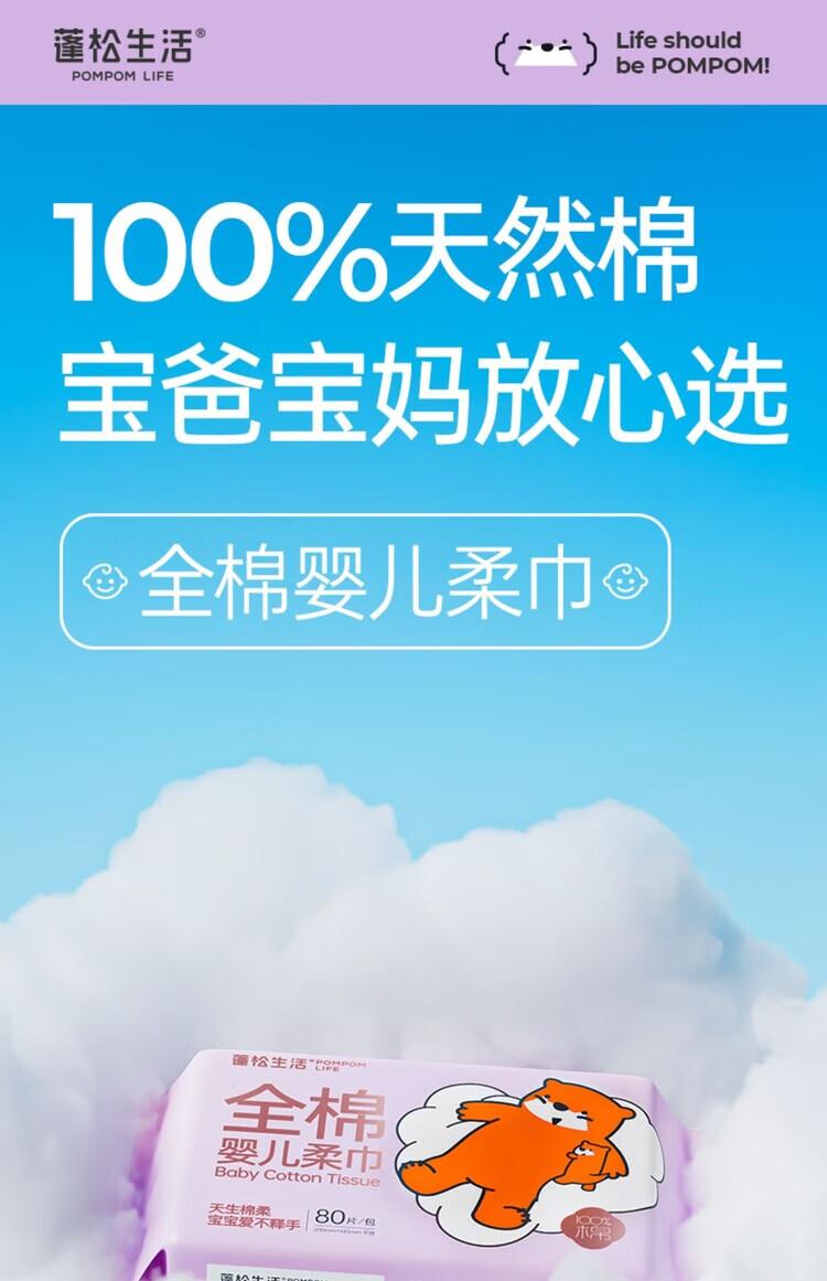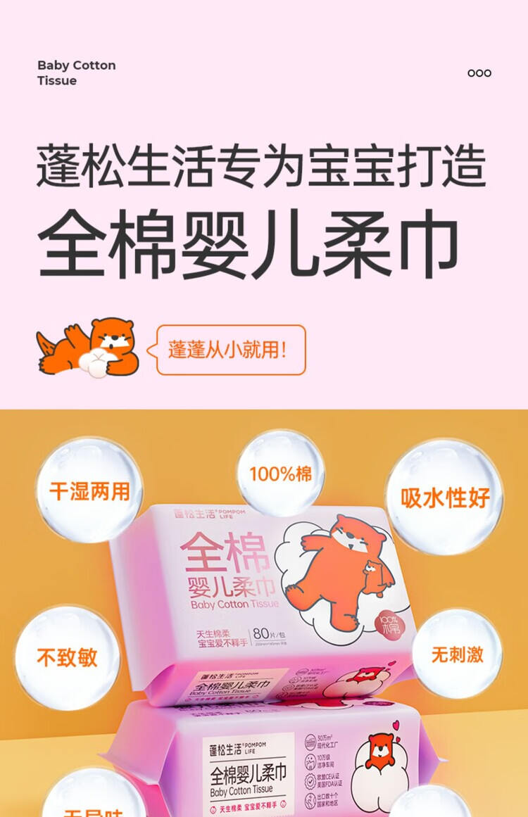 蓬松生活100%全棉棉柔巾干湿两用新生儿婴儿专用柔巾洗脸巾纯棉 80抽*5包