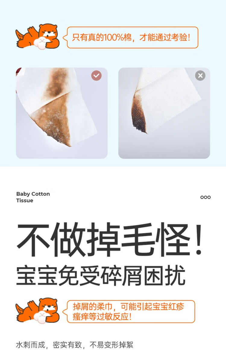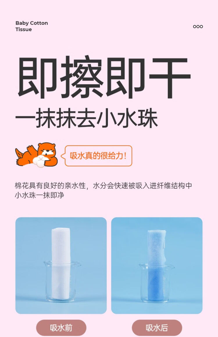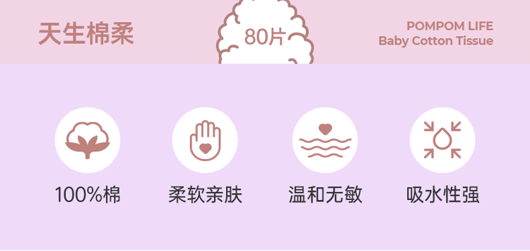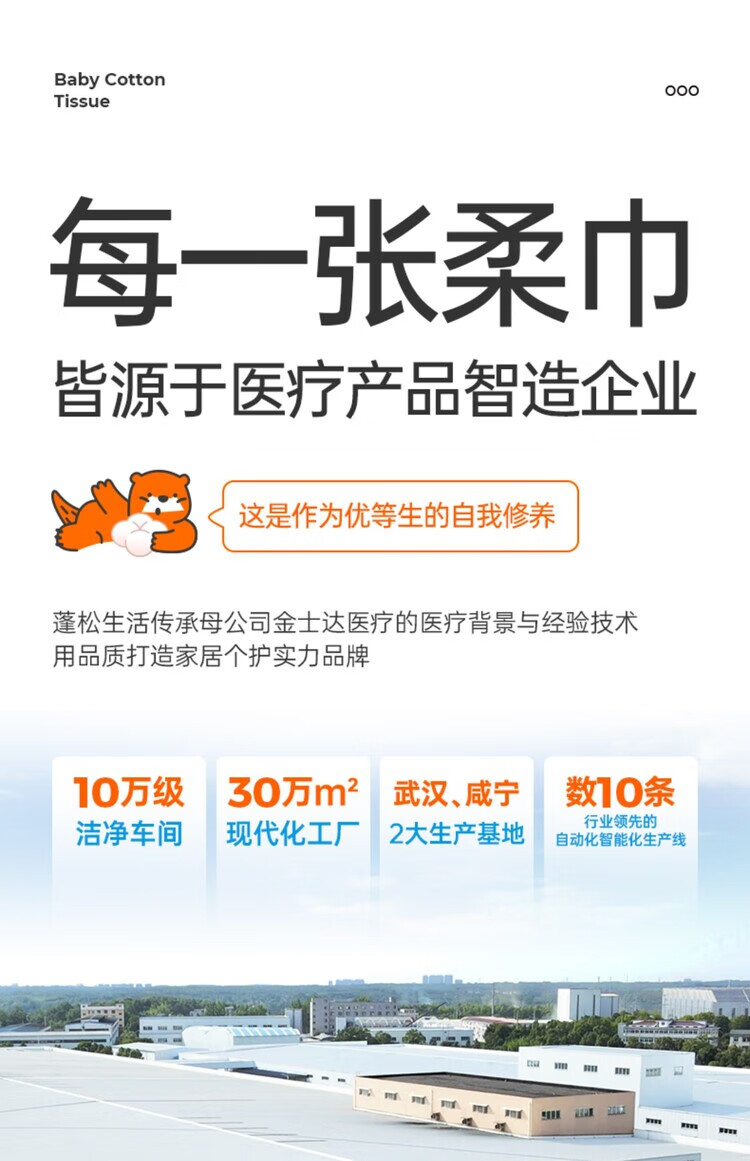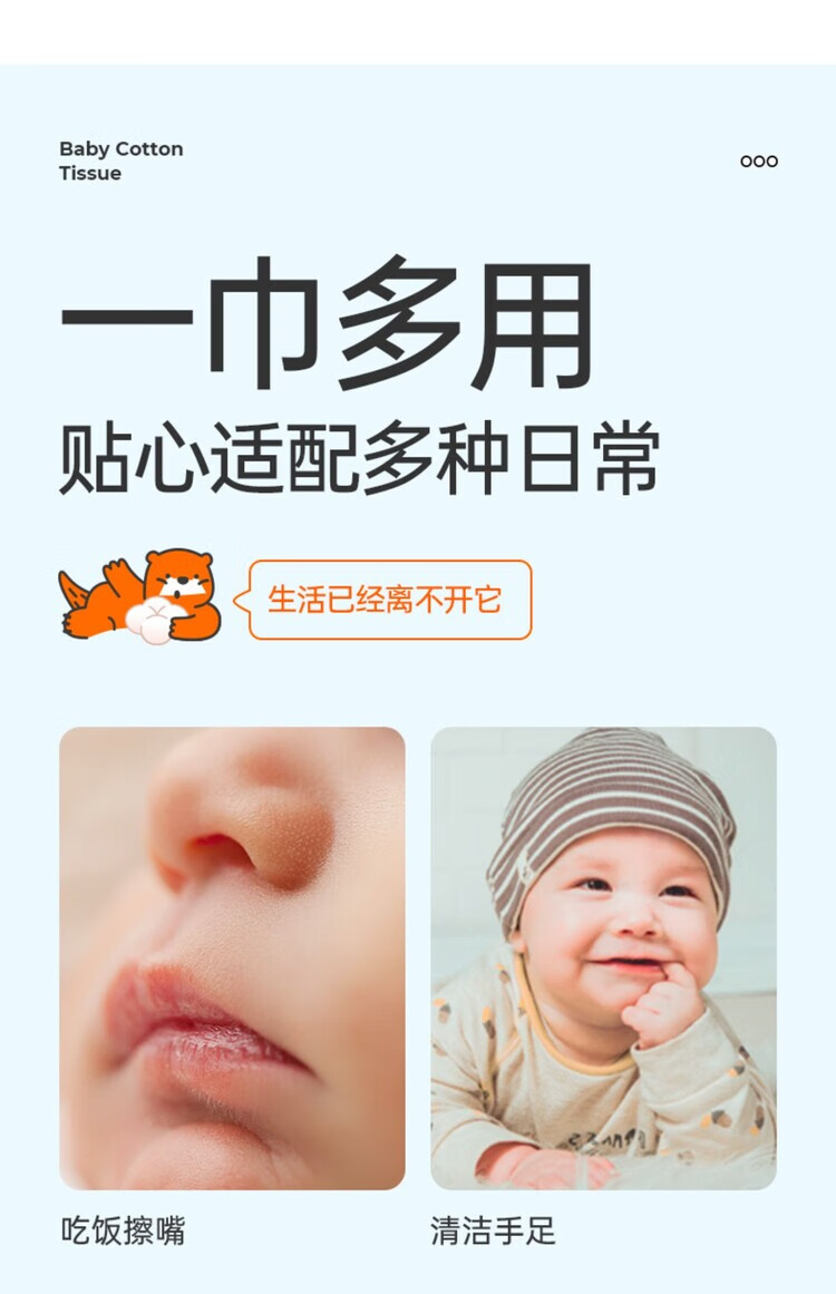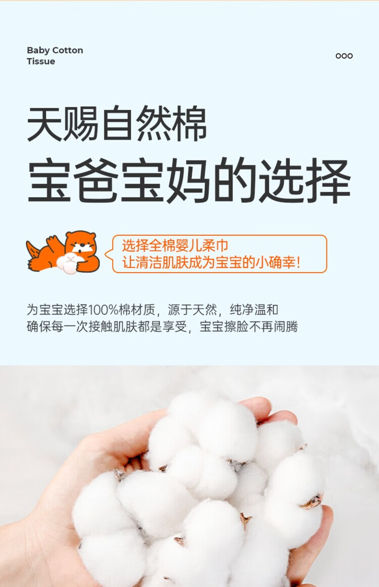 蓬松生活100%全棉棉柔巾干湿两用新生儿婴儿专用柔巾洗脸巾纯棉 80抽*5包