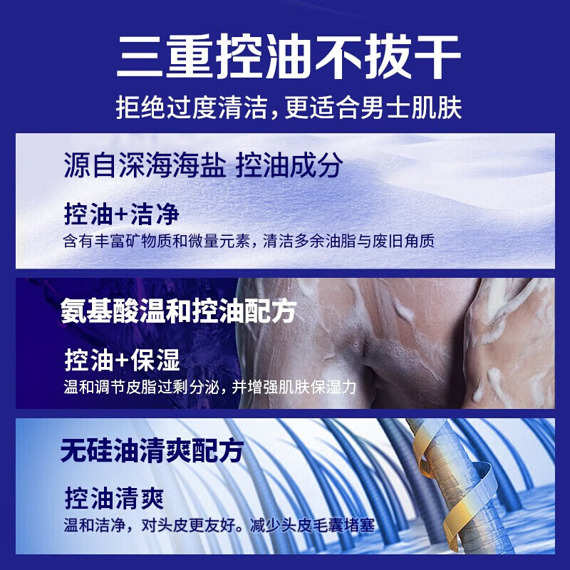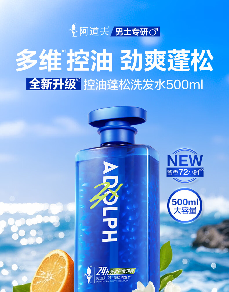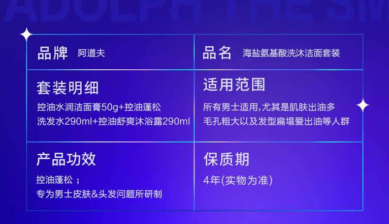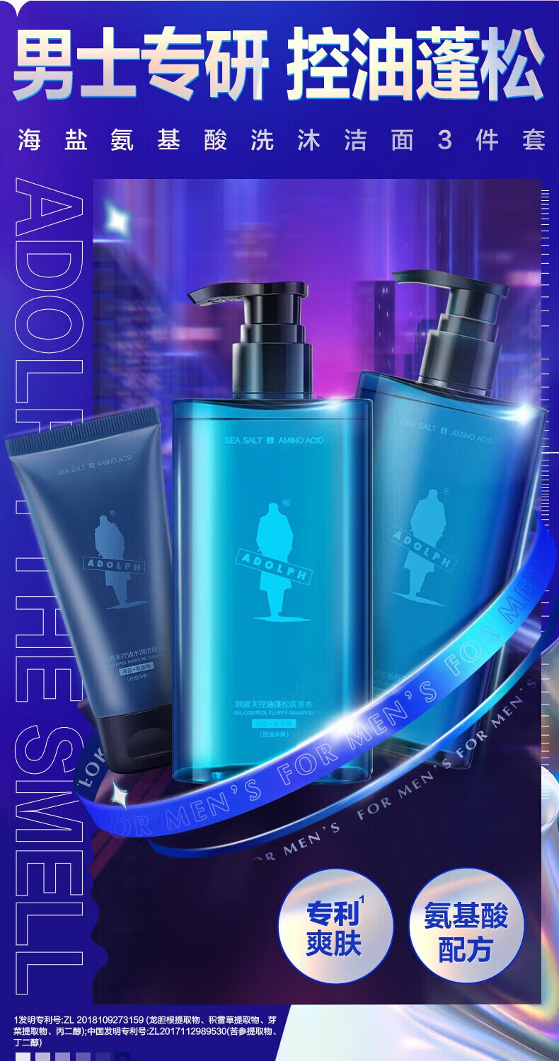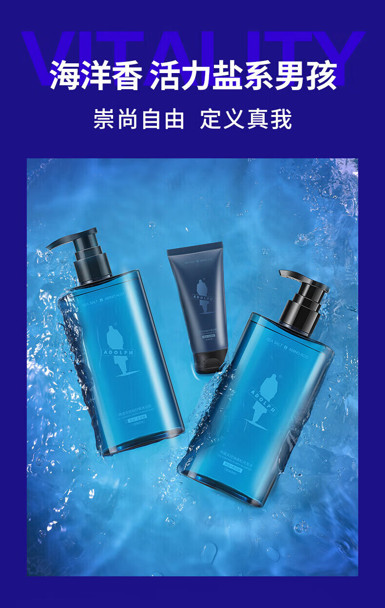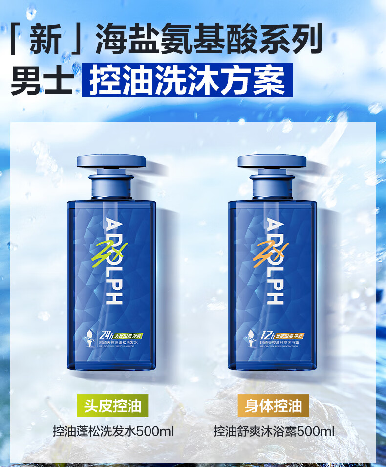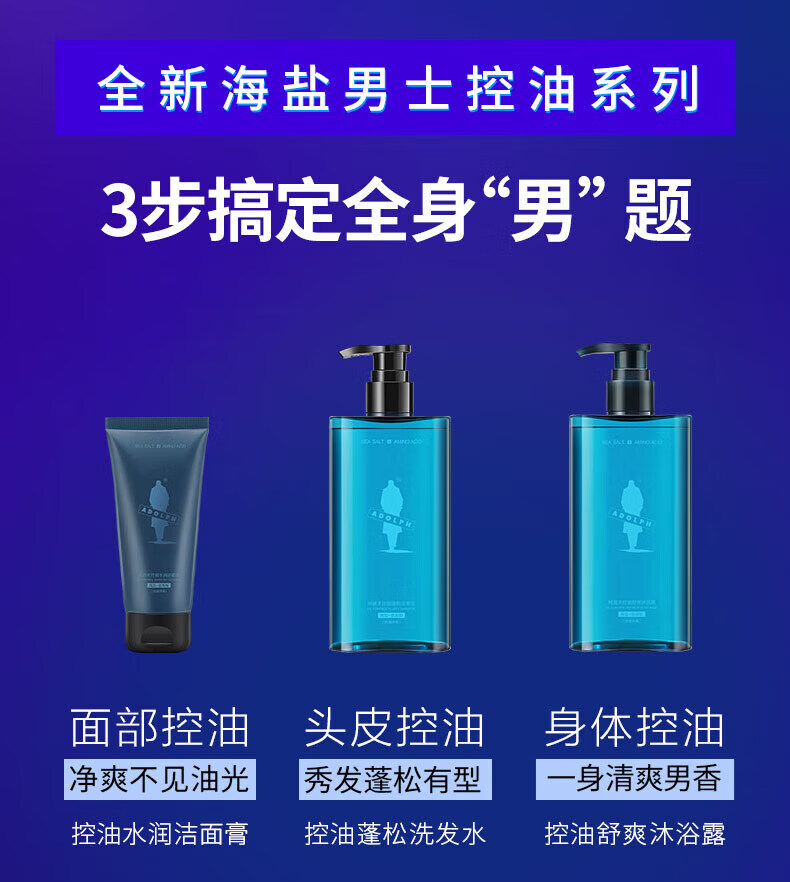 阿道夫男士海盐洗发水沐浴露套装 氨基酸香氛控油清爽蓬松洗头膏 海盐控油洗沐套装共680ml 男士专享