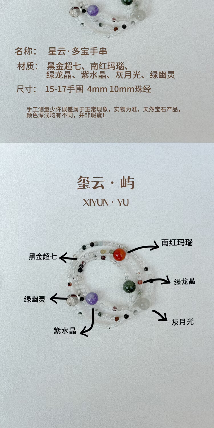 玺云屿 XIYUNYU星云多宝水晶手串清新原创手链五行定制手串 默认