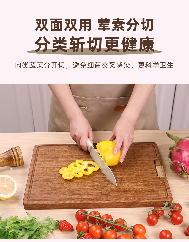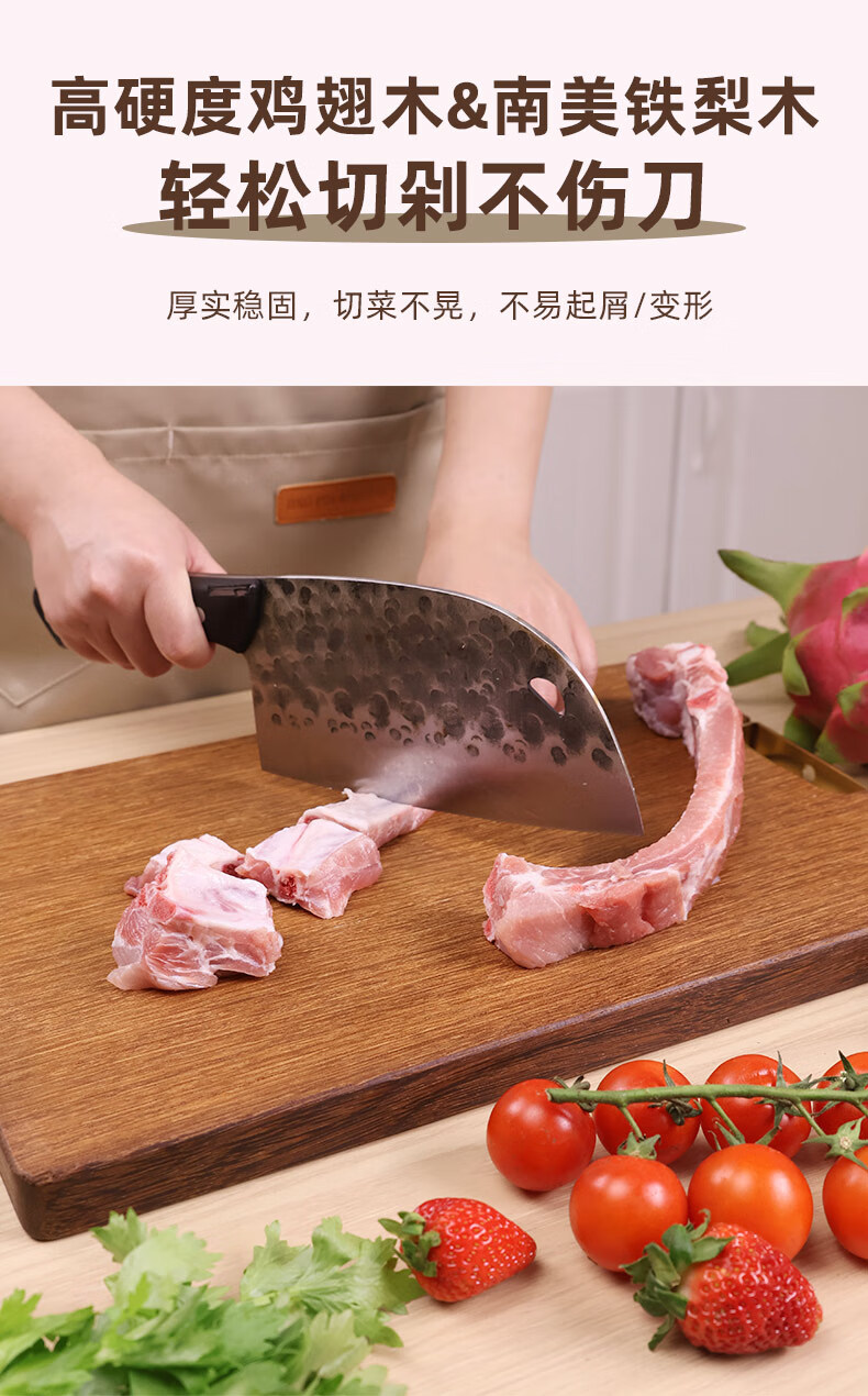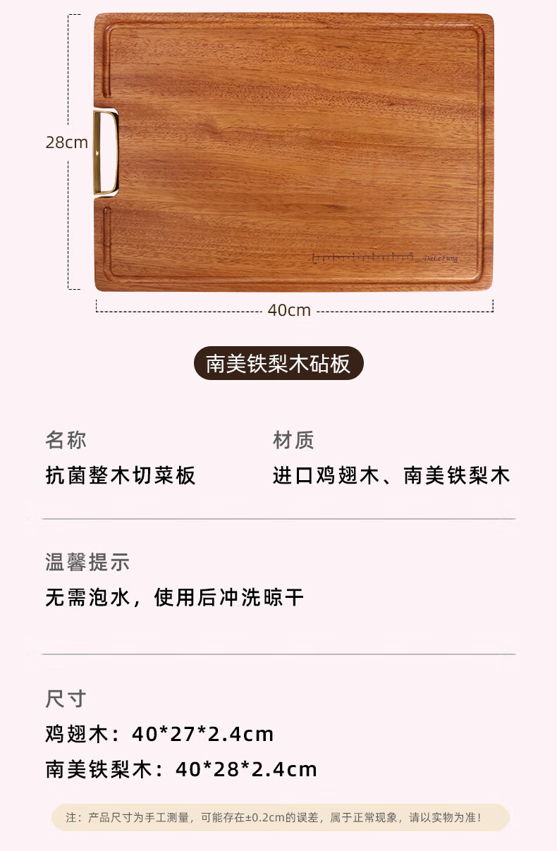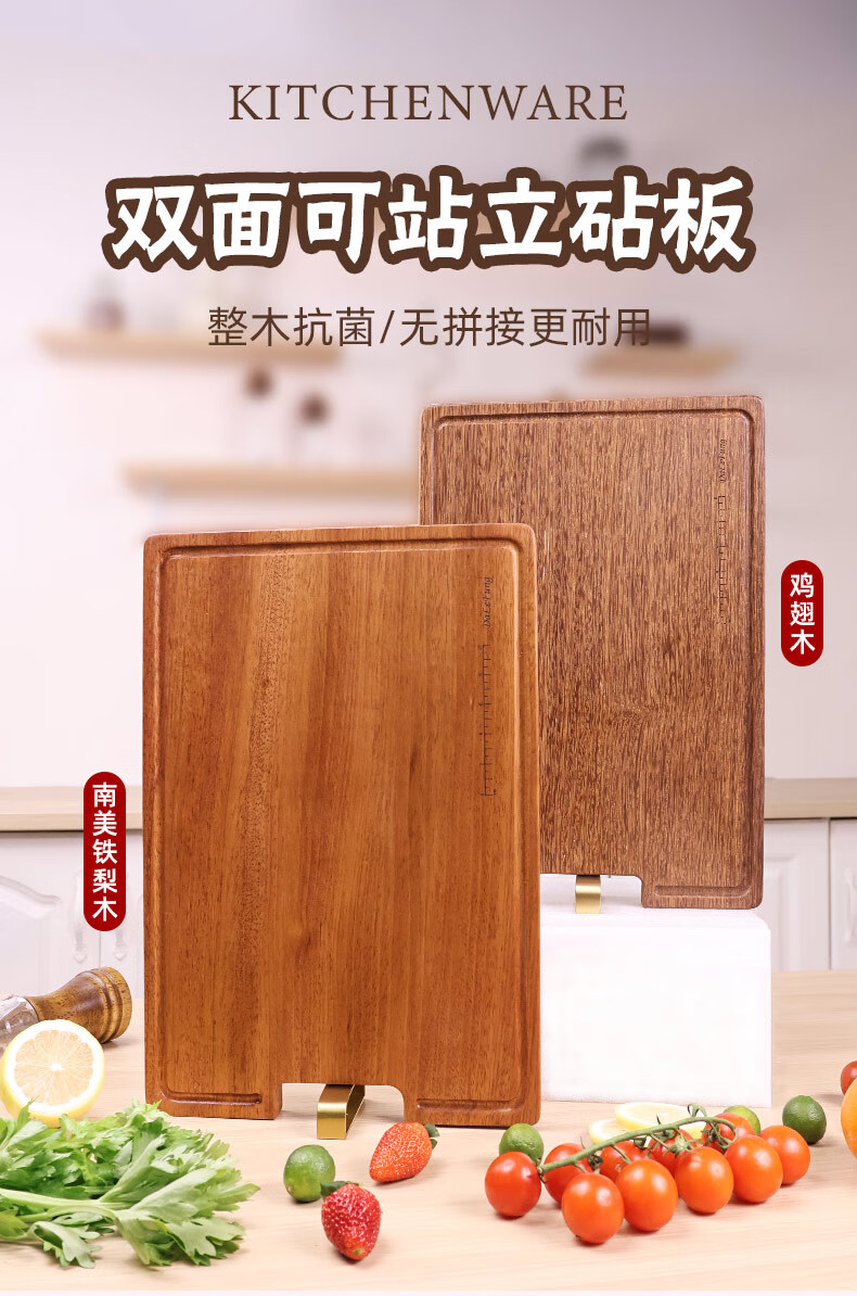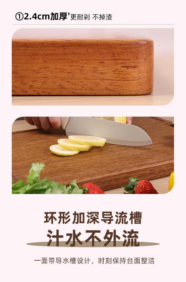 达乐丰家用整木砧板抗菌切菜板双面用菜板案板木质面板刀板 南美铁梨木抗菌导水槽菜板