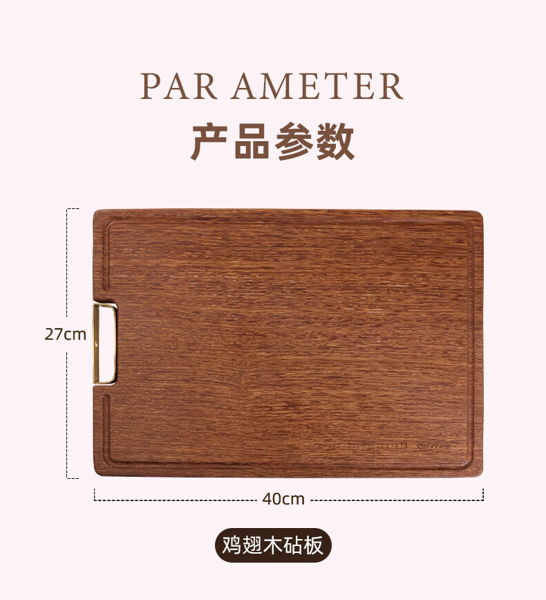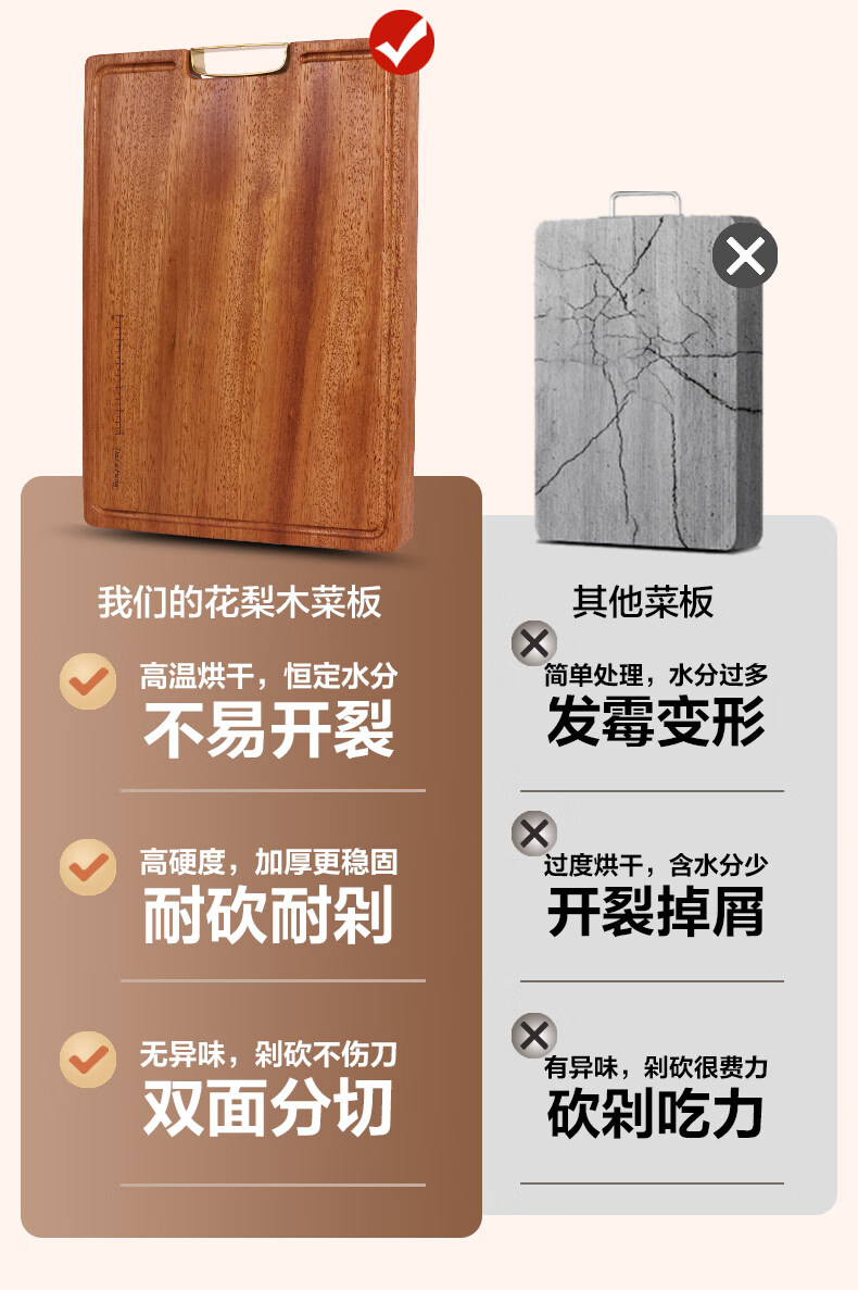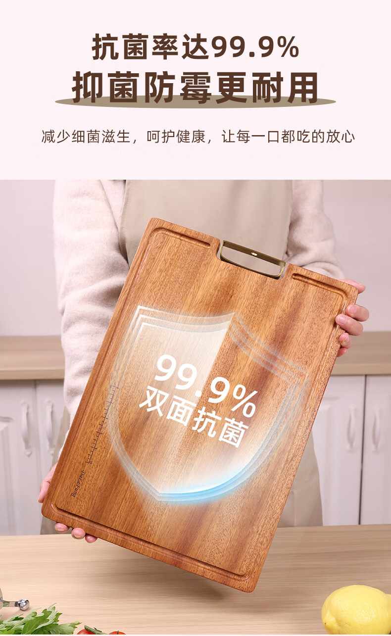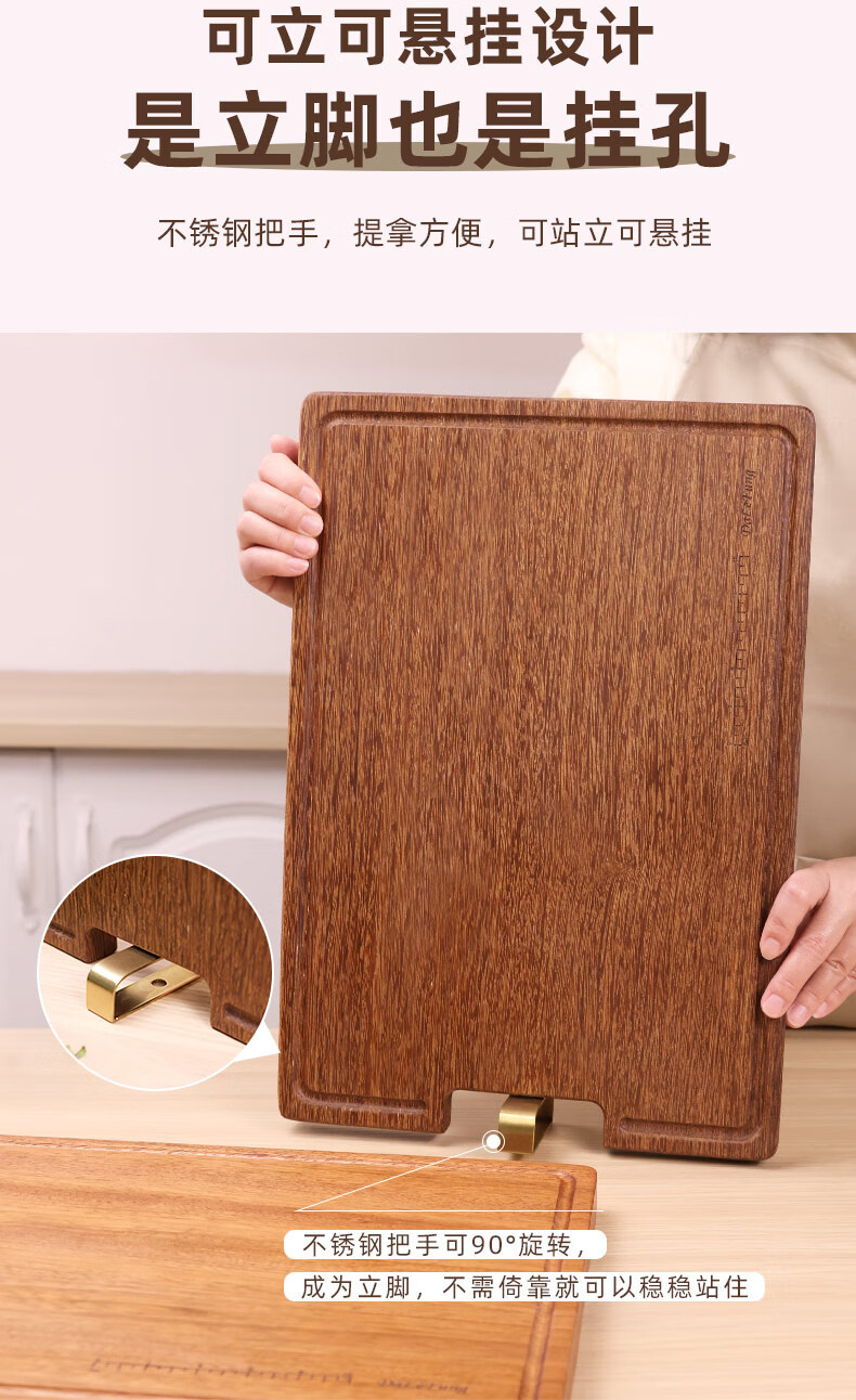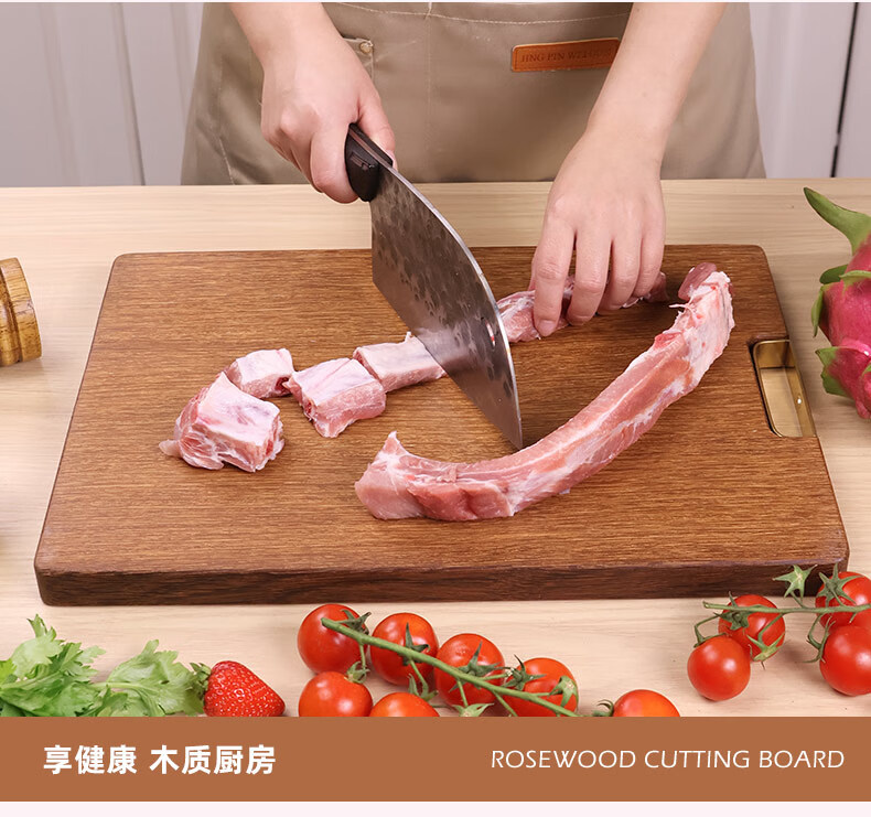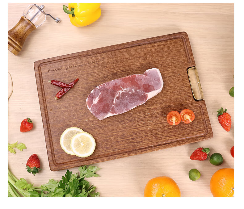 达乐丰家用整木砧板抗菌切菜板双面用菜板案板木质面板刀板 南美铁梨木抗菌导水槽菜板
