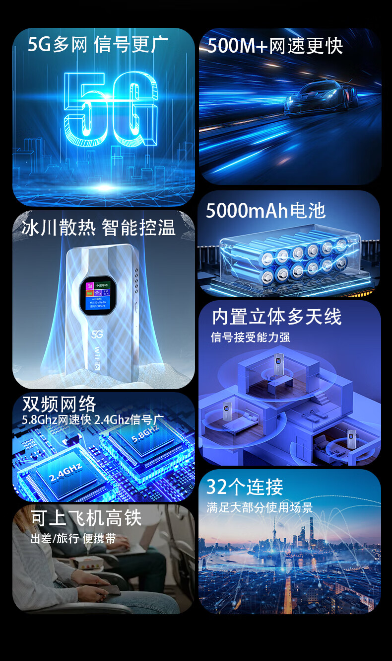 智创当下5g随身WiFi6移动mifi便携式cpe路由器千兆宽带热点网络无线网卡全国通用 【轻灵银】千兆双频wifi6极速启航