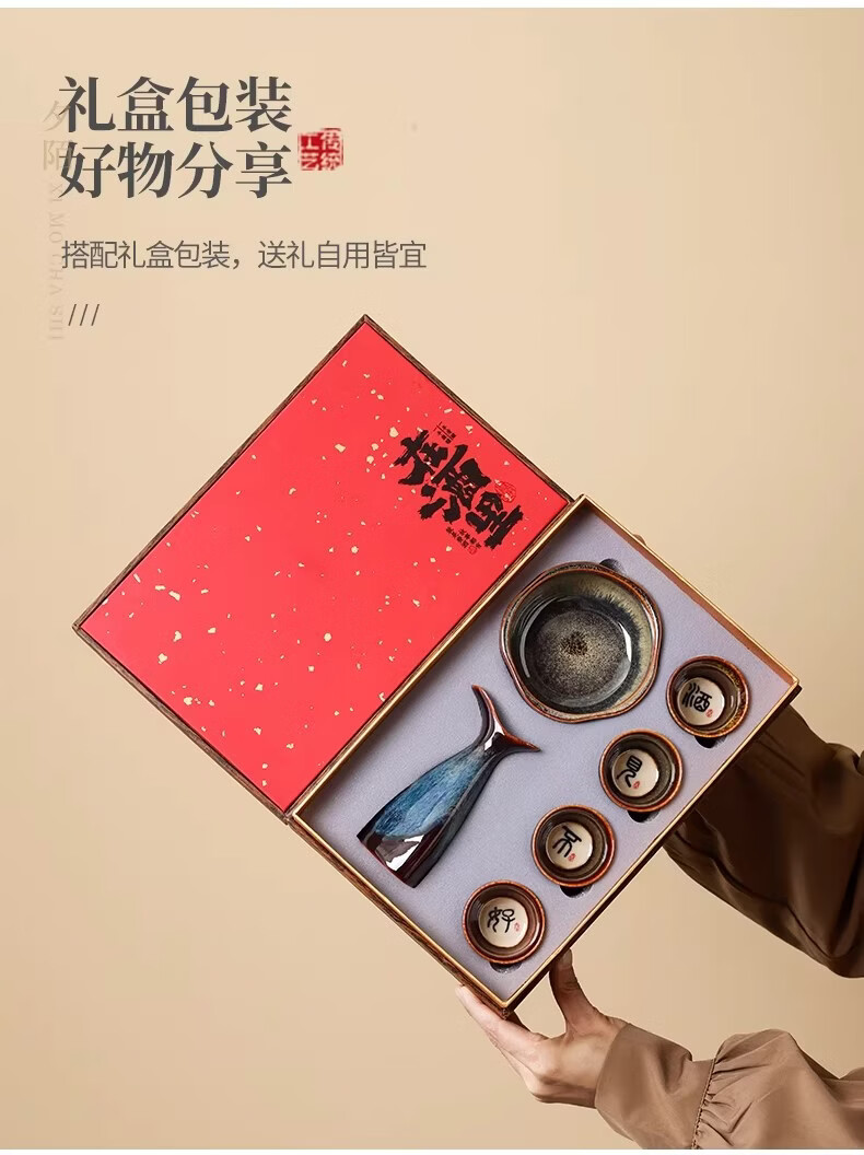 BOSSY文创国潮酒具套装白酒杯分酒器送礼送长辈领导客户伴手礼新年礼物 【好酒不见】文创酒具6件套+礼盒