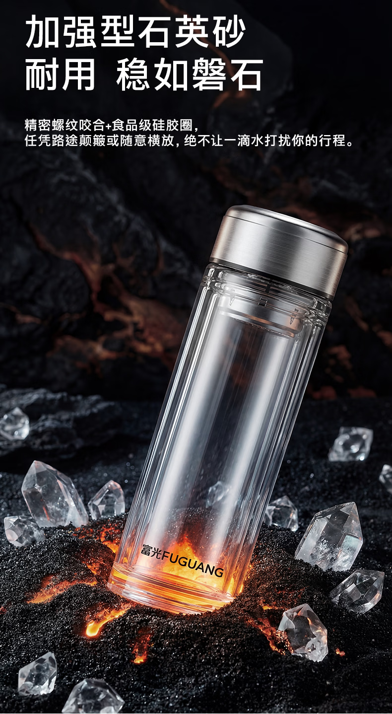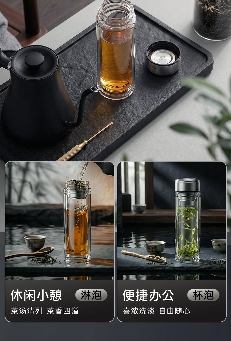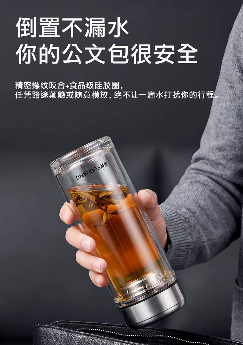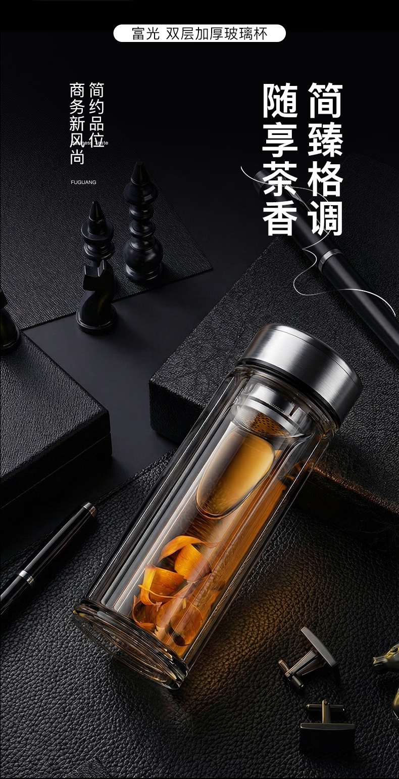 富光玻璃杯双层高硼硅水杯车载便携家用隔热玻璃杯茶水分离泡茶杯 双层加厚便携防烫 330ML