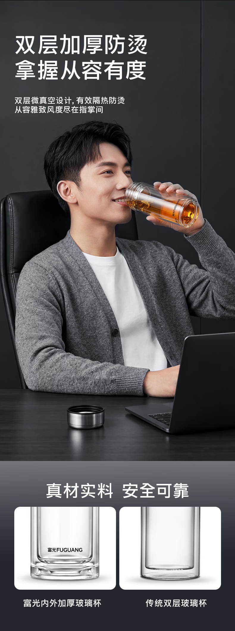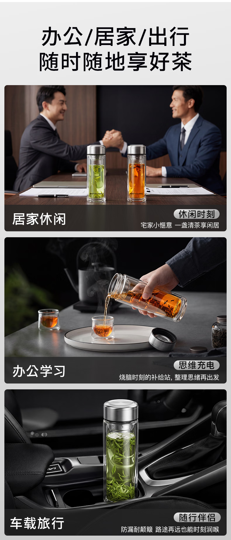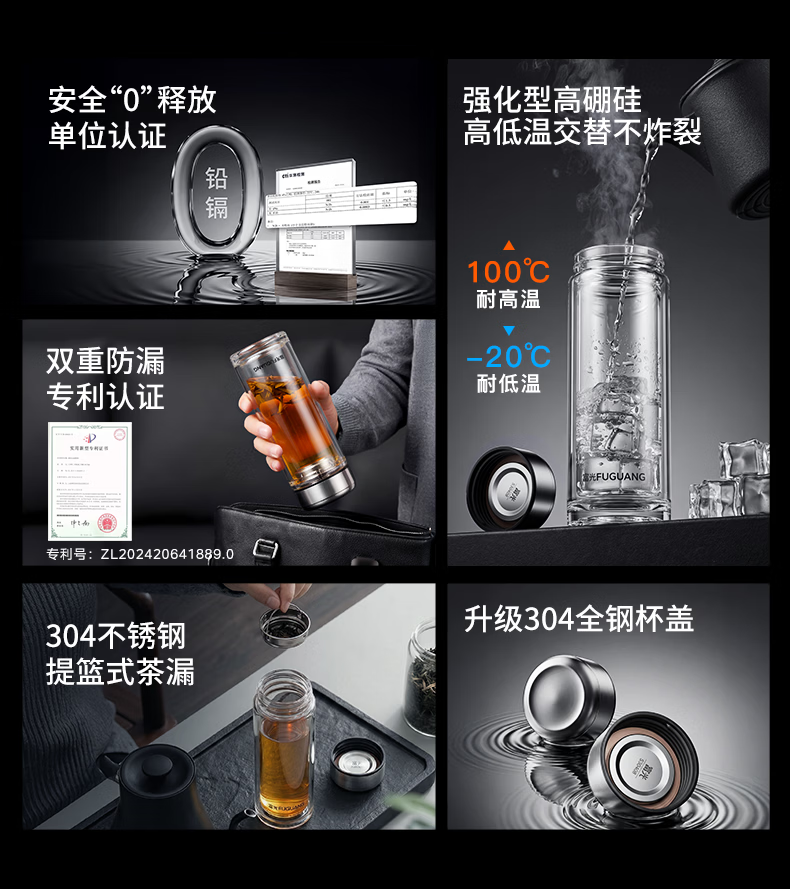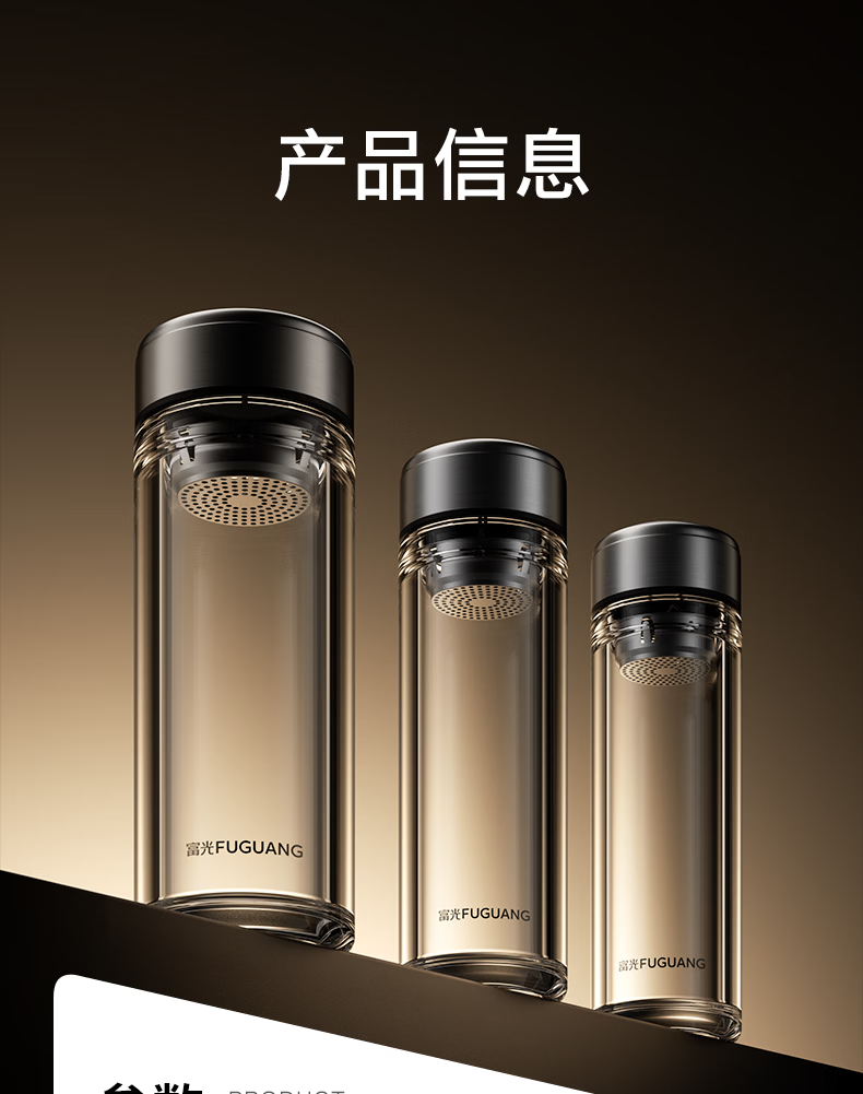 富光玻璃杯双层高硼硅水杯车载便携家用隔热玻璃杯茶水分离泡茶杯 双层加厚便携防烫 330ML