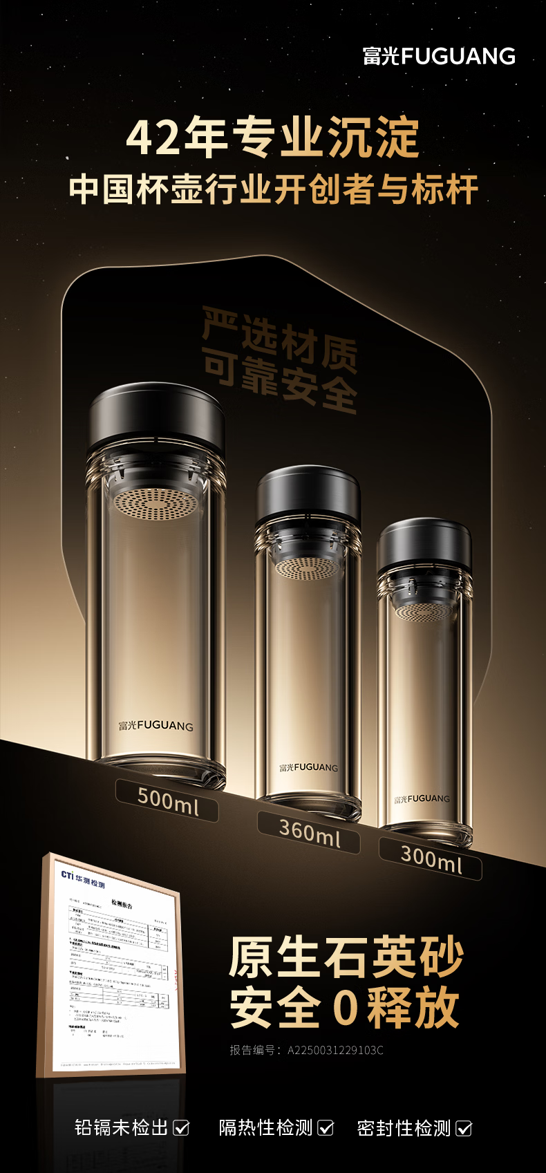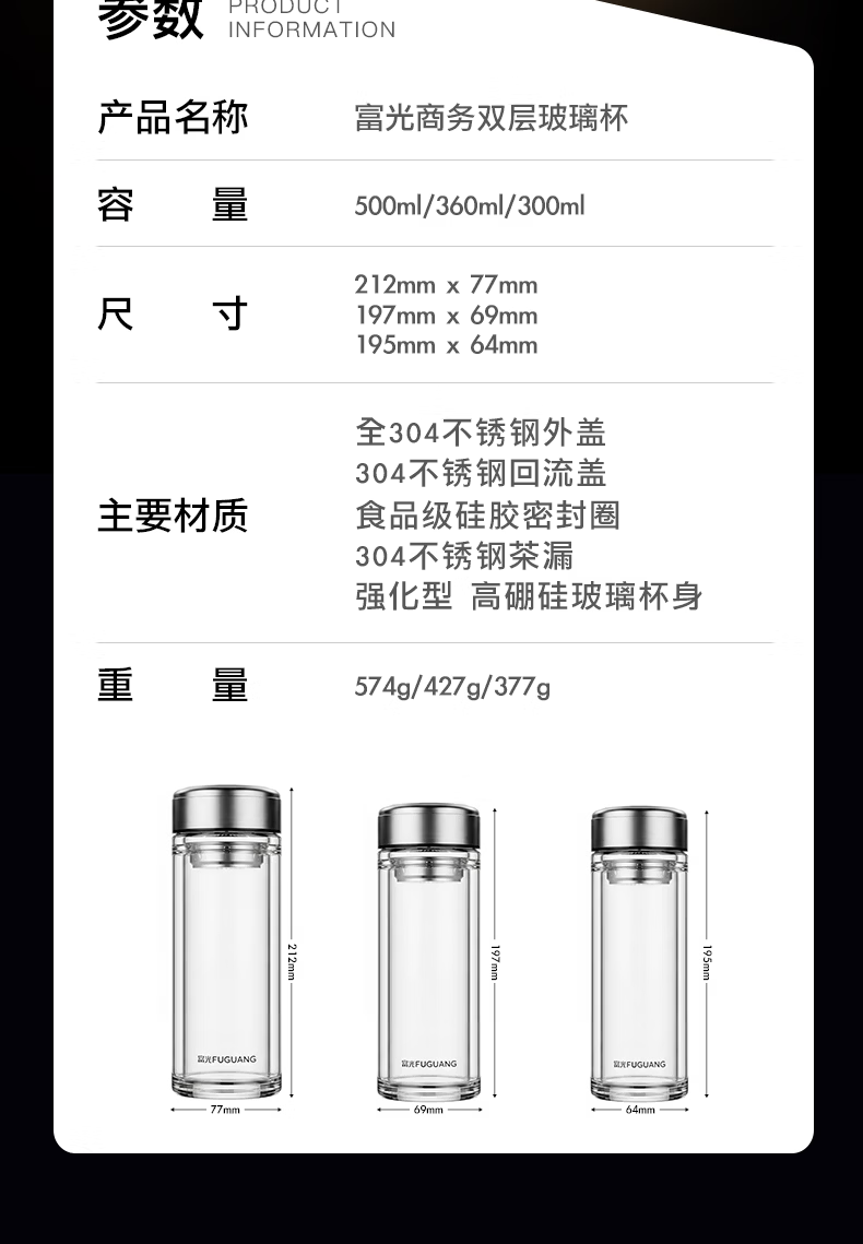 富光玻璃杯双层高硼硅家用隔热水杯车载便携玻璃杯茶水分离泡茶杯 双层加厚隔热防烫 300ML