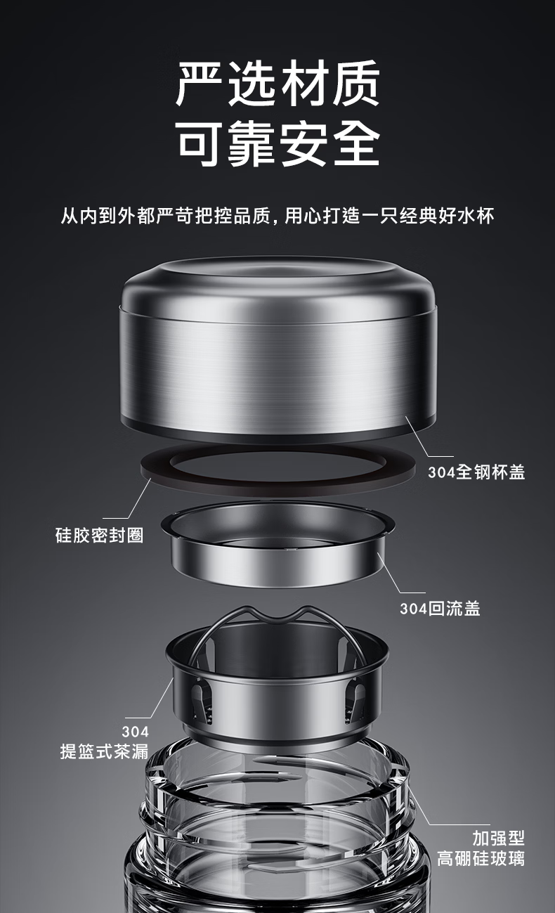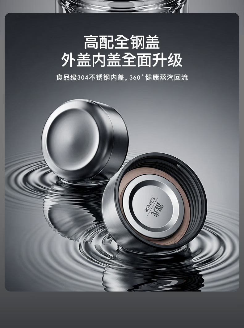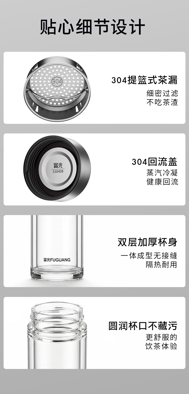 富光保温杯316L不锈钢水杯 商务车载茶水分离泡茶杯 直身大容量水杯 500ML 【旋盖 316L内胆】 琉光银