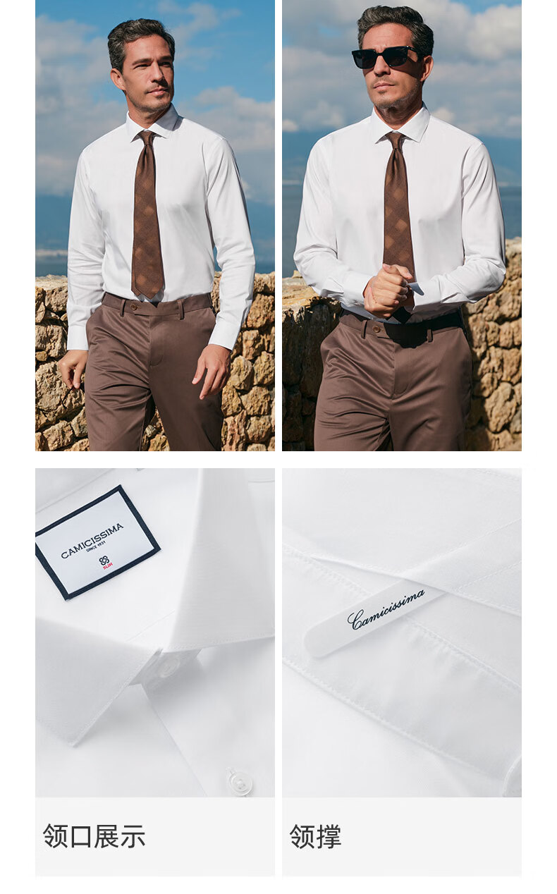 恺米切(CAMICISSIMA)【意大利品牌】男士免烫长袖衬衫6色高级感商务休闲春秋款衬衣 白色主推(修身)IBC5PC02MSD11 41