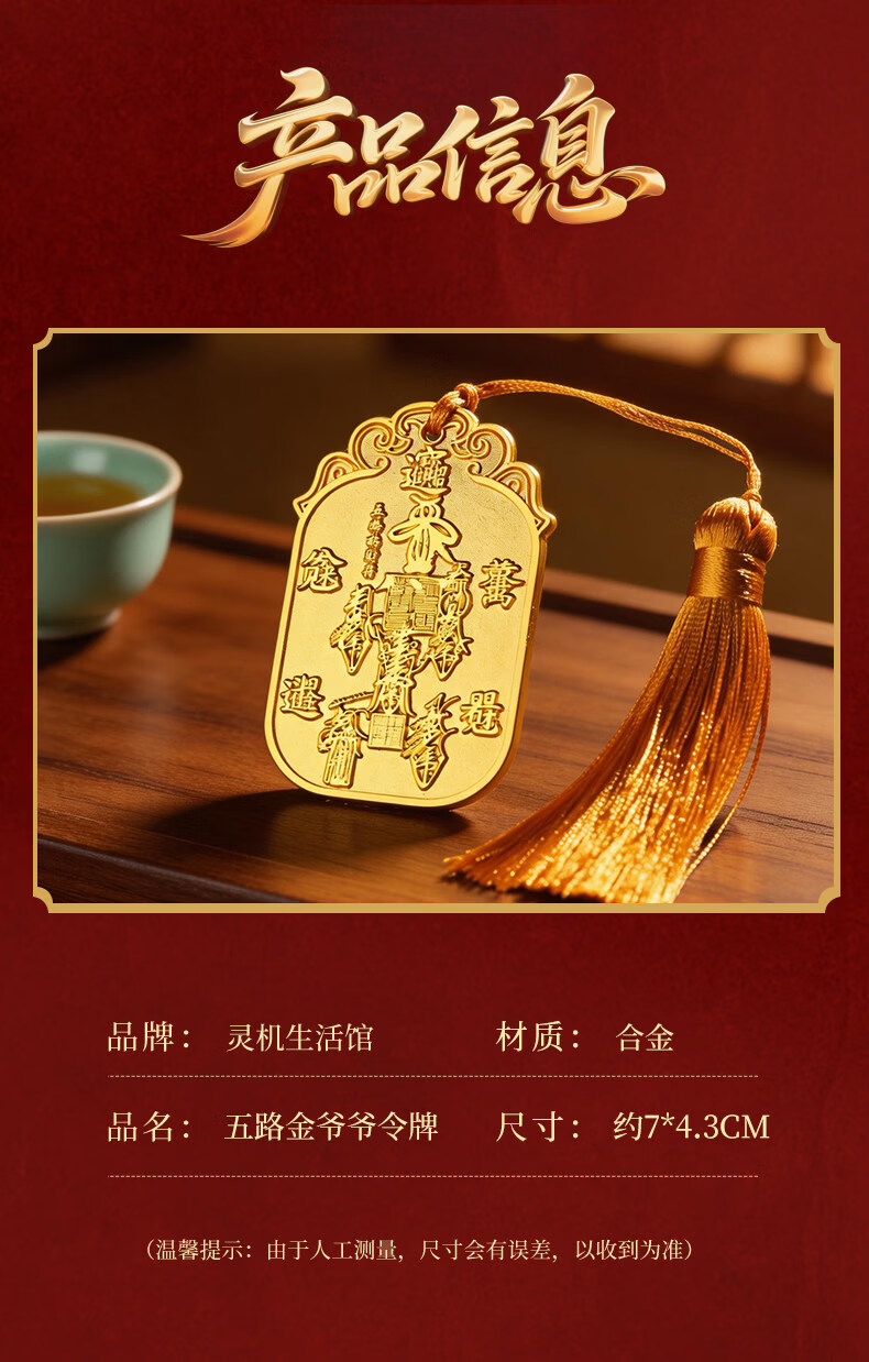 灵机生活馆麦玲玲代言2026马年五路财神令牌挂饰家居挂件办公室幸运物车挂 【招财】五路财神财库守护令牌