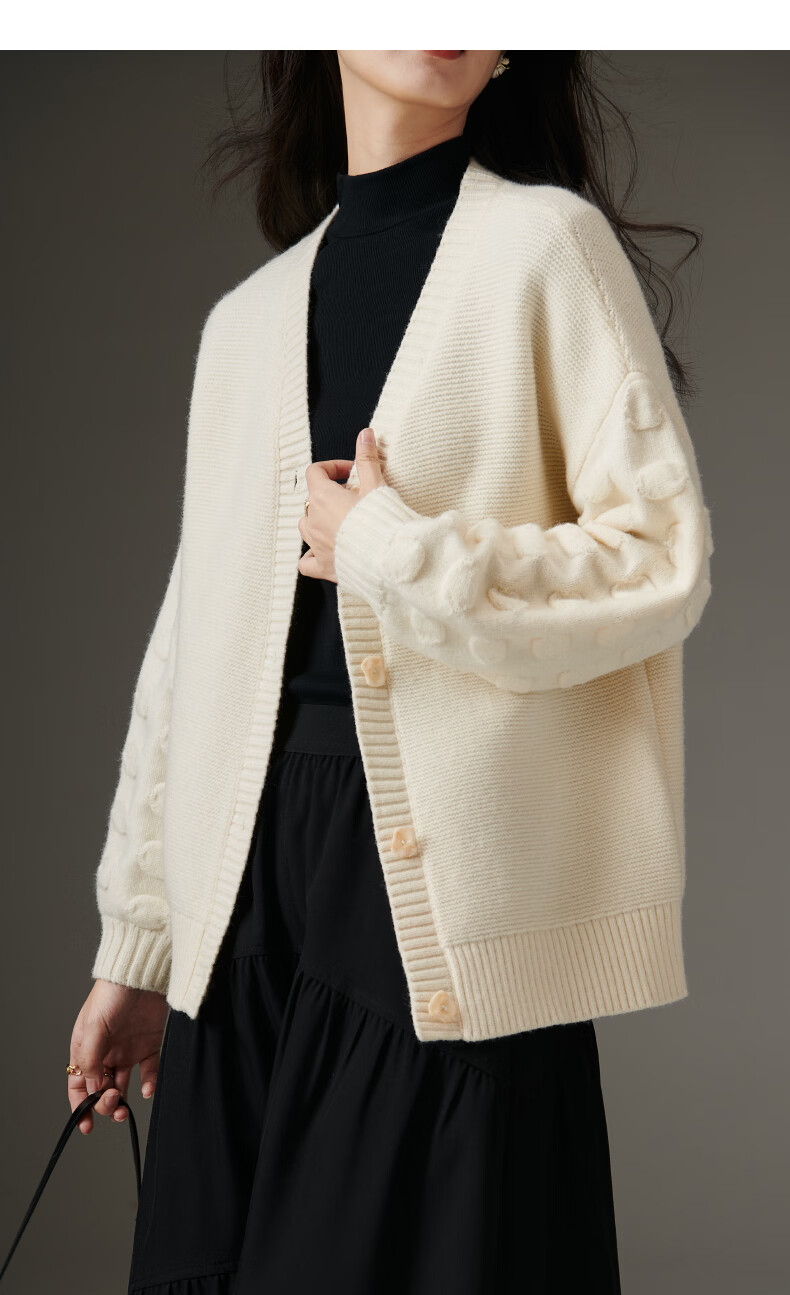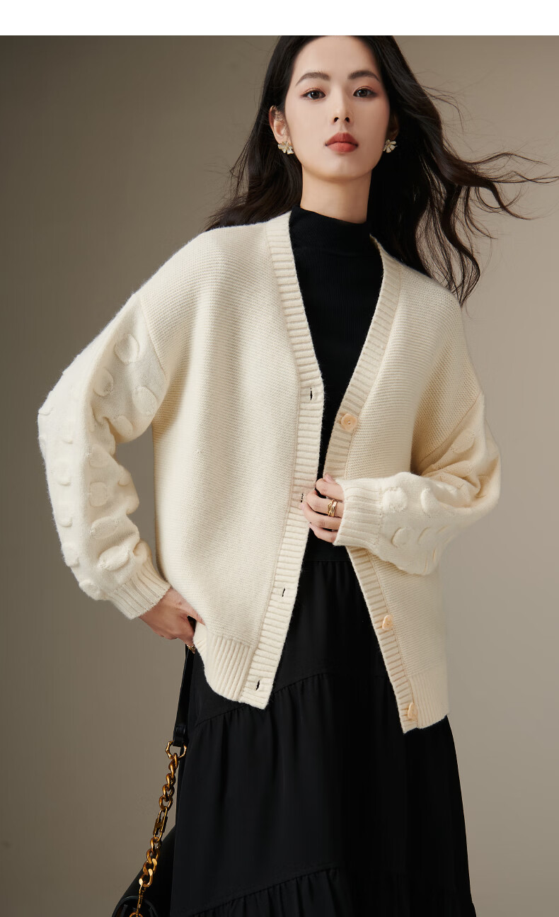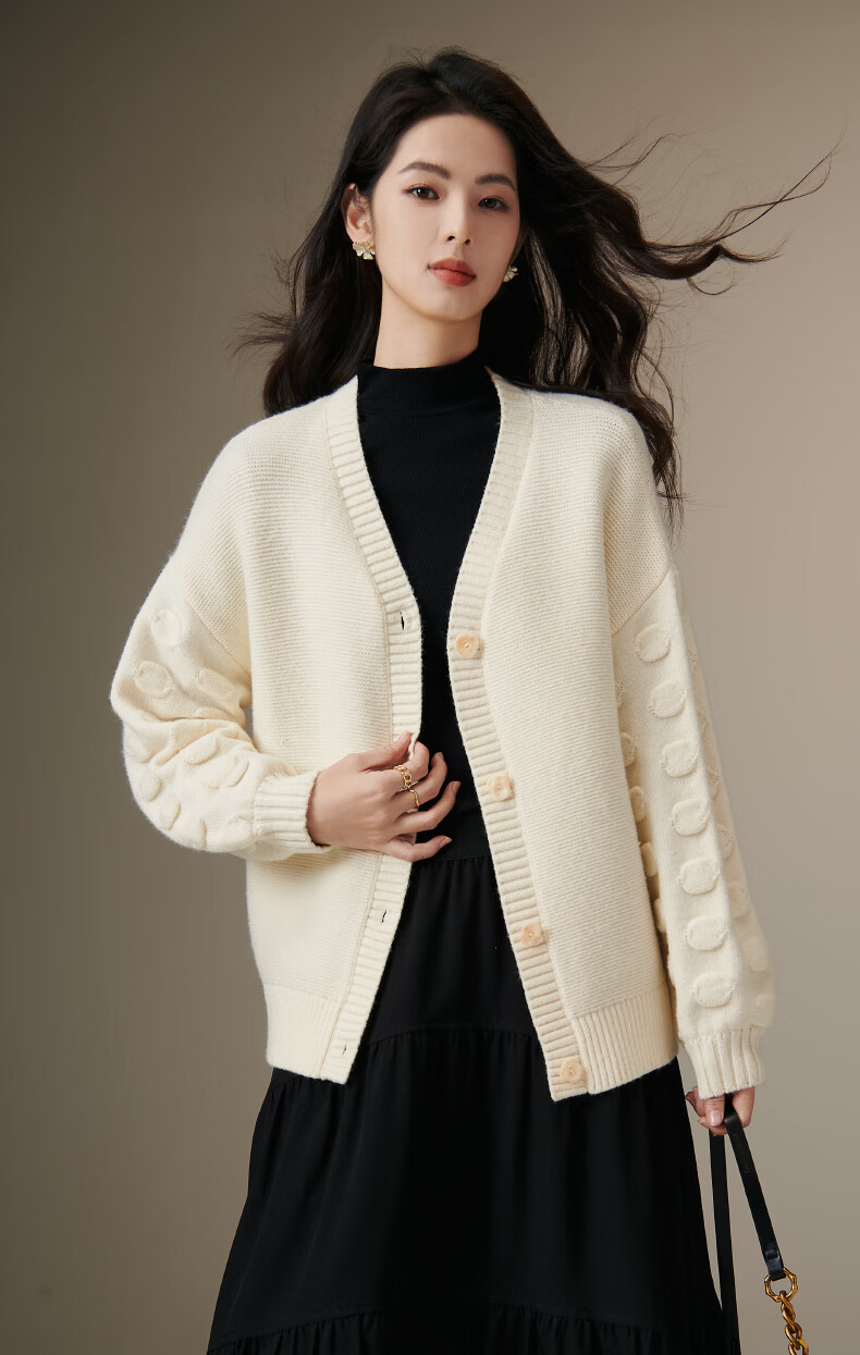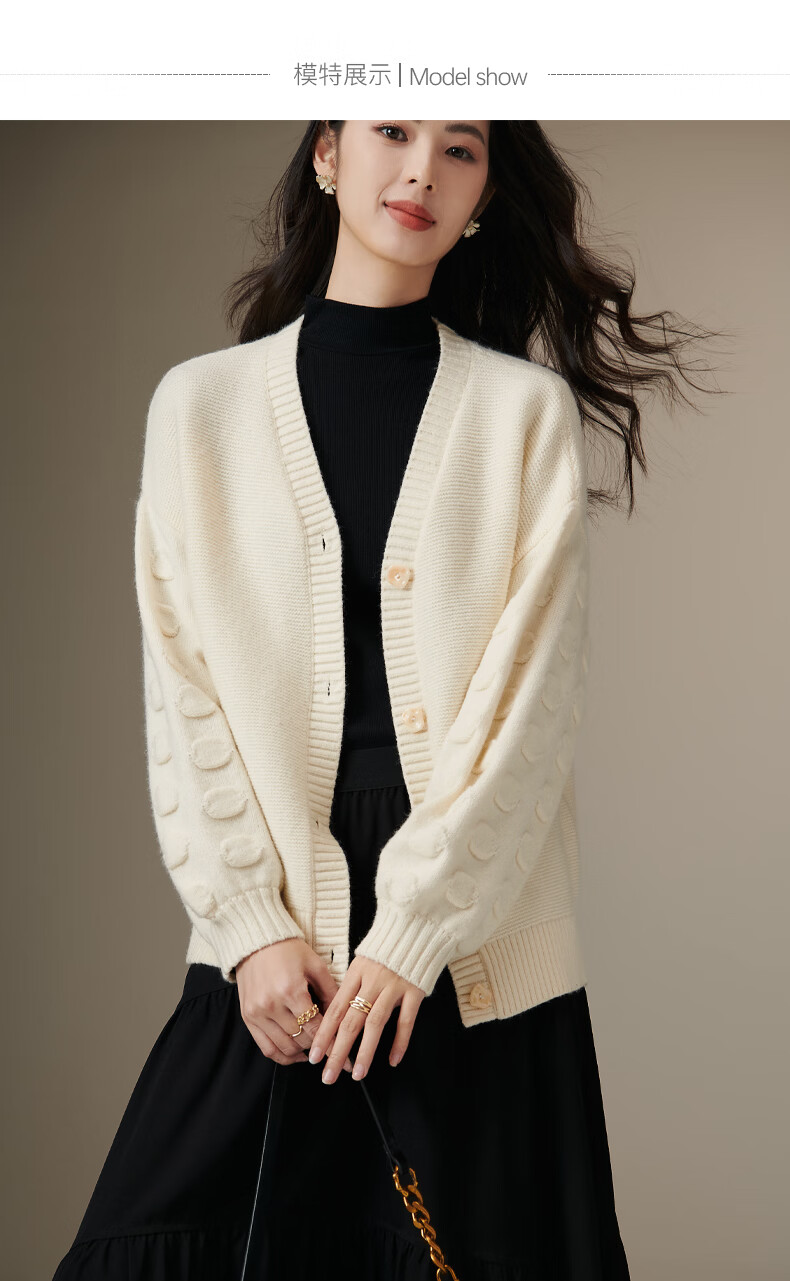 晚白【新品】2026年春款优雅温柔风V领开衫毛衣柔软舒适针织外套女 米杏色 S