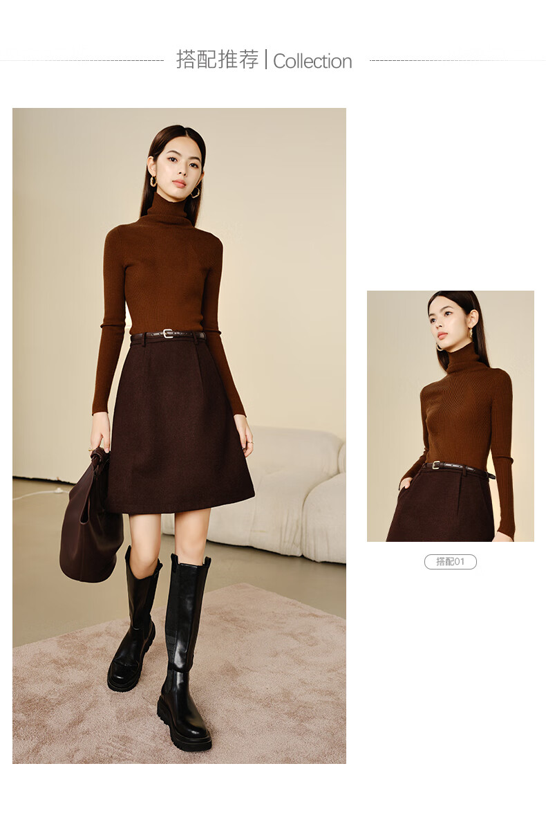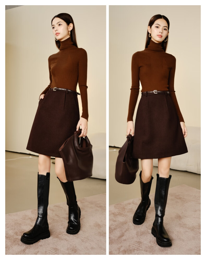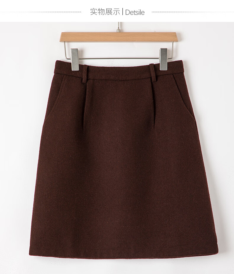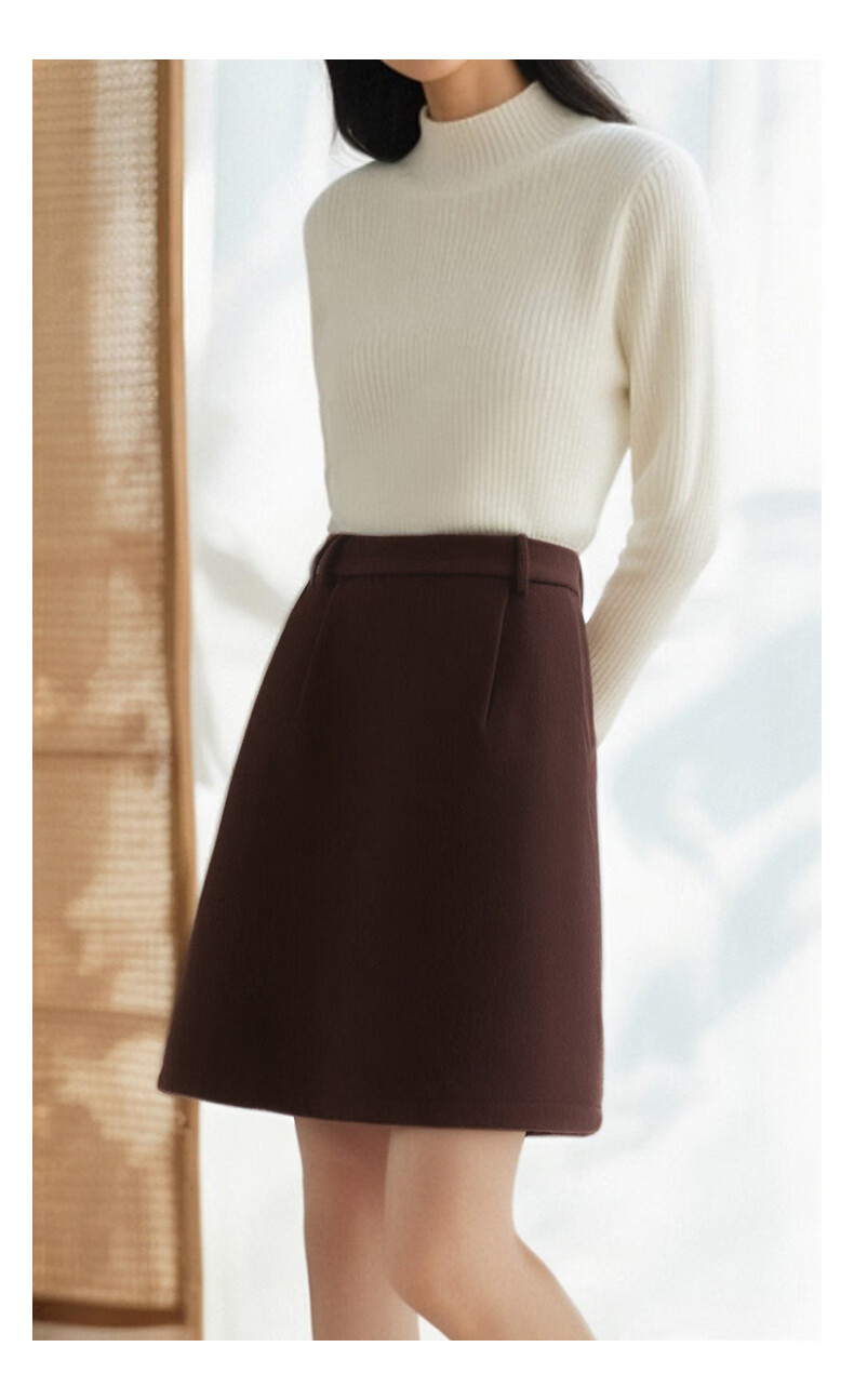 晚白【新品】冬款气质小个子毛呢短裙百搭羊毛半裙【不含腰带】 咖色 L