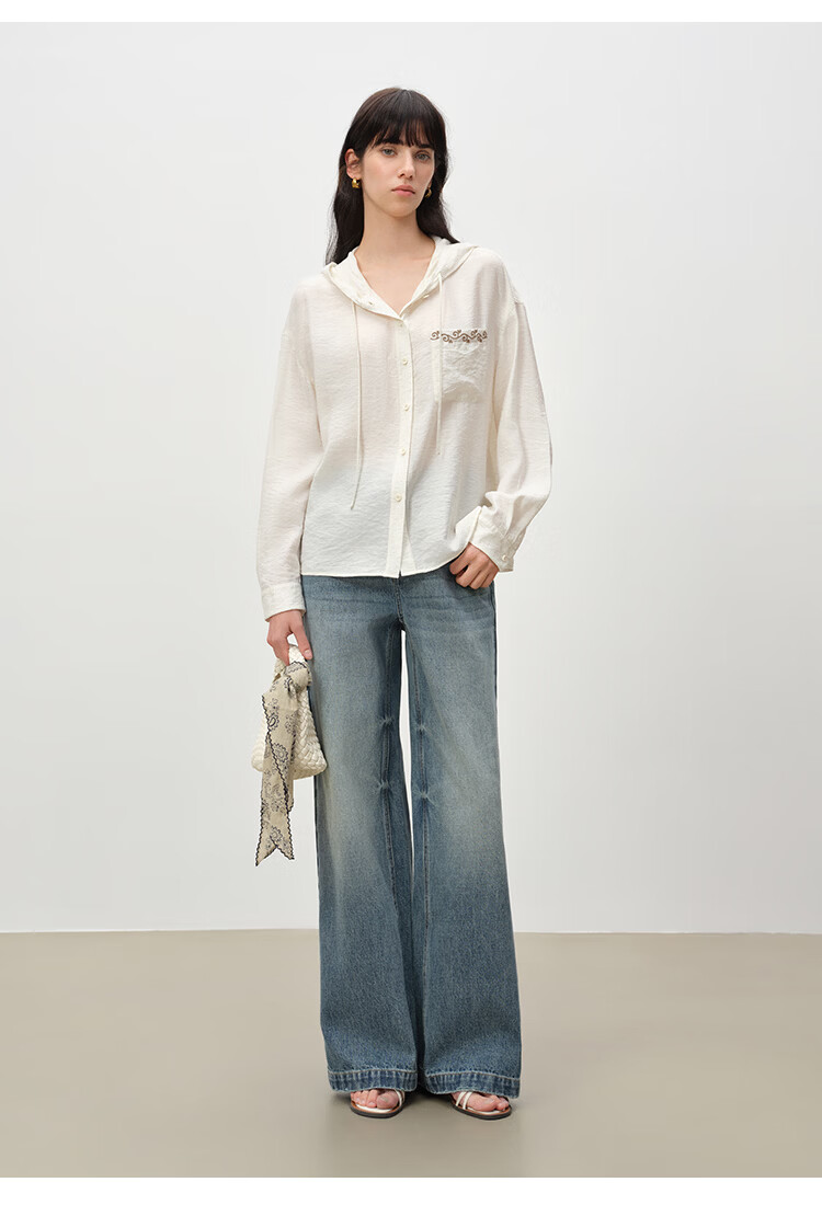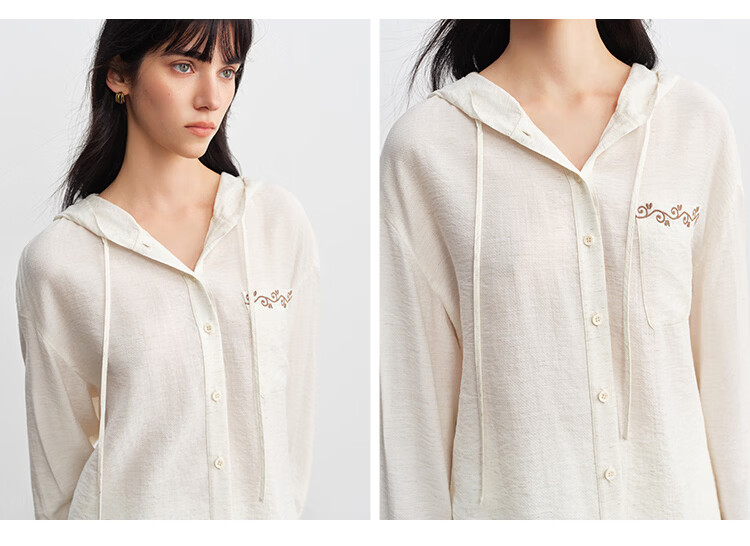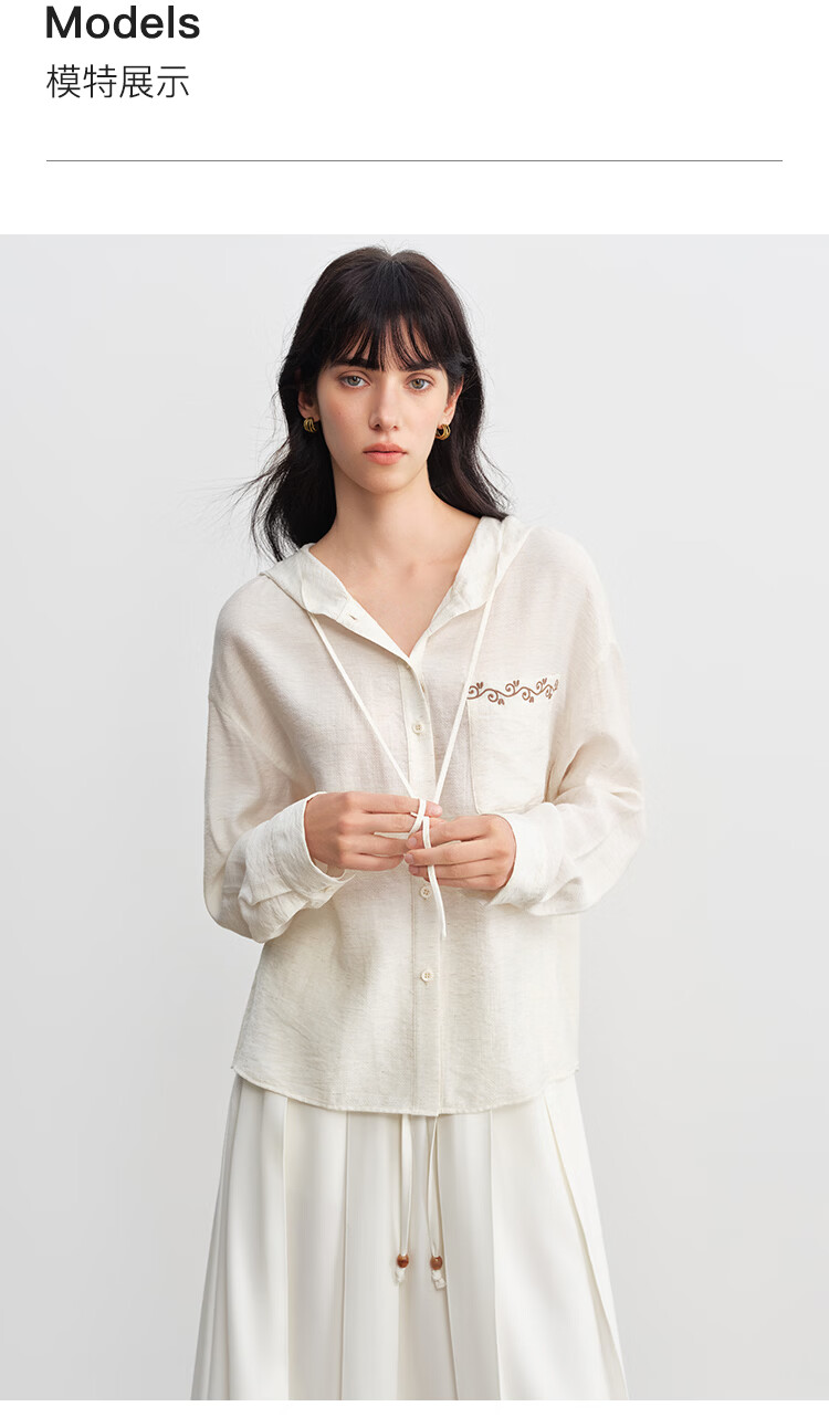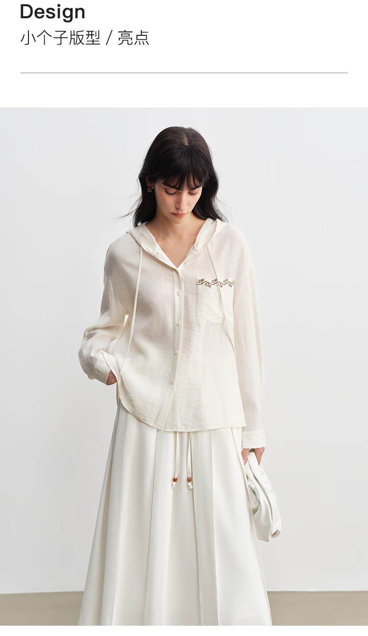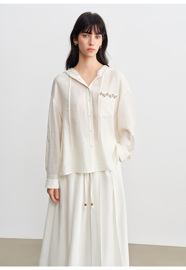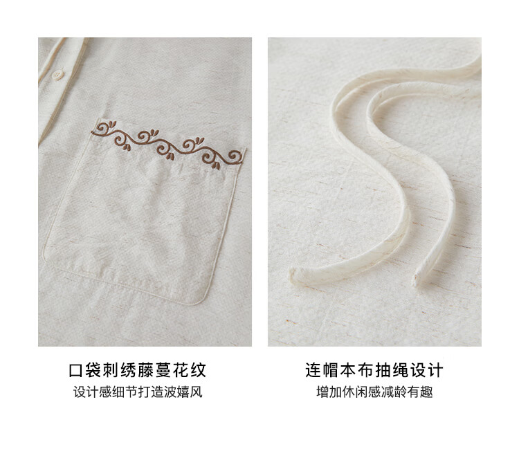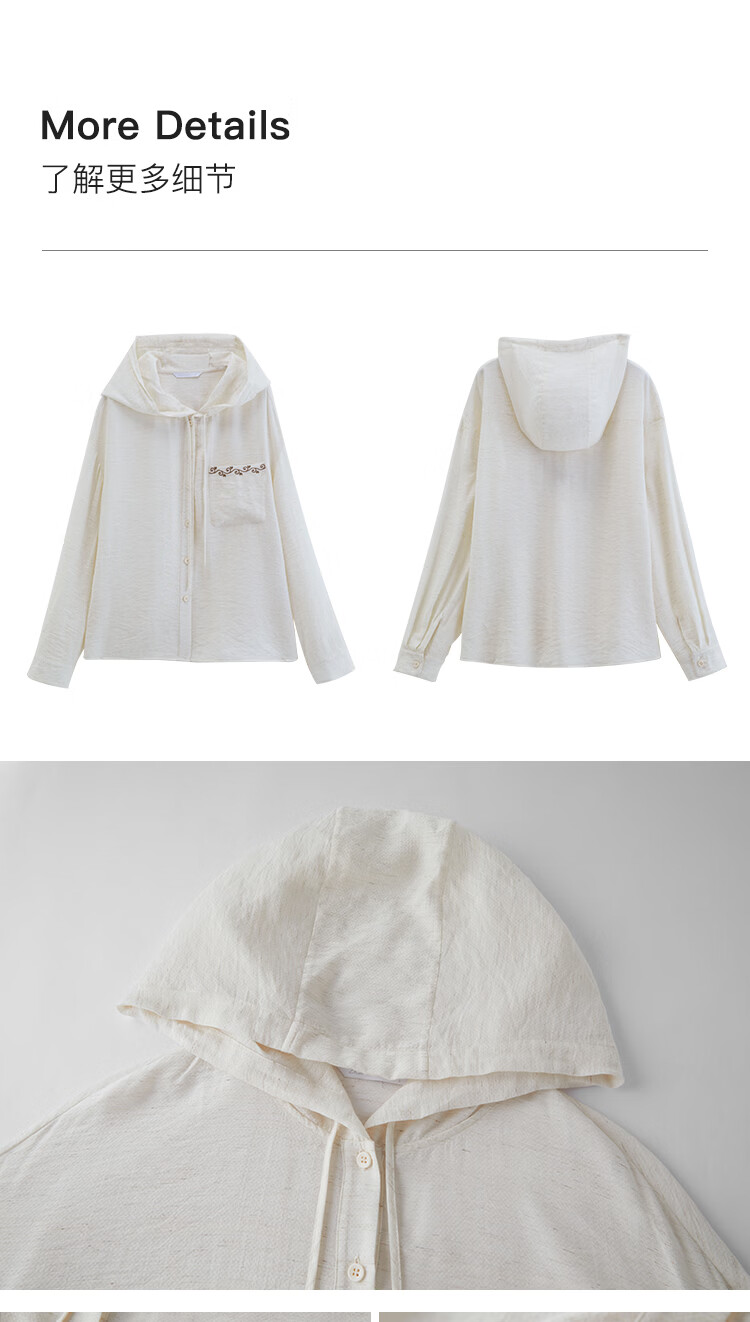 自巧小个子波嬉风藤蔓花纹刺绣连帽衬衫抽绳上衣2026年春季新品女 巧米色 M (尺码:4)